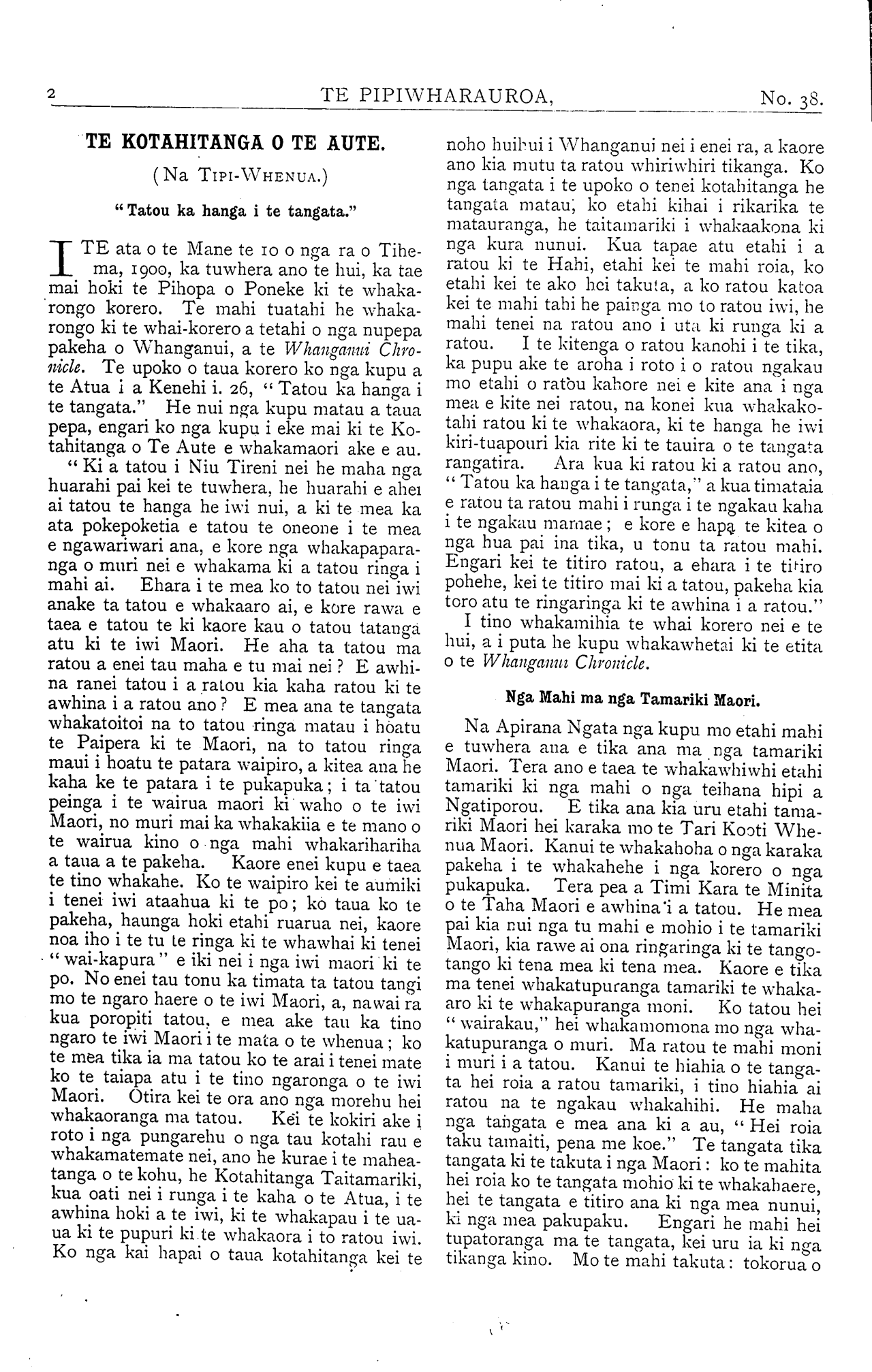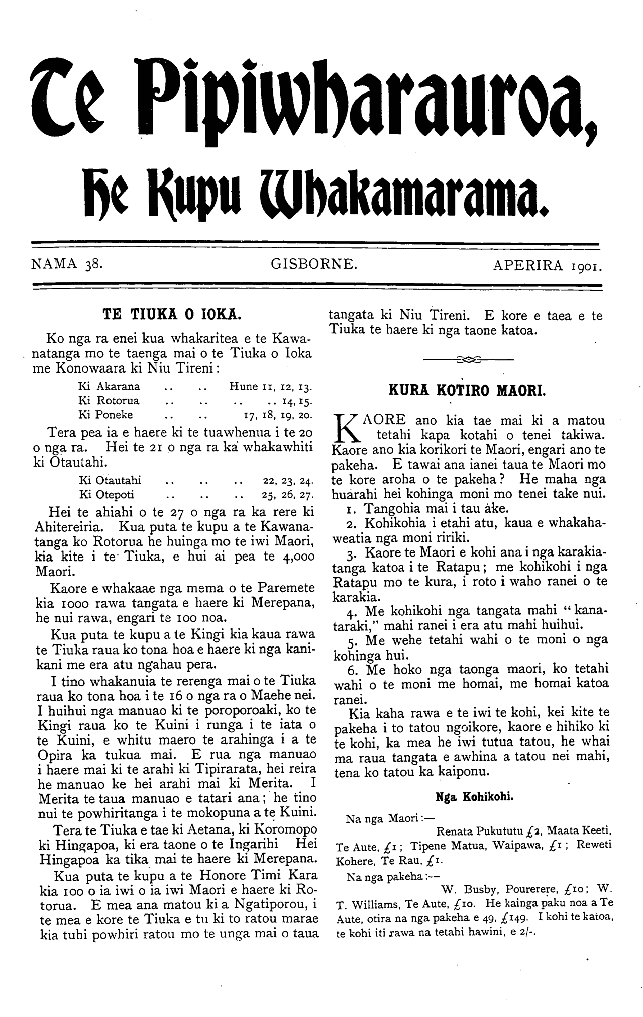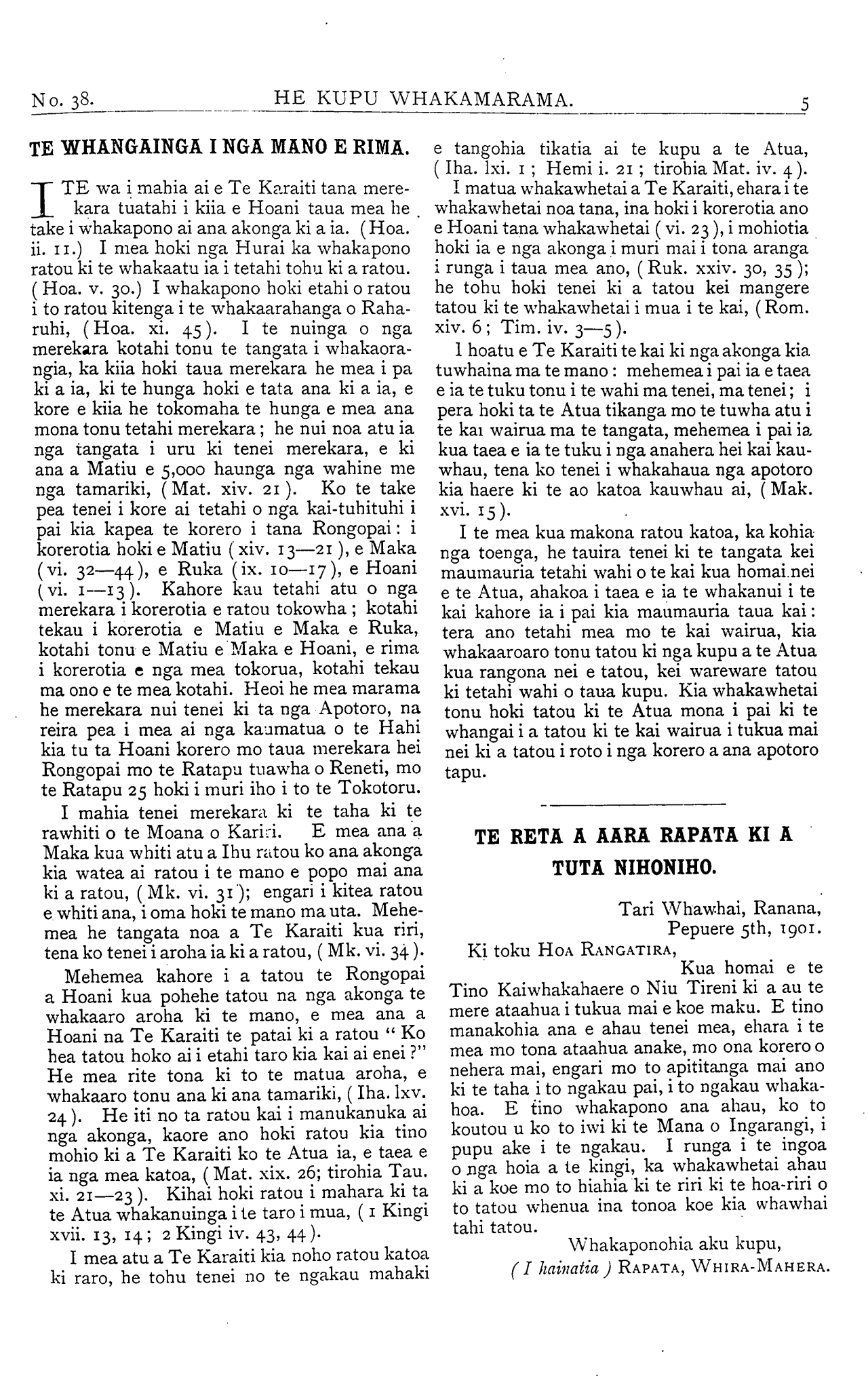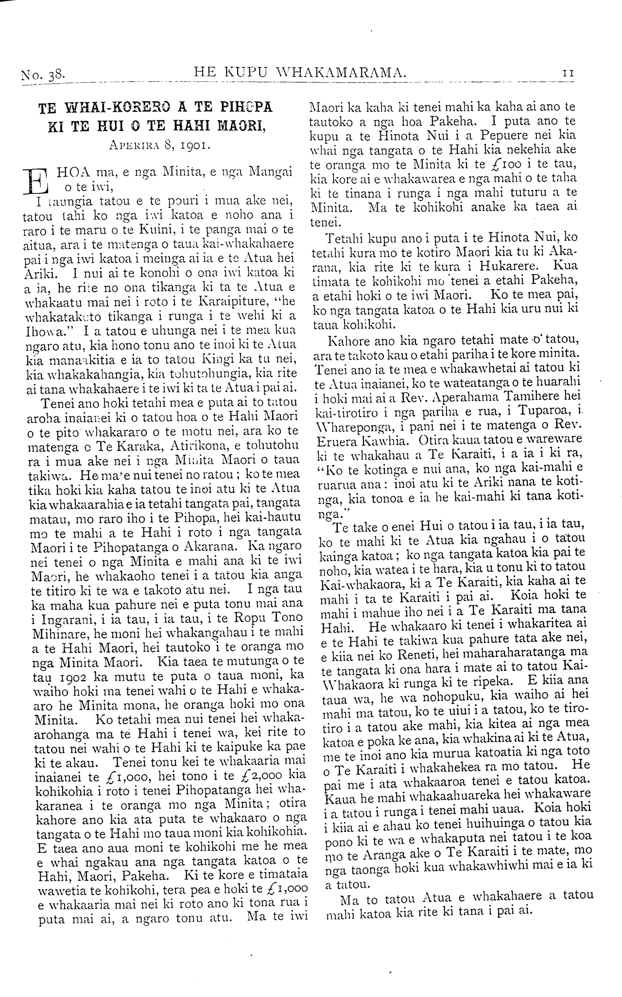 He Kupu Whakamarama 1898: Number 38. 01 April 1901 |