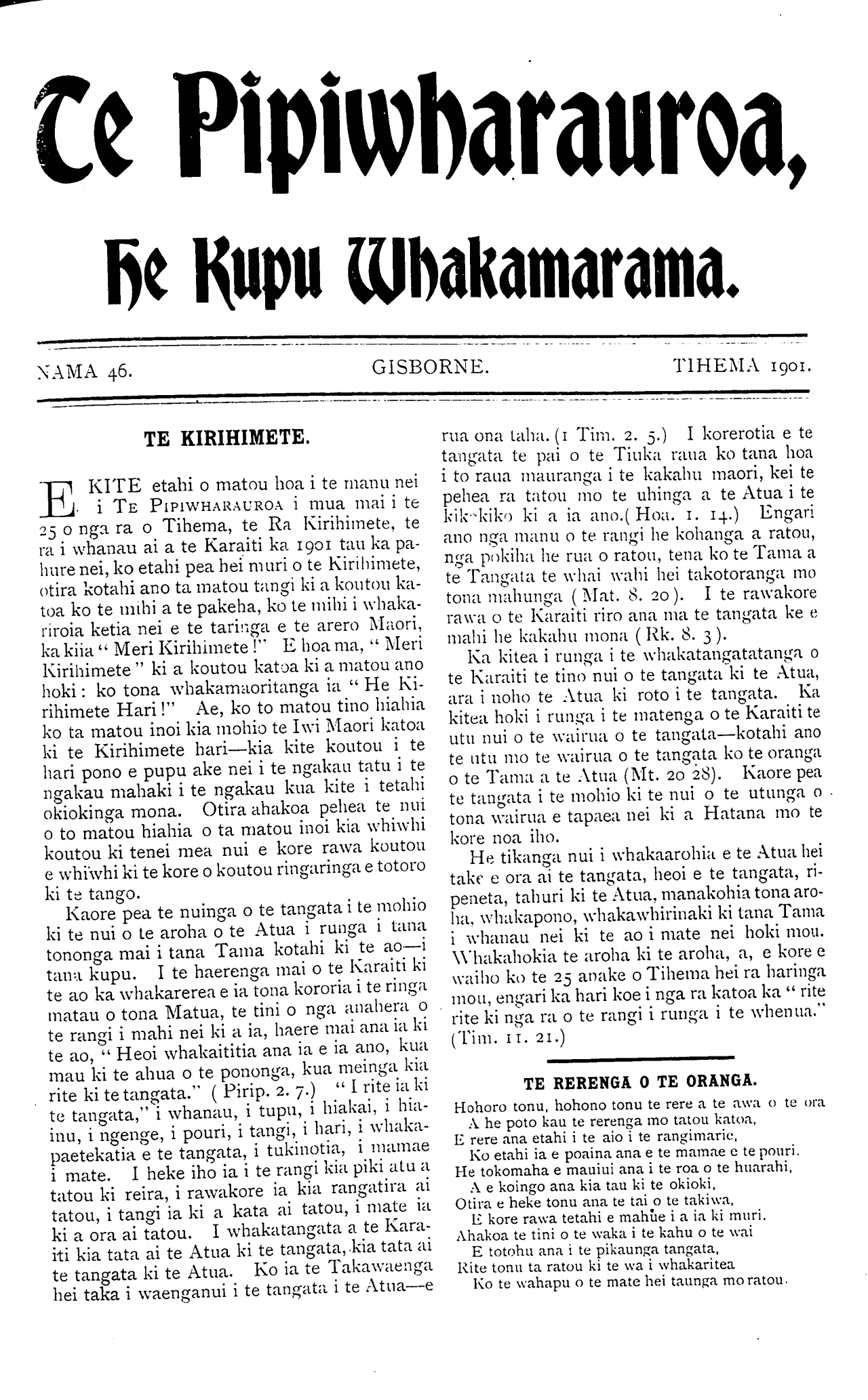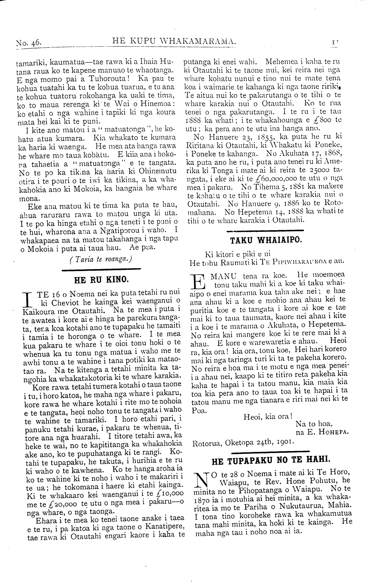 He Kupu Whakamarama 1898: Number 46. 01 December 1901 |