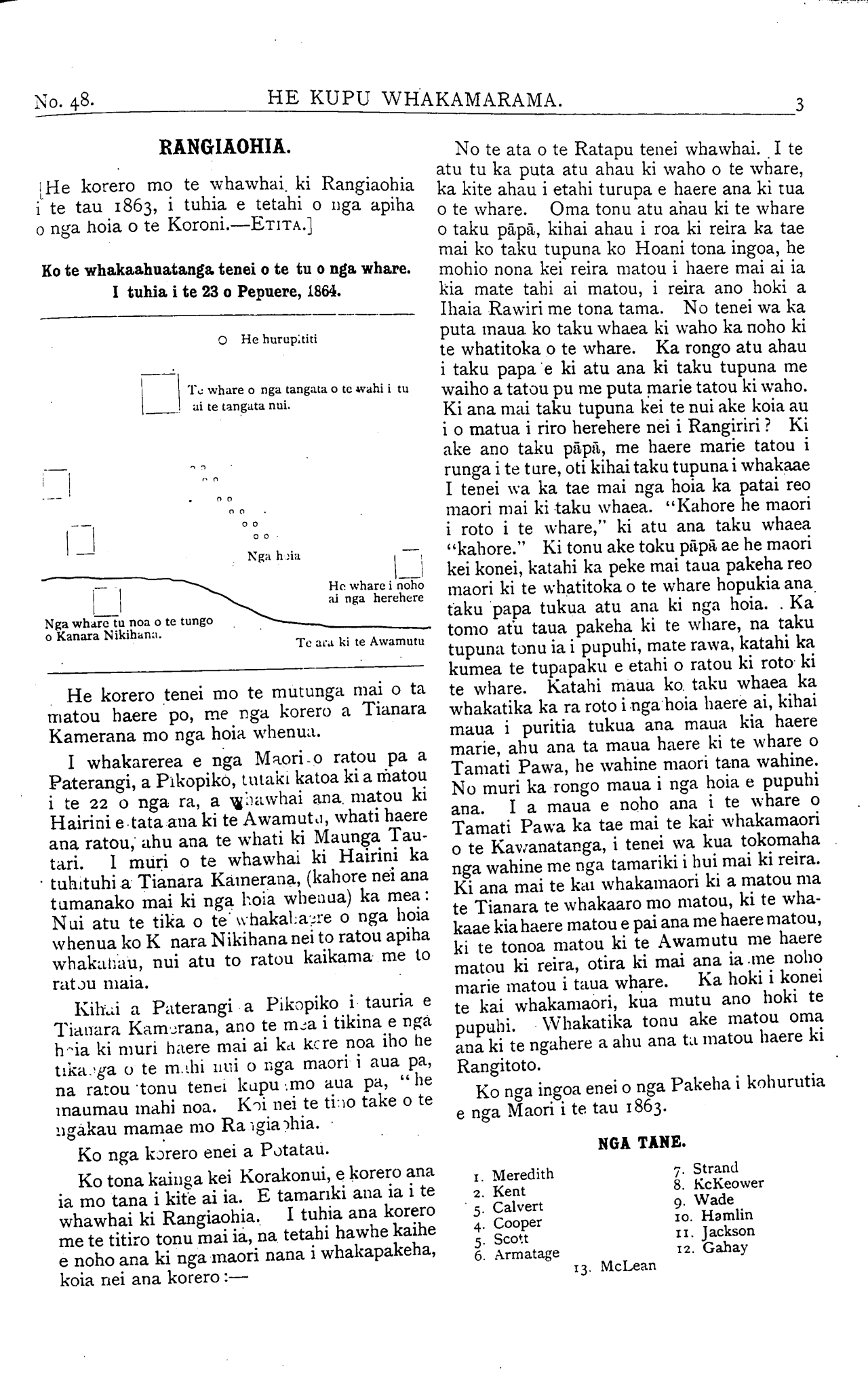 Ohako. Te Arai, i te 10 o nga ra o Maehe nei:—