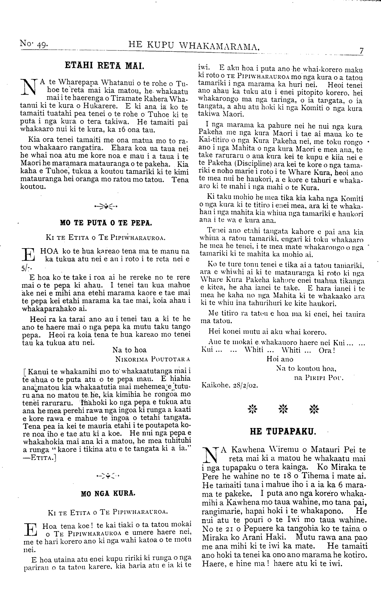 He Kupu Whakamarama 1898: Number 49. 01 March 1902 |
