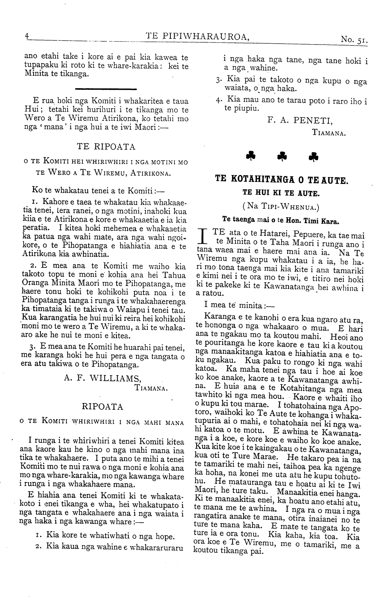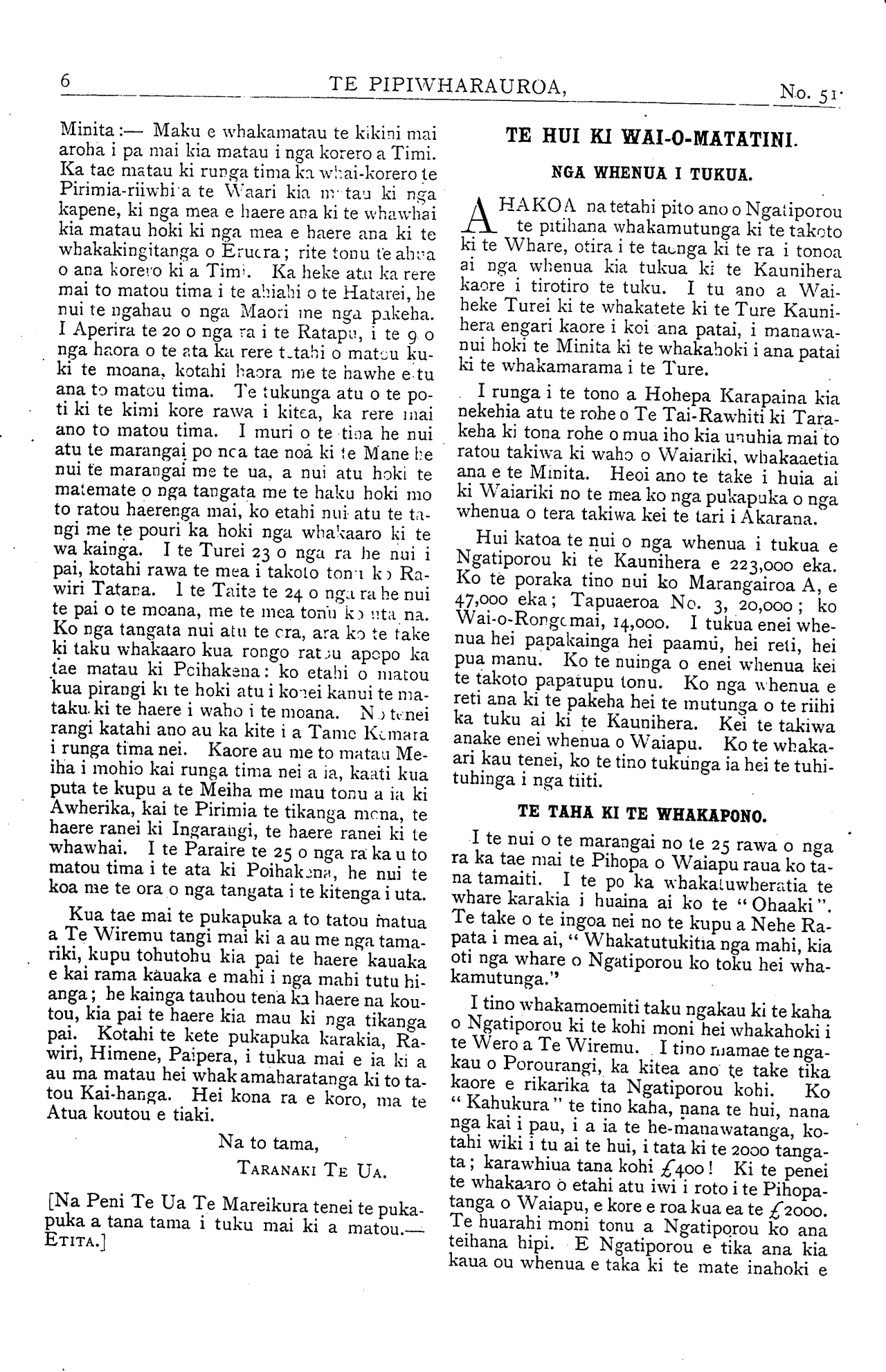 wiri, Kurumoa, Peta Pokai. 2/6 Tuhaka Haratiera, Rev. Nikora