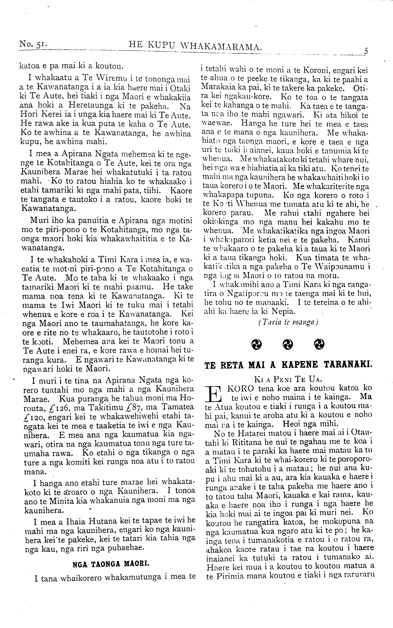 2. Ko te oranga mo te pepa e rima hereni (5/-) i te