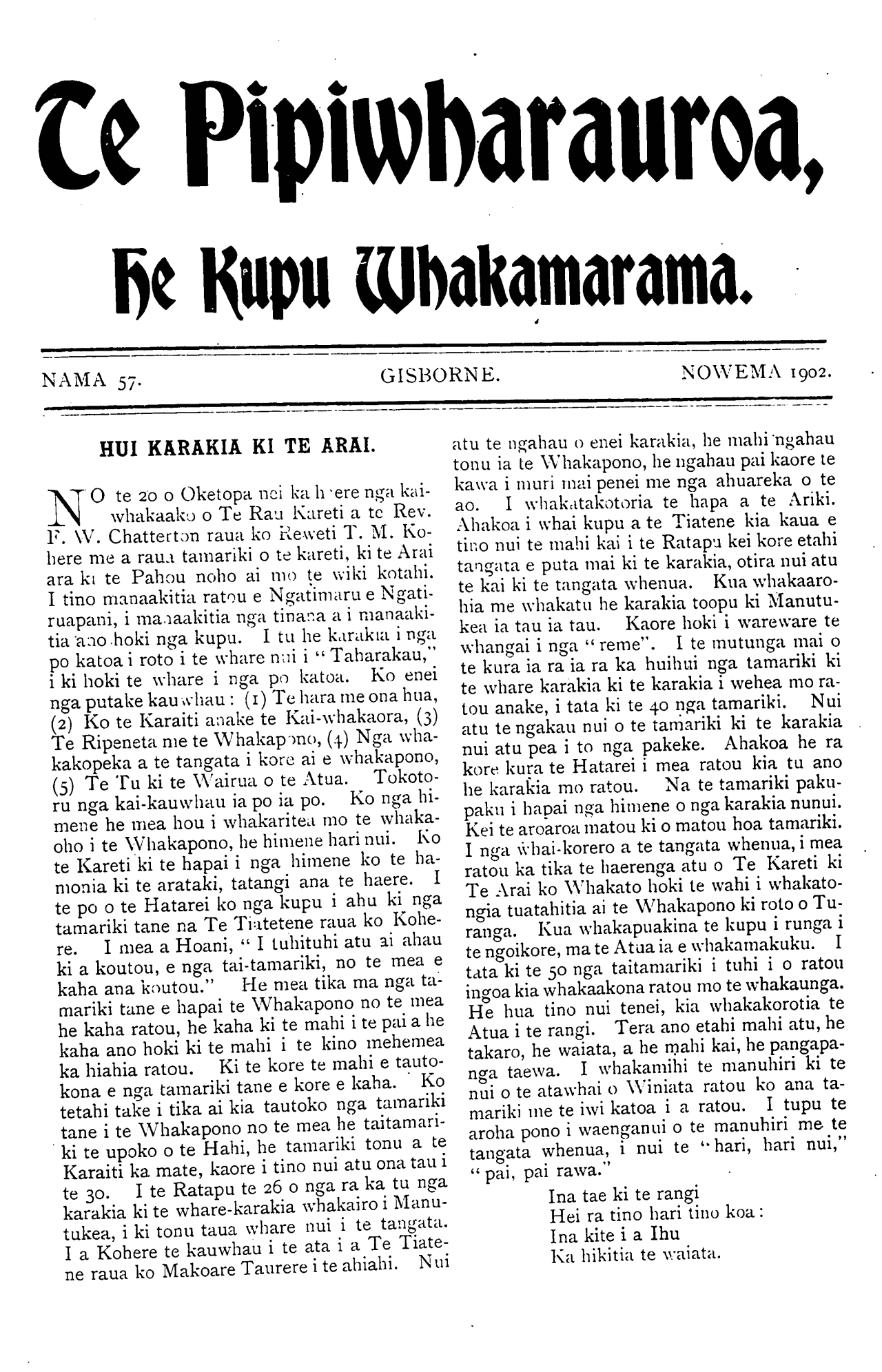 He Kupu Whakamarama 1898: Number 57. 01 November 1902 |
