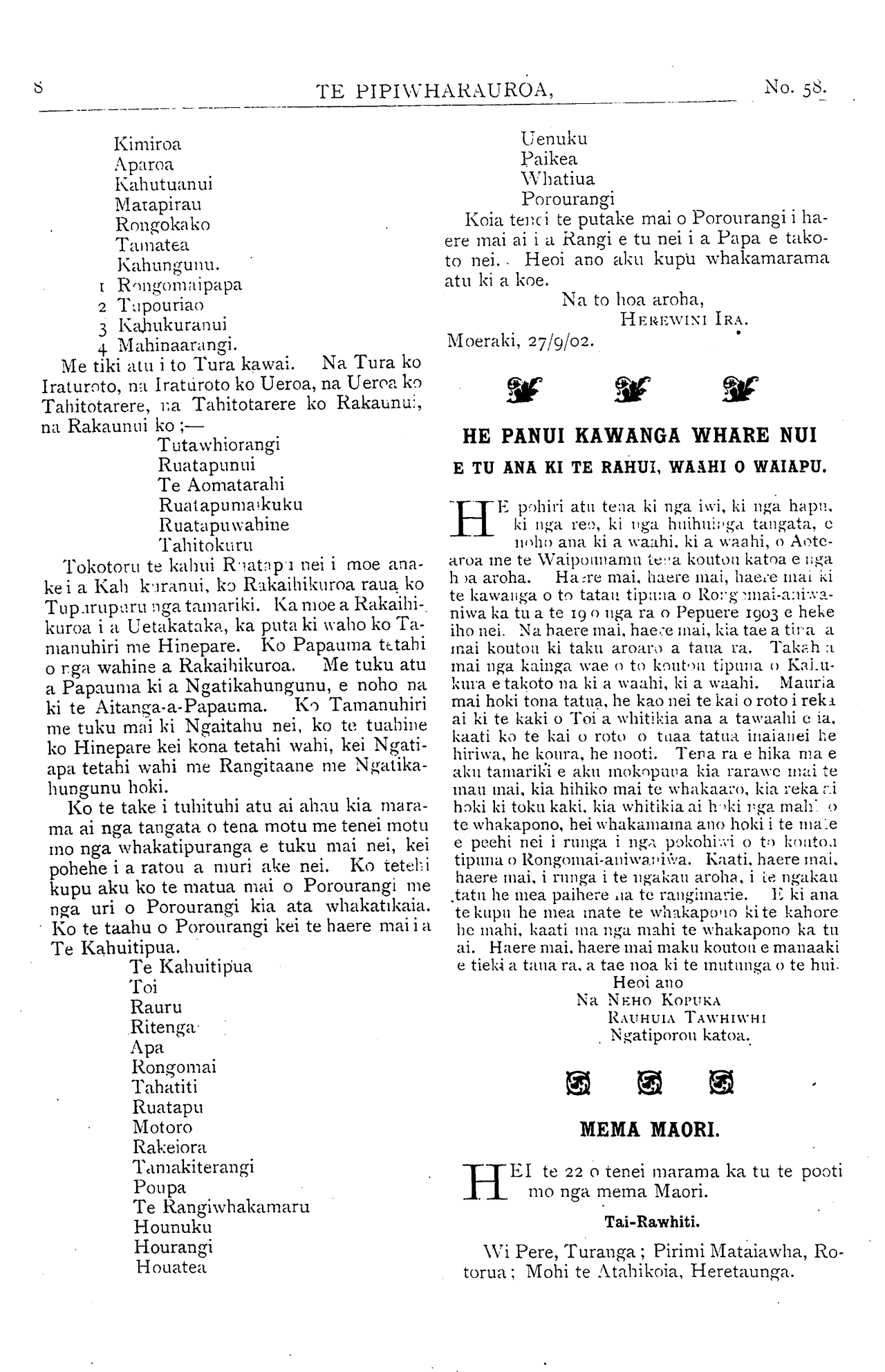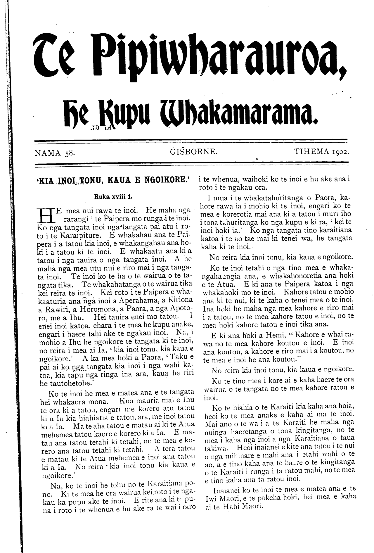 He Kupu Whakamarama 1898: Number 58. 01 December 1902 |
