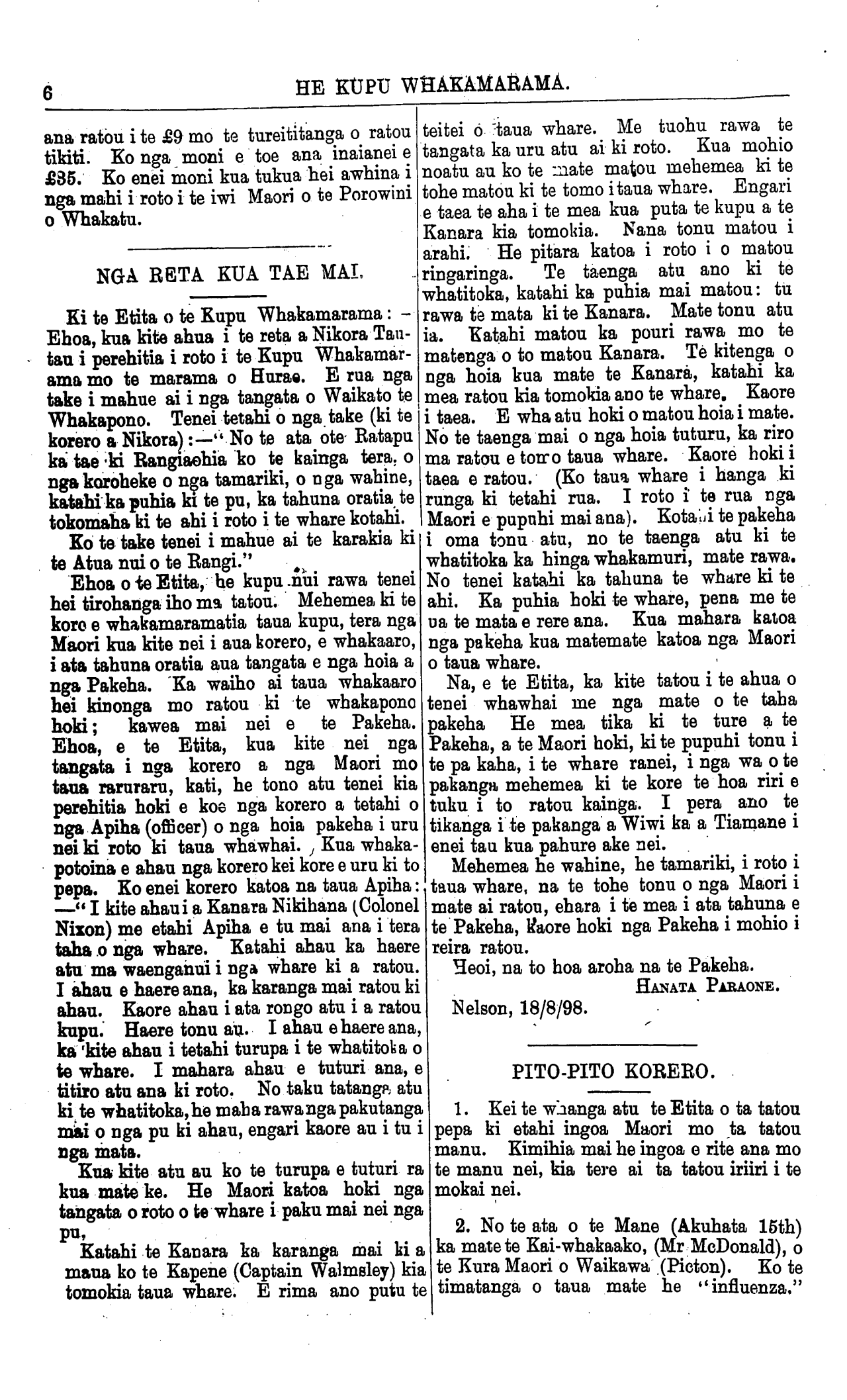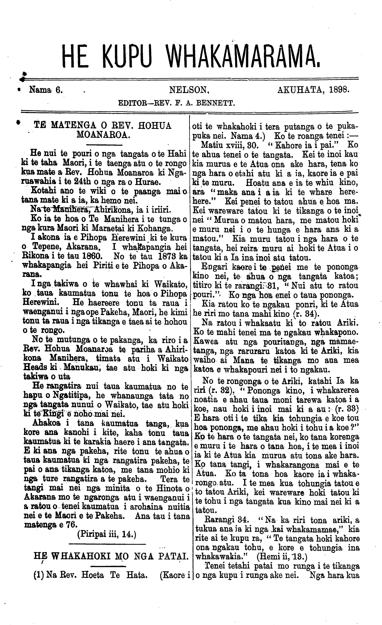 He Kupu Whakamarama 1898: Number 6. 01 August 1898 |