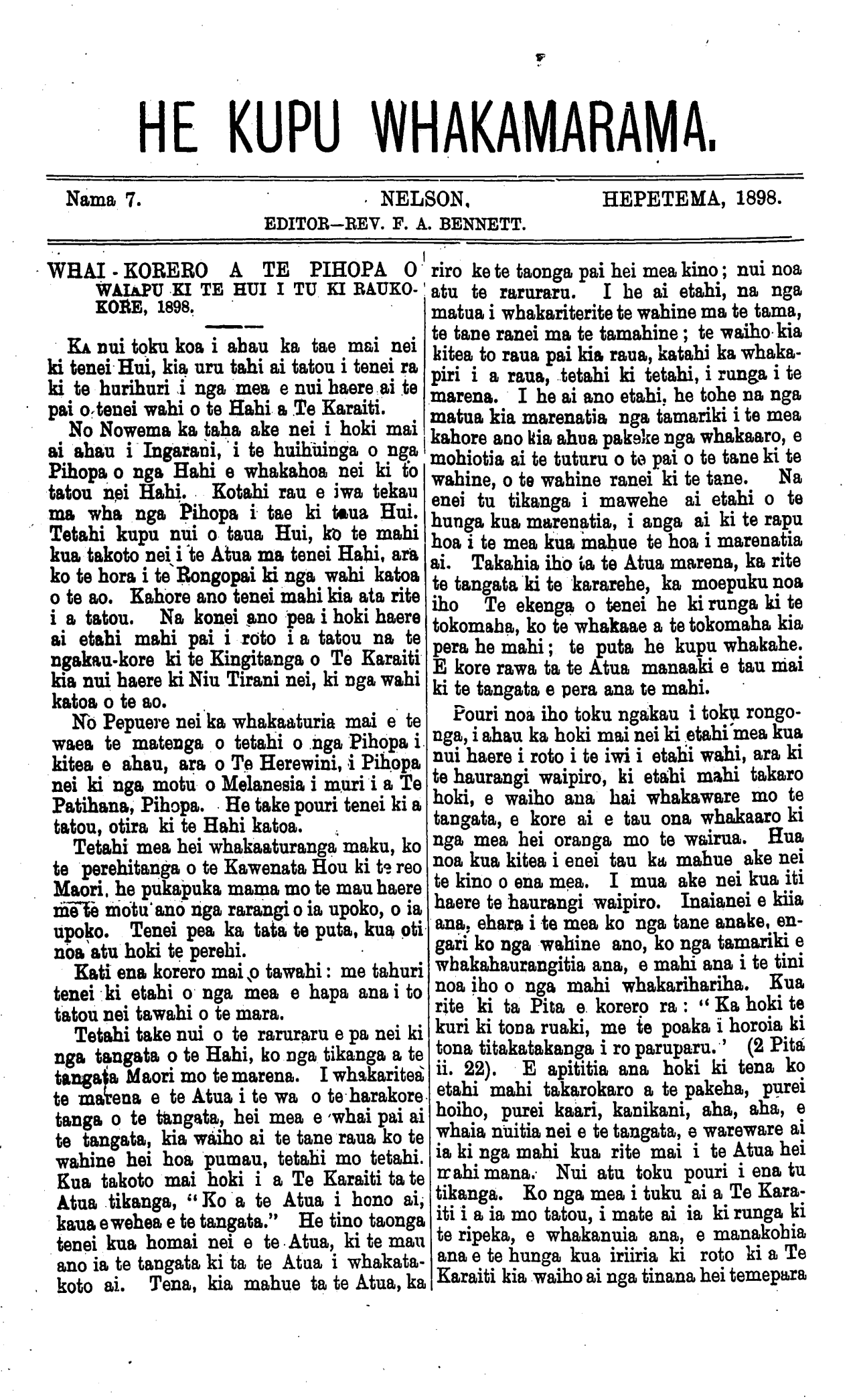 He Kupu Whakamarama 1898: Number 7. 01 September 1898 |