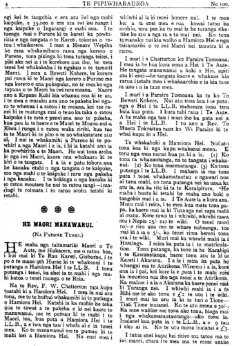 4 TE PIPIWHARAUROA No 100. ngi kei te tangohia e era atu iwi nga mahi kaipuke, e 35,000 o era atu iwi kei runga i nga kaipuke o Ingarangi e mahi ana. I te taenga mai o Purene ki te kareti ka powhi ritia a e nga tangata o te Kareti tokorua o ra tou i whaikorero. I mea a Henare Wepiha he mea whakamiharo rawa nga korero o Purene, tona pikinga ki tona turanga teitei, i piki ake nei ia i te korekore noa iho, he mea tenei hei whakakaha i te ngakau o te tamaiti Maori. I mea a Reweti Kohere, he korero pai rawa ki te Maori nga korero o Purene me nga korero o ana pukapuka, no te mea ko nga tupuna o te Maori he iwi rere moana. Kaore ano a Kapene Kuki kia whanau noa ki te ao, i te mea e mataku ana ano te pakeha kei nga- ro te whenua i a ratou i te moana, kei tae ra- nei ki te mutunga mai o te ao ka taka o ratou kaipuke i te mea e penei ana ano te pakeha, kua pau ia te haere e te Maori te Moana-nui-a Kiwa i runga i o ratou waka ririki, kua tae ia te Maori ki te pito o te ao whakatatare atu ai. I nui te whakamihi a Purene ki te po- whiri a nga Maori i a ia, i ki ia katahi ano ia ka powhiritia e te Maori. He nui tona aroha ki nga iwi Maori, kaore ona whakaaro ki te kiri o te tangata. I a ia e patu tohora ana he kanaka etahi o nga tangata o te kaipuke, mo nga mahi o te kaipuke i raru nga pakeha i nga kanaka. I te hokinga o nga kanaka ki to ratou moutere he nui to ratou tangi—i ma- ringo te roimata i to ratou aroha tetahi ki tetahi. HE MAORI MANAWANUI. (NA PARONE TUREI.) HE maha nga taitamariki Maori o Te Aute, me Hukarere, me o ratou hoa, i hui mai ki Te Rau Kareti Gisborne, i te po o te mane 9th Hurae ki te whakanui i te putanga o Hamiora Hei i te LLB. I tona putanga i tenei, ka ahei ia te mahi i nga ma- hi katoa o tenei tuunga o te Roia. Na te Rev. F. W Chatterton nga kupu tuatahi ki a Hamiora Hei. I mea ia nui atu tona, me to te huihui whakamihi ki te putanga o Hamiora Hei. Katahi ia ka mohio he teka noa te tawai a te pakeha e ki nei kaore te manawanui, me te pumau ki te mahi i te Maori ina, kua puta a Hamiora Hei i te LLB, a e iwa nga tau i whaia ai e ia tenei mea. Ko te manawanui me te pumau ki te "mahi kei a Hamiora Hei. Na enei mea whiwhi ai ia tenei honore nui. I te mea kei a ia enei mea e rua kowai tatou ka mohio, tera pea, ka tu mai ia he turanga tike- tike ke atu a nga ra e tu mai nei. Ko tona tumanako nui kia waiho a Hamiora Hei e nga taitamariki o te iwi Maori hei tauwira ki a ratou. I muri i a Chatteton ko Paraire Tomoana. I mea ia he hoa kura nona a Hei i Te Aute. He tangata manawanui u hoki a Hei, apiti atu ki enei—he tangata kaore e whakaae kia rarua i tetahi mea i whakaarohia e ia kia taea ra ano i a ia taua mea. I muri i a Paraire Tomoana ka tu ko Te Reweti Kohere. Nui atu tona koa i te puta- nga o Hei i te LLB. mehemea tonu tera koia kua puta. I kura tahi raua i Te Aute. A he maha nga tau i muri iho ka puta nei a a Hei i te LLB. I tu ano a Rev. Te Maori Tokoaitua raua ko Wi Paraire ki te whai kupu ki a Hei. Te whakahoki a Hamiora Hei. Nui atu tona koa ki nga kupu whakanui mona. E toru nga mea nunui kua pa ki a ia. () Ko tona ra whanautanga, na te tangata i whaka- nui. (2) Ko tona marenatanga. (3) Ko tona putanga i te LLB. I mahara ia ma tona puta i tenei whakamatautau e ngawari noa ai tana mahi, no tona putanga nei kauaua ke atu ia, ara ka rite ki ta te Karaipiture, "He maha i hoatu ki tetahi he maha ano hoki e tangohia mai i a ia. I Te Aute ia e kura ana. Mutu mai i reira, i te mea kua mate tona pa- pa, ka haere mai ia ki Turanga nei rapa mahi ai mana. Kore rawa ia i whiwhi, whiwhi rawa atu i Nepia 15/- mo te wiki. O tenei moni Io/- e riro ana mo te whare nohoanga, toe mai ki a ia e 5/-' ko tenei rima hereni tona ora. i te wiki. Muri mai ka whiwhi mahi ia i Hastings. I reira ka puta ia i te matricula- tion. Tona putanga, ka tono ia he Karahipi i te Kawanatanga, haere tonu atu ia ki te, Kareti i Akarana. I a ia i reira ka puta he whangai ma te Atirikona. Wiremu i a ia, kore ana ia i pai, koi kore ia e puta i te mahi roia ka moumou noa iho nga moni a te Atirikona. Ka mahue i a ia a Akarana ka haere penei mai ki Turanga nei. I whiwhi mahi ia i a te Rihi me te ako tonu e £2 te utu i te wiki. I muri mai ka uru ia ki te tari o Tione— Tiati Tione inaianei. Ko te utu mona e 3o/-. Ka moe wahine me tona ako. tonu u, hinga mai i nga whakamatautauranga—ako tonu ia. Inaianei kua puta ia i te LLB ara tau i ako ai ia. Ko te utu mona inaianei e £3. I tuhia enei kupu hei titiro ma tatou ma te iwi maori, ehara i te mea ma te moni anake
