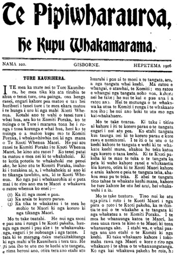 Ki TE ETITA O TE PIPIWHARAUROA.