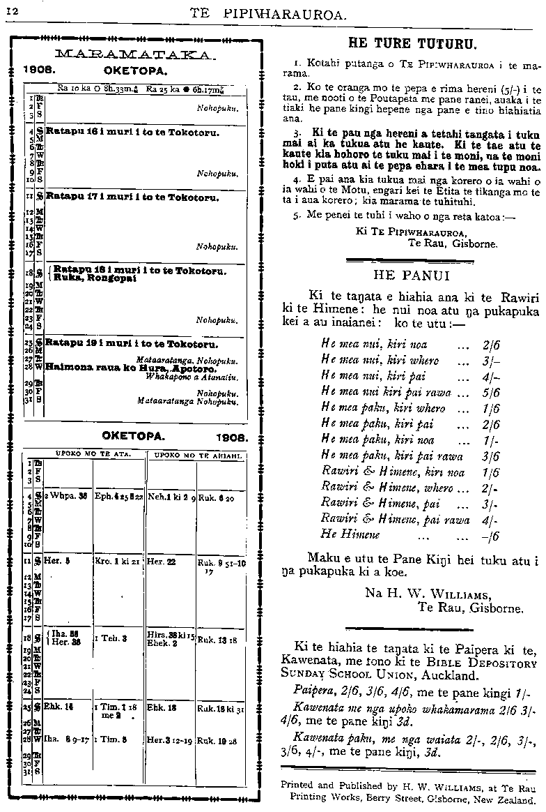 ana i " Te Pipiwharauroa," ki te tae atu te
