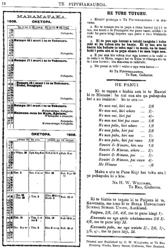 5/-; Waaka te Panui, 3/3 ; Mekameka, 5/-; Anini