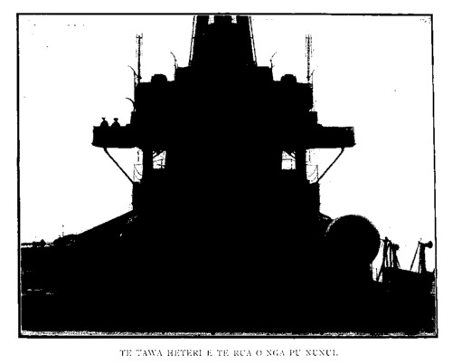 No.178. HE KUPU WHAKAMARAMA. Tireni, ki roto o Papati Pei (Poverty Bay) he kainga rongo nui mo ona korero tuku iho. Ko te pouri ia o toku ngakau nui atu i te korenga o nga tangata i haere mai i te Ratapu i eke mai ki runga i te tima i te kino o te moana. Otira e hari ana ano toku ngakau inaianei i te waimarietanga o te rangi ki te pai i eke mai ai ano koutou ki runga i to koutou tima. He mea whakamanamana rawa ki roto ki toku ngakau i au e tu atu nei i te nohanga ko ahau hei tangata-hautu i runga i to koutou waka, te taonga nui i tapaea nei e koutou i runga i te ngakau mamae ki te Emepaea, he taonga e kaha ai taua Emepaea ki te pupuri i ona korero me tona mana mai rano a mohoao noa nei. He waimarie tenei i pa mai ki toku tinana. E tupono mai te wa e karangatia a; matou ki te whakaatu ki te ao i te ahua o to matou karangatanga, e kore e kore te hoki mai o nga mahara ki te hunga na ratou te aroha me te whakamanawanui ano Ki te whakaritea i nga whakaunga katoa a te Emepaea, te Emepaea e whakamanamana nei matou i tenei ra he wahi matou nona. E tino whakamihi aua au ki a koutou ki oku hoa-Maori, ki nga Iwi o te Tairawhiti mo ta koutou whakamanuhiritanga i au mo a kou- tou manaaki e noho nei i roto i ta koutou Powhiri. He mea tino whakamiharo ki roto i toku ngakau to koutou piri pono ki to tatou Kingi nui ki a Hori Tuawhitu. Ka tae i au a koutou manaaki katoa a nga Iwi Maori o Aotearoa me Te Waipounamu ki te aroaro o te Kingi. Kei whea te taonga nui i te Tiriti o Waitangi e paihere nei i nga Iwi o enei Moutere ki te Whenua-Matua. Kia ora kou- tou katoa!" (He mea korero Maori tonu enei kupu). Ka mutu nga kupu whakahoki a Kapene Halsey ka whakatika te Tai-rawhiti ki te Haka ki nga tangata o te manuao. Ka hakangia a te " Piki mokete i raru ai a Niu Tireni." Ka rawe! ka haka me te pukana tonu iho nga kanohi ki te reke o te New Zealand te putake i taumaha ai a Niu Tireni i te piki " mokete. Mau ana te wehi, te rangona te haruru o te Tai i te karawhiu a te haka. AROHA TUARUA O TE TAI-RAWHITI. Ka mutu te haka ka pakaru te mapu. Ka • arahina atu a Wi Pere ratou ko aua mokopuna ki te ruma o te Kapene kei reira e tatari ana mai te mokopuna tuarua a Kuini Wikitoria, a Piriniha Hori o Patenepaka (Prince George of Battenburg (iramutu o Kingi Hori Tua- whitu. I reira ka whakatakotoria he aroha ke no te Tai-rawhiti ki te Piriniha he kahu Maori ano, me te whakamarama atu ano a Wi ki te Piriniha ehara i te mea he mea nui rawa aua mea engari hei whakaatu kau ki a ia i te piri pono o te Tai-rawhiti kia Kingi Hori, me te tohutohu atu ano a Wi ki te Piriniha kia pai, kia whai i muri i nga tapuae o tona tipuna, o Kuini Wikitoria; a kaua koutou hei maharahara mai mo Niu Tireni. Ana te wahi hei maharahara ma koutou ko te moana; ki te u mai hoki te hoariri ki uta nei ka ara- hina e matou ki ro ngahere patupatu ai. WHAKAUTU A TE PIRINIHA. Kaore rawa a Piriniha Hori i kaha ki te whaputa i te nui o tona hari mo tenei mana- aki A te Tai-rawhiti i a ia. I oherehere a ia i te taenga atu o te rongo ki a ia kei te tapaea ia ki te taonga. Ko ana kupu enei—" E tino whakamihi ana toku ngakau mo te manaaki a nga Iwi o te Tai-rawlnti i au i runga i nga tohu aroha kua takoto mai ngei ki toku aroaro. Ehara i te mea ko ahau anake ka hari engari ka hari tahi mai oku matua me uku whanaunga i Ingarani ina tae atu te rongo o ta koutou manaakitanga i au. Tena koutou mo to koutou mo to koutou aroha." KOHA KIA WHETU RAUA KO TIRIA. Ka mutu nga korero a te Piriniha ka haere mai a Kapene Halsey ka whakamaua mai he ripene pango ki runga i a Whetu raua ko Tiria me te ingoa ano o te " H.M.S. New Zealand" i runga i tetahi i tetahi, me nga kari ano hoki e rua kei runga e whakaatutia ana nga ahua- tanga katoa o te tima. I homai enei mea hei koha ki a Whetu raua ko Tiria ki te hunga nana i tapae atu nga tohu aroha a te Tai- rawhiti. Ka mutu i konei nga whakatau. TE NUI ME NGA AHUATANGA MAHA O TE MANUAO. Te roa, e 590 putu Te whanui, e 80 putu. Te takere e 30½ putu ara ko te hohonu tenei e manu ai. Nga tana 19, 000. Nga pu repo 24 e 95 nga mea ririki iho taumaha o nga mata katoa i te puhanga kotahi e 3 tana. Te whanui o nga maitai awhi o waho i nga pu 12 putu, te matotoru e 6 inihi. Nga huarahi topito ki te moana e 2. Nga raki kaha te marama (search lights) e waru he tapara katoa. Nga hoe (propellers) e wha. Hohi paoa e 44» 000 Paera e 31 Te tere e 31½ maero-i te haora. Tokomaha o nga tangata, 789 Tana waro e 3, 200. Tana hinu e 830. Utu o te hanganga e £2 ooo, ooo. Ko Kapene Halsey ano te Kapene tuatahi ki te whakatere i a ia. Kotahi tau tuturu i hangaia ai. No Hune 1910 ka timata te hanga, no Hurae 1911