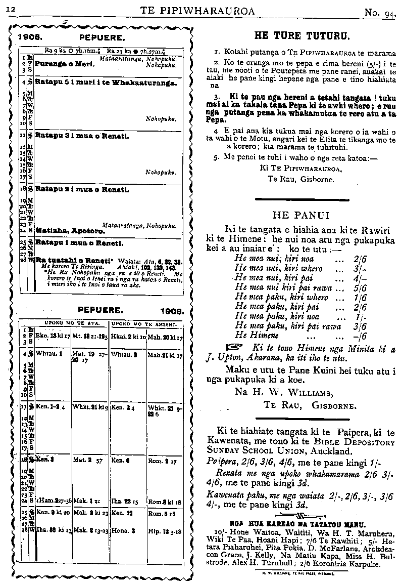 TE PIPIWHARAUROA. ഀ䠀䔀 吀唀刀䔀 吀唀吀唀刀唀⸀ഀഀ⸀ 䬀漀琀愀栀椀 瀀甀琀愀渀最愀 漀 吀䔀 倀䤀倀䤀圀䠀䄀刀䄀唀刀伀䄀 椀 琀攀 洀愀ⴀ ഀ爀愀洀愀⸀ഀഀ㈀⸀ 䬀漀 琀攀 漀爀愀渀最愀 洀漀 琀攀 瀀攀瀀愀 攀 爀椀洀愀 栀攀爀攀渀椀 ⠀㔀⼀ⴀ⤀ 椀 琀攀 ഀ琀愀甀Ⰰ 洀攀 渀漀漀琀椀 漀 琀攀 倀漀甀琀愀瀀攀琀愀 洀攀 瀀愀渀攀 爀愀渀攀椀⸀ഀഀ㌀⸀ 䬀椀 琀攀 栀椀愀栀椀愀 琀攀 琀愀渀最愀琀愀 欀椀 琀攀 琀愀渀最漀 椀 吀攀 倀椀瀀椀ⴀ ഀ眀栀愀爀愀甀爀漀愀 洀攀 琀甀欀甀 洀愀椀 攀 椀愀 琀攀 洀漀渀椀 椀 爀漀琀漀 椀 琀攀 ഀ爀攀琀愀 眀栀愀欀愀愀琀甀 洀愀椀⸀ 䠀攀 眀栀愀欀愀愀琀甀 愀渀漀 栀漀欀椀 欀椀 渀最愀 ഀ琀愀渀最愀琀愀 攀 琀愀渀最漀 愀渀愀 椀 琀攀 瀀攀瀀愀Ⰰ 欀愀 琀愀攀 欀椀 琀攀 眀愀 攀 ഀ瀀愀甀 愀椀 愀 欀漀甀琀漀甀 洀漀渀椀 琀甀欀甀 洀愀椀 欀愀 琀愀欀愀椀愀 琀攀 瀀攀瀀愀 ഀ欀椀 琀攀 琀愀欀愀椀 眀栀攀爀漀⸀ 䬀椀愀 琀攀爀攀 琀攀 琀甀欀甀 洀愀椀 愀渀漀 椀 琀攀 ഀ栀甀愀 欀愀爀攀愀漀Ⰰ 欀椀 琀攀 欀漀爀攀 攀 琀攀爀攀 洀愀椀 欀愀 洀甀琀甀 琀攀 爀攀爀攀 ഀ愀琀甀⸀ 䬀漀 琀攀 甀琀甀 椀 琀攀 琀愀甀 㔀⼀ⴀⰀ 洀攀 甀琀甀 椀 琀攀 琀甀愀琀愀栀椀⸀ഀഀ㐀⸀ 䔀 瀀愀椀 愀渀愀 欀椀愀 琀甀欀甀愀 洀愀椀 渀最愀 欀漀爀攀爀漀 漀 椀愀 眀愀栀椀 漀 ഀ椀愀 眀愀栀椀 漀 琀攀 䴀漀琀甀Ⰰ 攀渀最愀爀椀 欀攀椀 琀攀 䔀琀椀琀愀 琀攀 琀椀欀愀渀最愀 洀漀 琀攀 ഀ琀愀 椀 愀甀愀 欀漀爀攀爀漀㬀 欀椀愀 洀愀爀愀洀愀 琀攀 琀甀栀椀琀甀栀椀⸀ഀഀ㔀⸀ 䴀攀 瀀攀渀攀椀 琀攀 琀甀栀椀 椀 眀愀栀漀 漀 渀最愀 爀攀琀愀 欀愀琀漀愀㨀᐀ഠഀ䬀椀 吀䔀 倀䤀倀䤀圀䠀䄀刀䄀唀刀伀䄀Ⰰഀഀ吀攀 刀愀甀Ⰰ 䜀椀猀戀漀洀攀⸀ഀഀഀഀഀഀ䠀䔀 倀䄀一唀䤀⸀ഀഀ䬀椀 琀攀 琀愀䬀愁琀愀 攀 栀椀愀栀椀愀 愀渀愀 欀椀 琀攀 刀愀眀椀爀椀 欀椀 琀攀 ഀ䠀椀洀攀渀攀㨀 栀攀 渀甀椀 渀漀愀 愀琀甀 䬀愁 瀀甀欀愀瀀甀欀愀 欀攀椀 愀 ഀ愀甀 椀渀愀椀愀渀攀椀㨀 欀漀 琀攀 甀琀甀㨀᐀ഠഀ䠀攀 洀攀愀 渀甀椀Ⰰ 欀椀爀椀 渀漀愀Ⰰ ㈀⼀㘀 ഀ䠀攀 洀攀愀 渀甀椀Ⰰ 欀椀爀椀 眀栀攀爀漀Ⰰ ㌀⼀ⴀ ഀ䠀攀 洀攀愀 渀甀椀Ⰰ 欀椀爀椀 瀀愀椀Ⰰ 㐀⼀ⴀ ഀ䠀攀 洀攀愀 渀甀椀Ⰰ 欀椀爀椀 瀀愀椀 爀愀眀愀Ⰰ 㔀⼀㘀 ഀ䠀攀 洀攀愀 瀀愀欀甀Ⰰ 欀椀爀椀 眀栀攀爀漀Ⰰ ⼀㘀 ഀ䠀攀 洀攀愀 瀀愀欀甀Ⰰ 欀椀爀椀 瀀愀椀Ⰰ ㈀⼀㘀 ഀ䠀攀 洀攀愀 瀀愀欀甀Ⰰ 欀椀爀椀 渀漀愀Ⰰ 椀⼀ⴀ ഀ䠀攀 洀攀愀 瀀愀欀甀Ⰰ 欀椀爀椀 瀀愀椀 爀愀眀愀Ⰰ ㌀⼀㘀 ഀ刀愀眀椀爀椀 ☀ 䠀椀洀攀渀攀Ⰰ 欀椀爀椀 渀漀愀Ⰰ ⼀㘀 ഀ刀愀眀椀爀椀 ☀ 䠀椀洀攀渀攀Ⰰ 眀栀攀爀漀Ⰰ ㈀⼀ⴀഀഀ刀愀眀椀爀椀 ☀ 䠀椀洀攀渀攀Ⰰ 瀀愀椀Ⰰ ㌀⼀ⴀ ഀ刀愀眀椀爀椀 ☀ 䠀椀洀攀渀攀Ⰰ 瀀愀椀 爀愀眀愀Ⰰ 㐀⼀ⴀ ഀ䠀攀 䠀椀洀攀渀攀Ⰰ 㘀搀⸀ഀഀ䴀愀欀甀 攀 甀琀甀 琀攀 倀愀渀攀 䬀椀䬀椁 栀攀椀 琀甀欀甀 愀琀甀 椀䬀 愀 ഀ瀀甀欀愀瀀甀欀愀 欀椀 愀 欀漀攀⸀ഀഀ一愀 䠀⸀ 圀⸀ 圀䤀䰀䰀䤀䄀䴀匀Ⰰഀഀ吀攀 刀愀甀Ⰰ 䜀椀猀戀漀爀渀攀⸀ഀഀഀഀ䬀椀 琀攀 栀椀愀栀椀愀 琀攀 琀愀䬀愁琀愀 欀椀 琀攀 倀愀椀瀀攀爀愀 欀椀 琀攀 ഀ䬀愀眀攀渀愀琀愀Ⰰ 洀攀 琀漀渀漀 欀椀 琀攀 䈀䤀䈀䰀䔀 䐀䔀倀伀匀䤀吀伀刀夀 ഀ匀唀一䐀䄀夀 匀䌀䠀伀伀䰀 唀一䤀伀一Ⰰ 䄀甀挀欀氀愀渀搀⸀ഀഀ倀愀椀瀀攀爀愀Ⰰ ㈀⼀㘀Ⰰ ㌀⼀㘀Ⰰ 㐀⼀㘀Ⰰ 洀攀 琀攀 瀀愀渀攀 欀椀䬀椁 椀⼀ⴀഀഀ䬀愀眀攀渀愀琀愀 洀攀 䬀愁 甀瀀漀欀漀 眀栀愀欀愀洀愀爀愀洀愀Ⰰ ㈀⼀㘀Ⰰ ㌀⼀ⴀ ഀ㐀⼀㘀Ⰰ 洀攀 琀攀 瀀愀渀攀 欀椀䬀椁 ㌀搀⸀ഀഀ䬀愀眀攀渀愀琀愀 瀀愀欀甀Ⰰ 洀攀 䬀愁 眀愀椀愀琀愀Ⰰ ㈀⼀ⴀⰀ ㈀⼀㘀Ⰰ ㌀⼀ⴀⰀ ㌀⼀㘀Ⰰ ഀ㐀⼀ⴀⰀ 洀攀 琀攀 瀀愀渀攀 欀椀䬀椁Ⰰ ㌀搀⸀ഀഀഀഀ倀爀椀渀琀攀搀 愀渀搀 倀甀戀氀椀猀栀攀搀 戀礀 䠀⸀ 圀⸀ 圀䤀䰀䰀䤀䄀䴀匀Ⰰ 愀琀 吀攀 刀愀甀 ഀ倀爀椀渀琀椀渀最 圀漀爀欀猀Ⰰ 䈀攀爀爀礀 匀琀爀攀攀琀Ⰰ 䜀椀猀戀漀爀渀攀㬀 一攀眀 娀攀愀氀愀渀搀⸀ഀഀ一䜀䄀 䠀唀䄀 䬀䄀刀䔀䄀伀 䴀䄀 吀䄀 吀䄀吀伀唀 䴀䄀一唀⸀ഀഀ ⼀ⴀ 䠀漀渀攀 圀愀椀琀漀愀Ⰰ 圀愀椀琀椀琀椀Ⰰ 圀愀 䠀⸀ 吀⸀ 䴀愀爀甀栀攀爀甀Ⰰ ഀ圀椀欀椀 吀攀 倀愀愀Ⰰ 䠀漀愀渀椀 䠀愀瀀椀㬀 㜀⼀㘀 吀攀 刀愀眀栀椀琀椀㬀 㔀⼀ⴀ 䠀攀ⴀഀ琀愀爀愀 倀椀愀栀愀爀甀栀攀椀Ⰰ 倀椀琀愀 倀漀欀椀愀Ⰰ 䐀⸀ 䴀挀䘀愀爀氀愀渀攀Ⰰ 䄀爀挀栀搀攀愀ⴀഀ挀漀渀 䜀爀愀挀攀Ⰰ 䨀⸀ 䬀攀氀氀礀Ⰰ 一愀 䴀愀琀椀甀 䬀愀瀀愀Ⰰ 䴀椀猀猀 䠀⸀ 䈀甀氀ⴀഀ猀琀爀漀搀攀Ⰰ 䄀氀攀砀 䠀⸀ 吀甀爀渀戀甀氀氀㬀 ㈀⼀㘀 䬀漀爀漀渀椀爀椀愀 䬀愀爀愀瀀甀欀攀⸀ഀഀ䠀⸀圀⸀圀䤀䰀䰀䤀䄀䴀匀 吀䔀 刀䄀唀 倀刀䔀匀匀 䜀䤀匀䈀伀刀一䔀