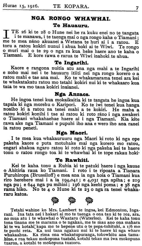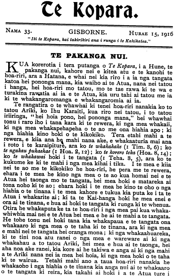 Te Kopara 1913-1921: Number 33. 15 July 1916 |