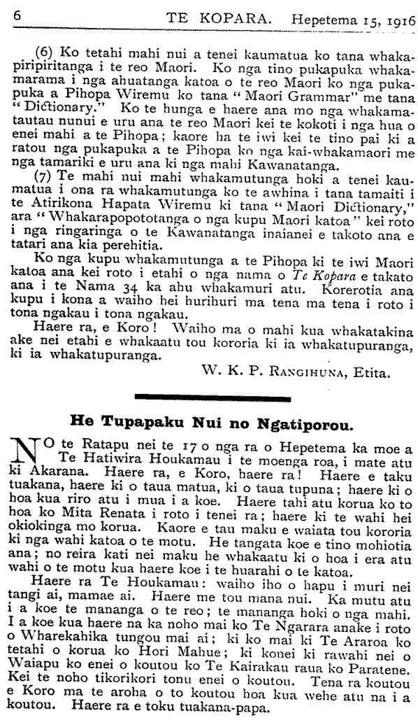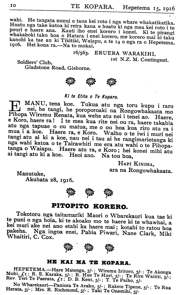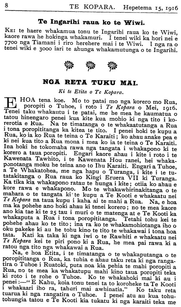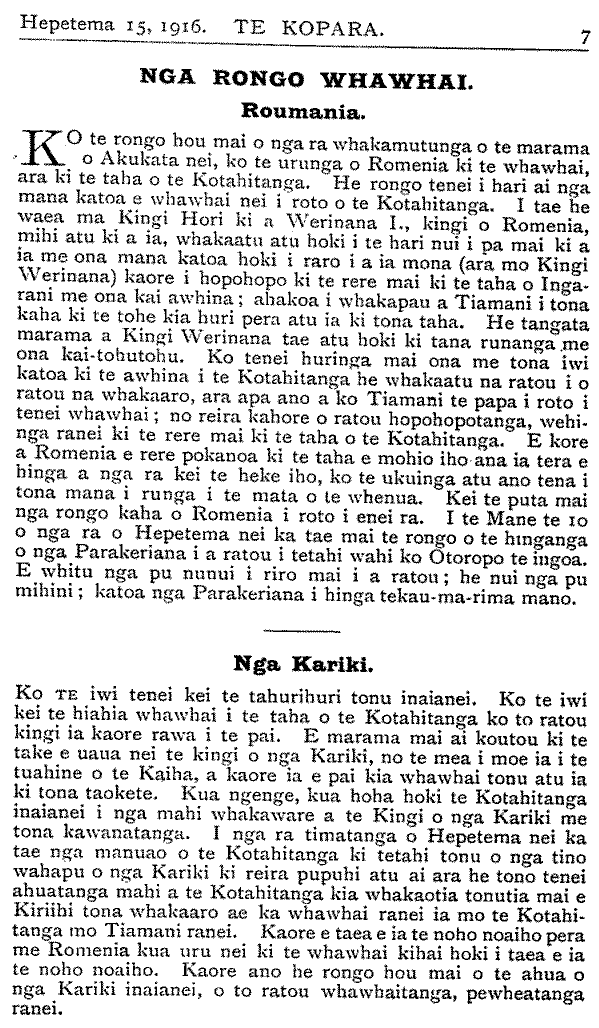 Te Kopara 1913-1921: Number 35. 15 September 1916 |