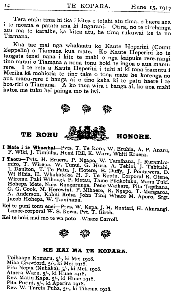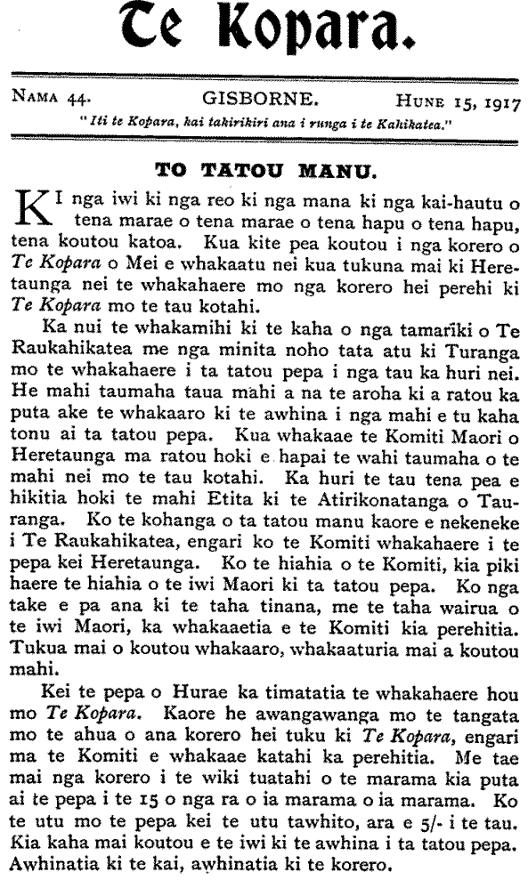 Te Kopara 1913-1921: Number 44. 15 June 1917 |