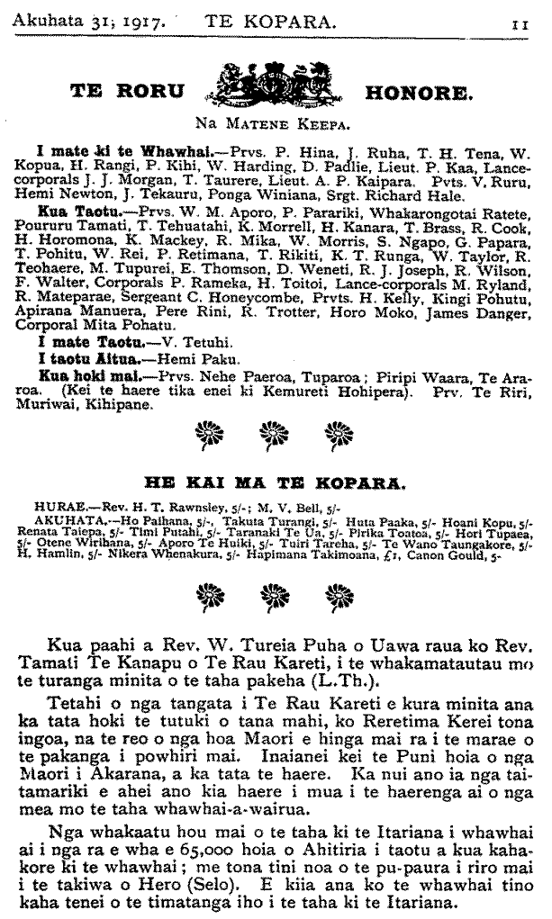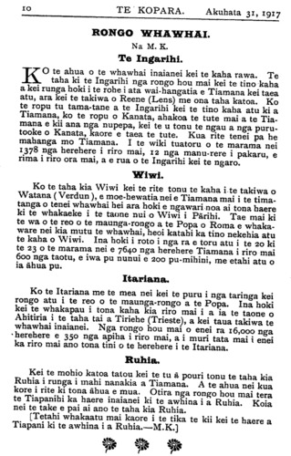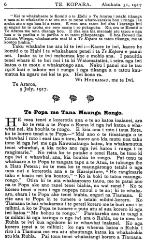 Te Kopara 1913-1921: Number 46. 31 August 1917 |