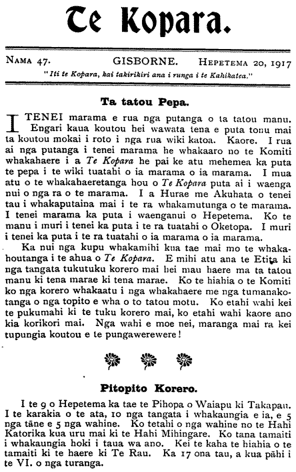 Te Kopara 1913-1921: Number 47. 20 September 1917 |