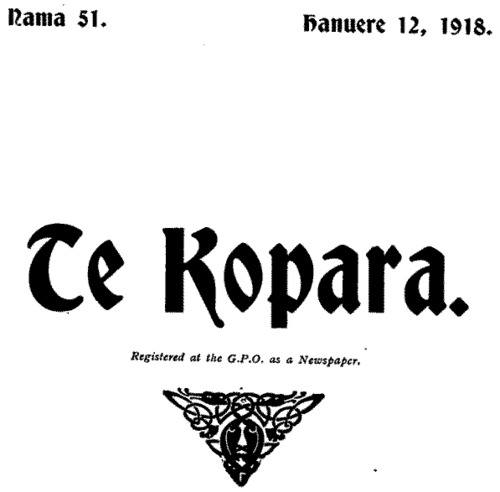 Nama 51. hanuere 12, 1918. Te Kopara. Registered at the G.P.O. as a Newstpaper. Te Oranga mo tenei Pena e Rima Hereni mo te Tau