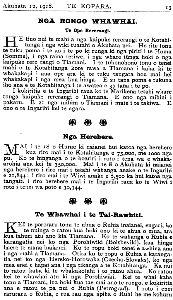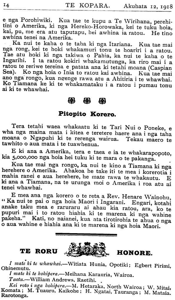 Te Kopara 1913-1921: Number 58. 12 August 1918 |