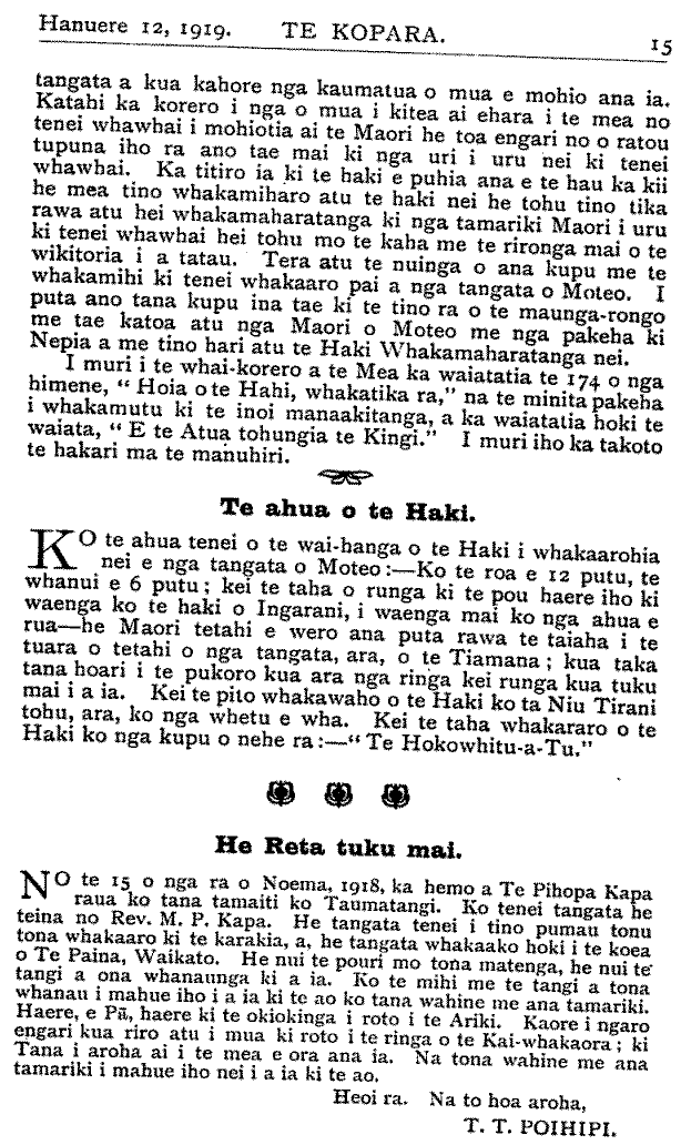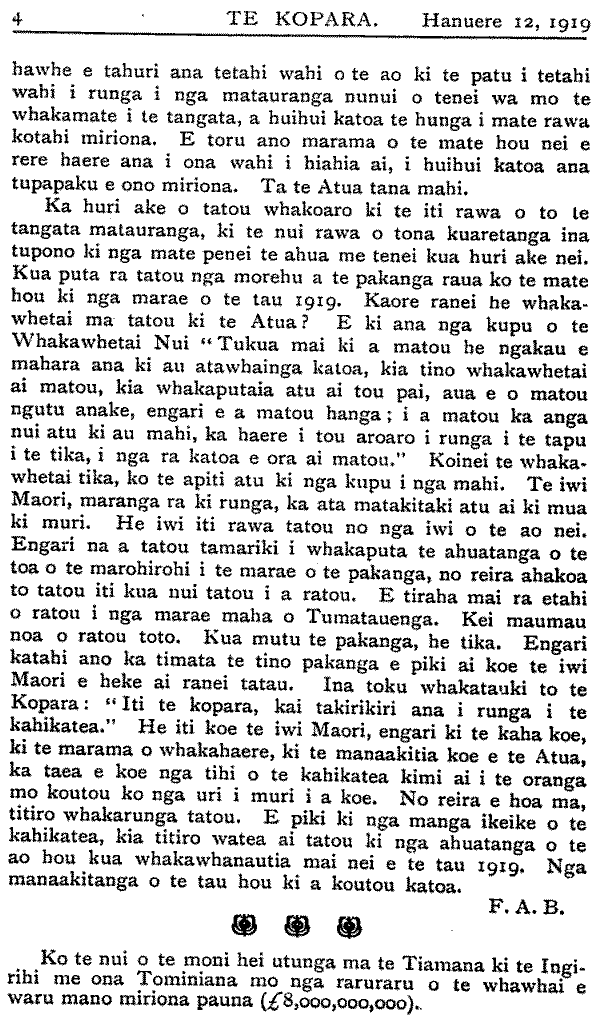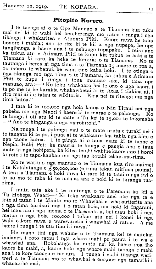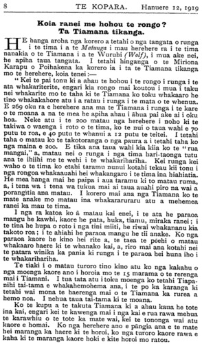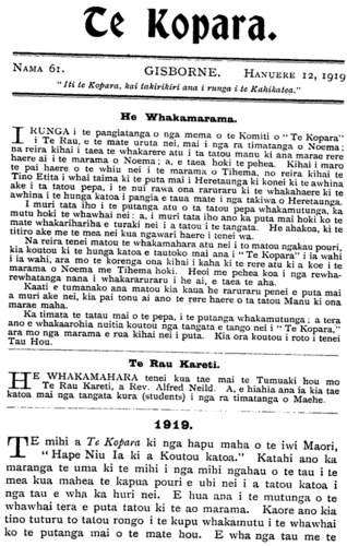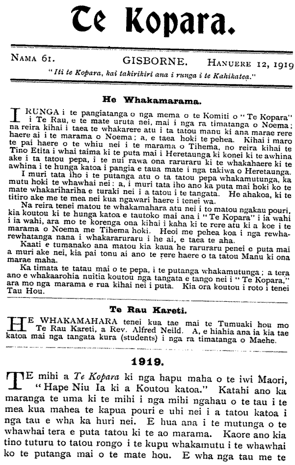 Te Kopara 1913-1921: Number 61. 12 January 1919 |