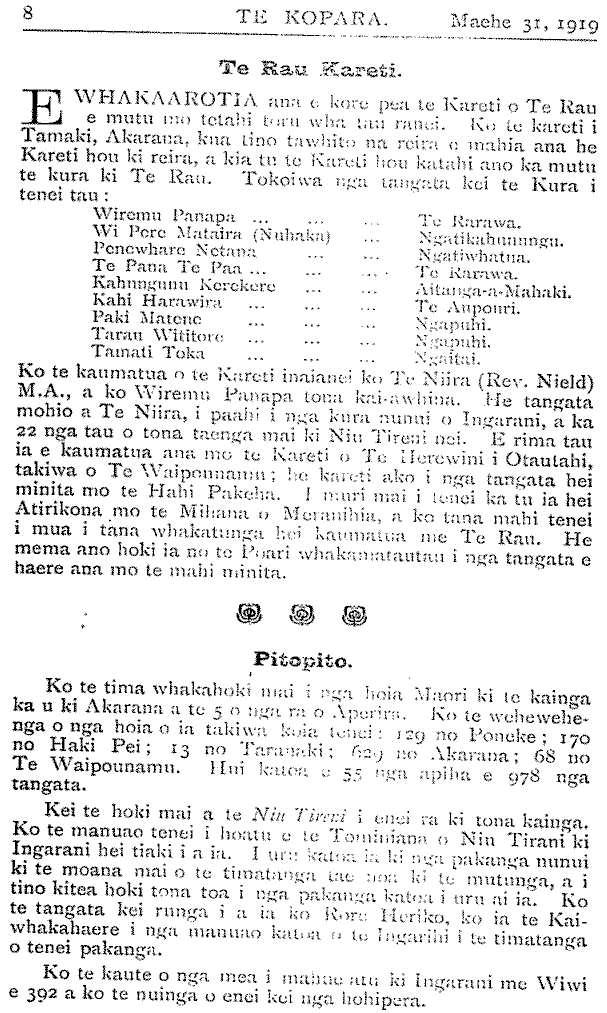 Te Kopara 1913-1921: Number 63. 31 March 1919 |