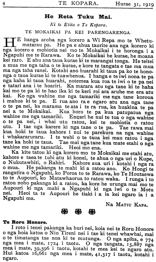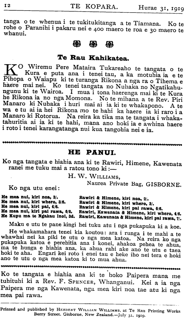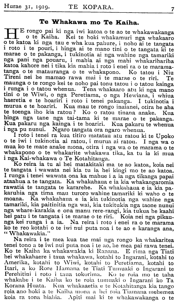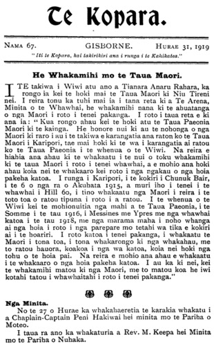 Te Kopara 1913-1921: Number 67. 31 July 1919 |