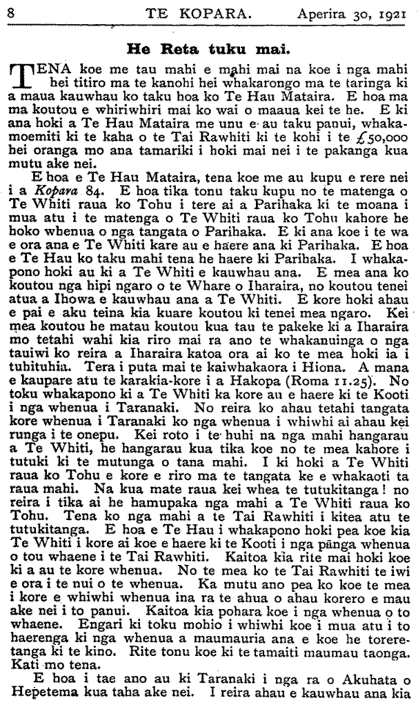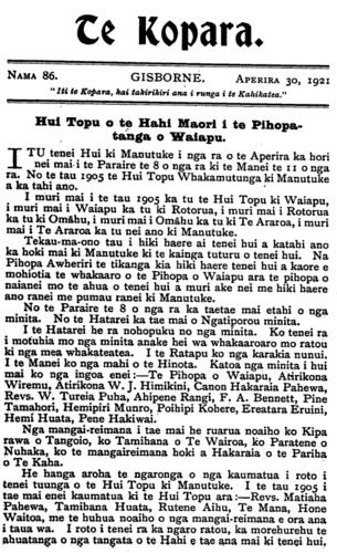 Te Kopara 1913-1921: Number 86. 30 April 1921