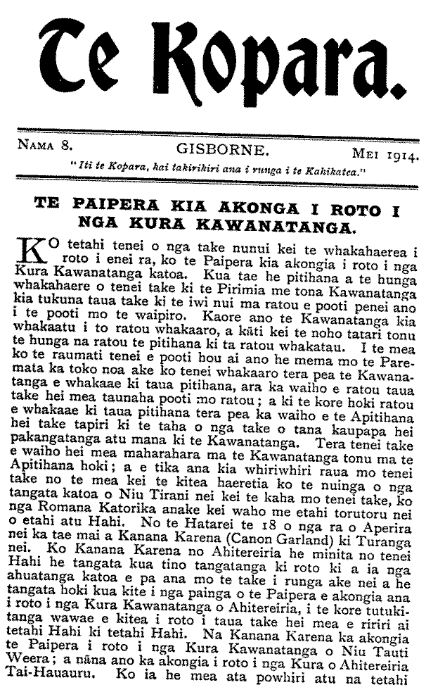 Te Kopara 1913-1921: Number 8. May 1914 |