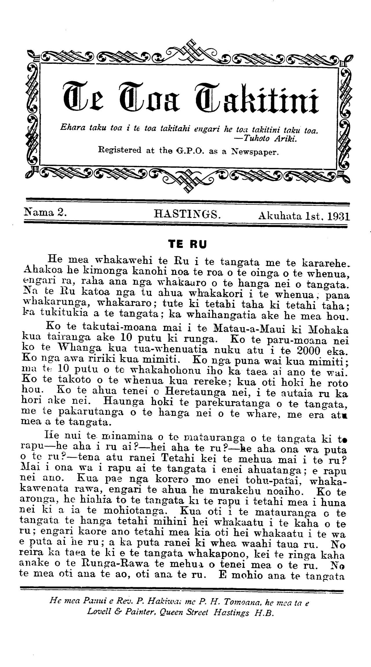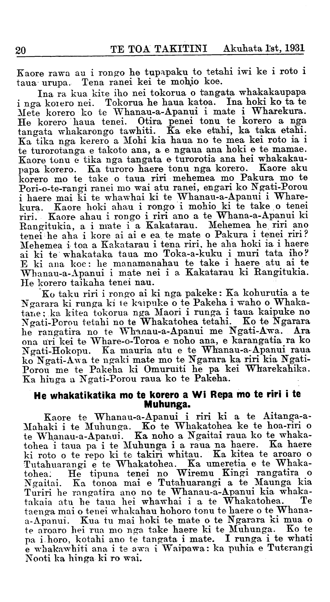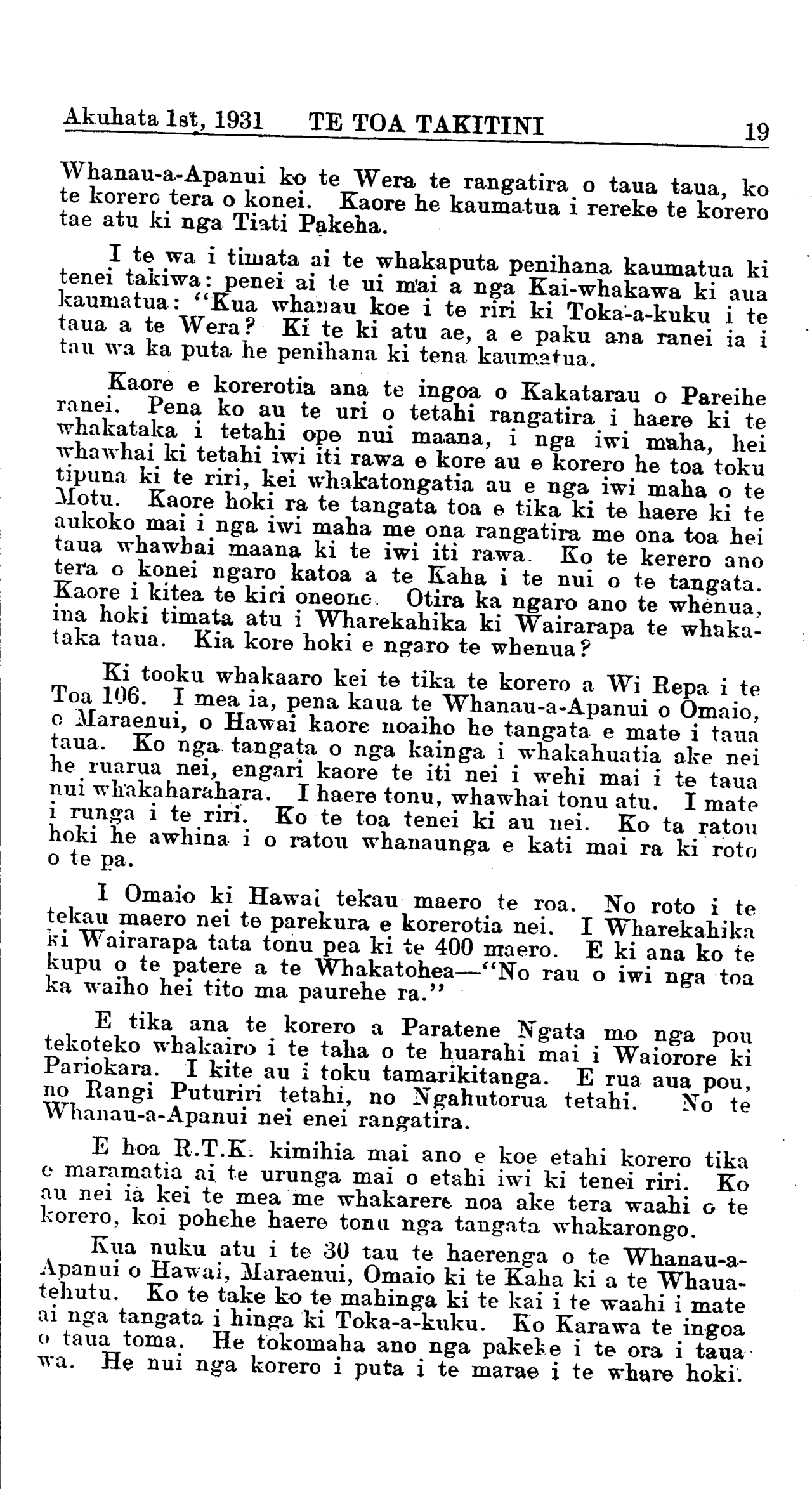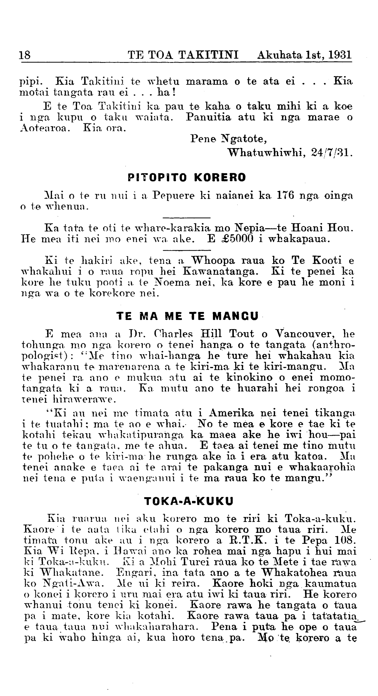 14\_\_\_\_\_\_\_\_\_\_\_TE TOA TAKITINI Akuhata 1st. 1931