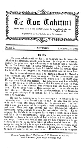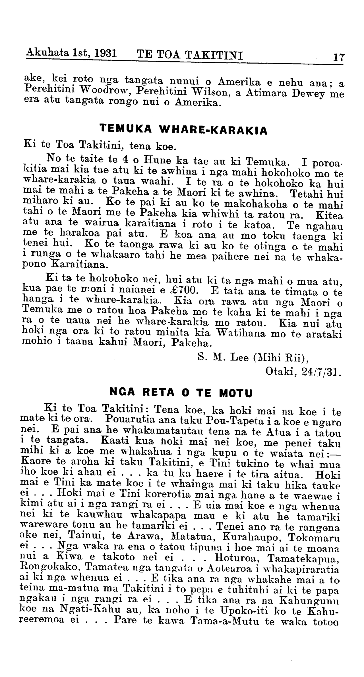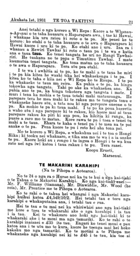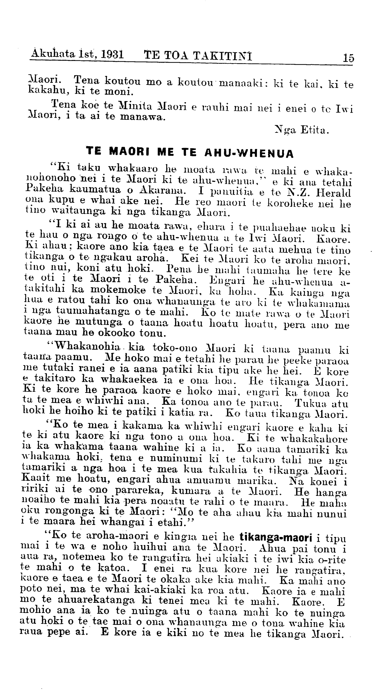 Akuhata 1st, 1931 TE TOA TAKITINI\_\_\_\_\_\_\_\_\_\_\_15