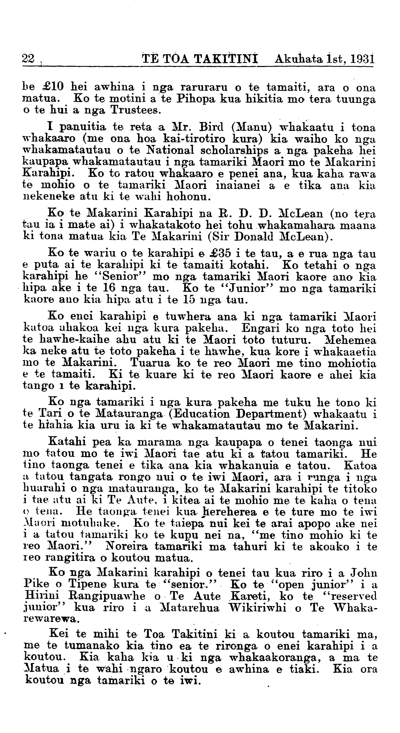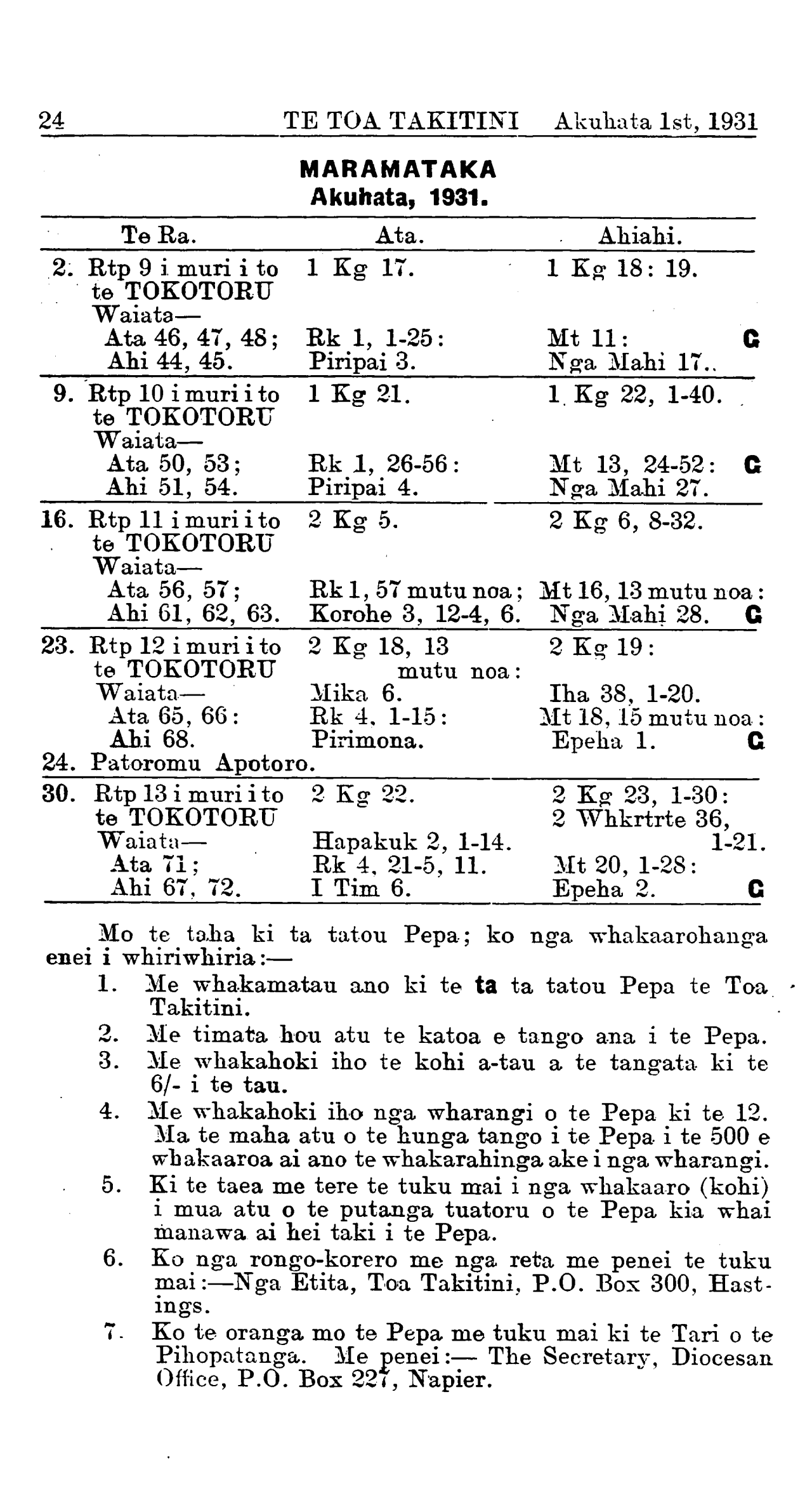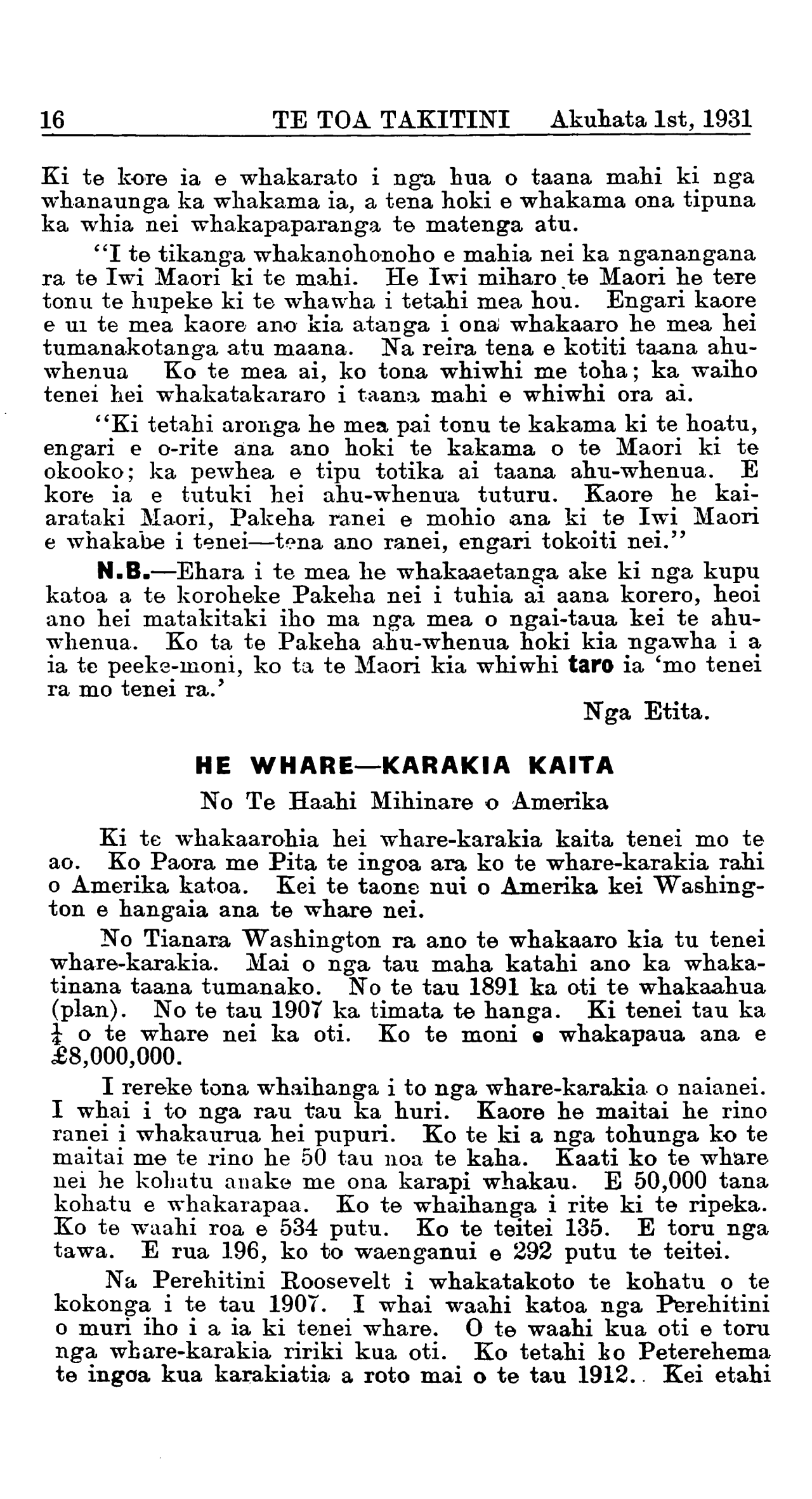24\_\_\_\_\_\_\_\_\_\_\_\_TE TOA TAKITINI Akuhata 1st, 1931