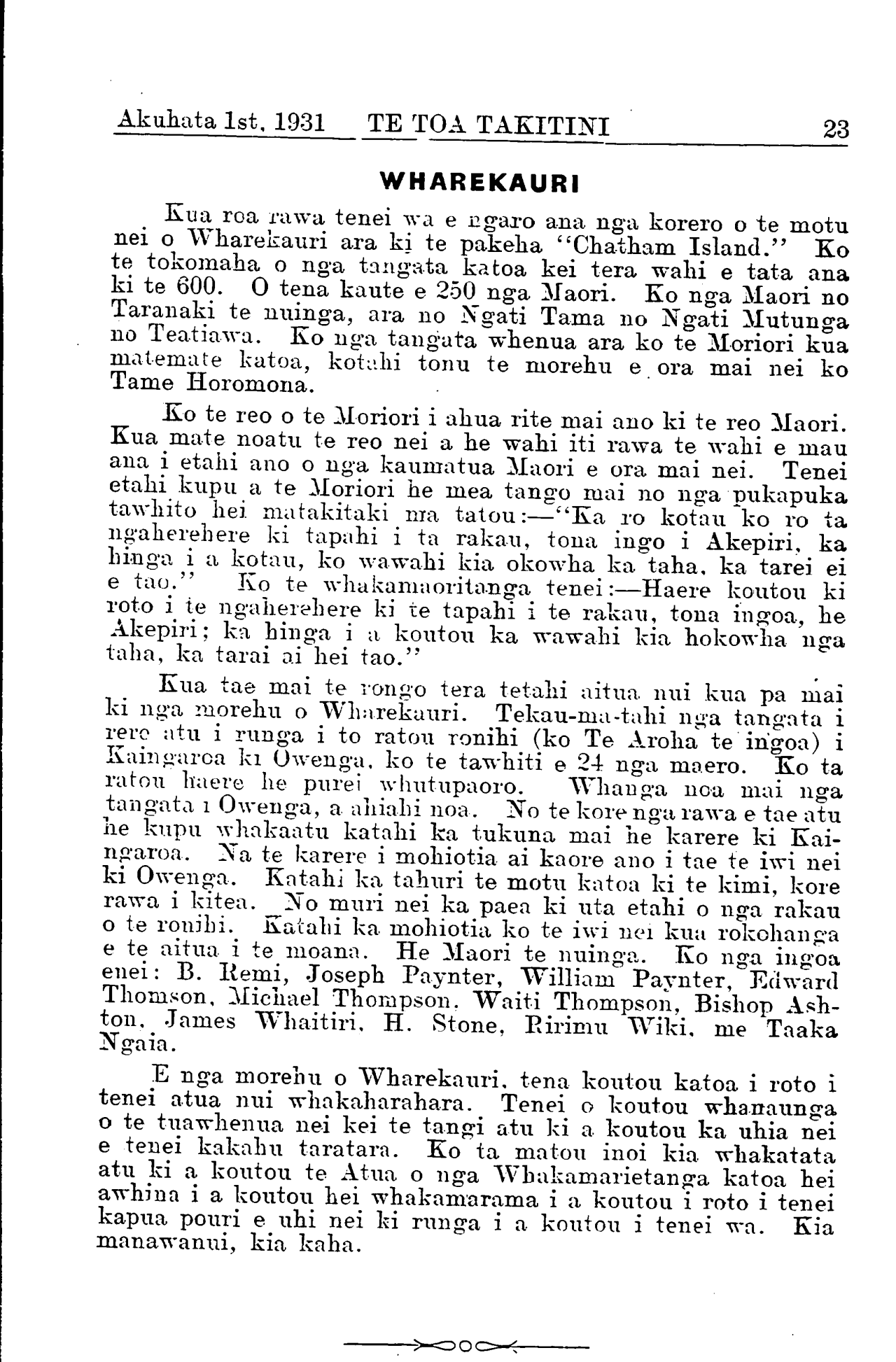 Akuhata 1st. 1931 TE TOA TAKITINI\_\_\_\_\_\_\_\_\_\_\_23