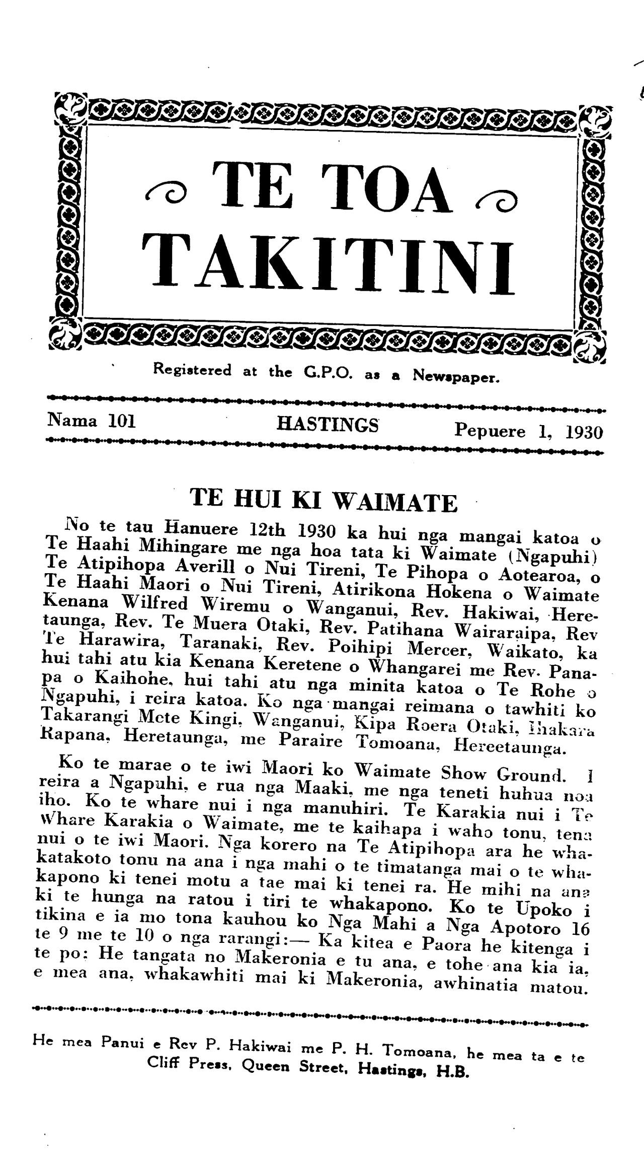 Te Toa Takitini 1921-1932: Number 101. 01 February 1930 |