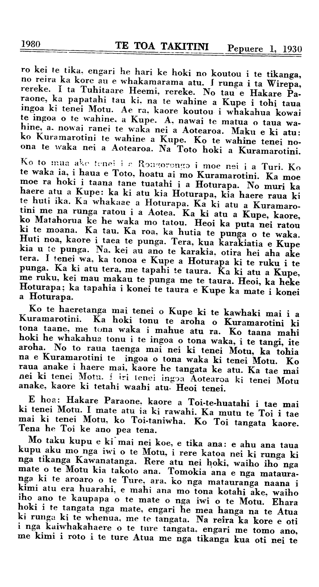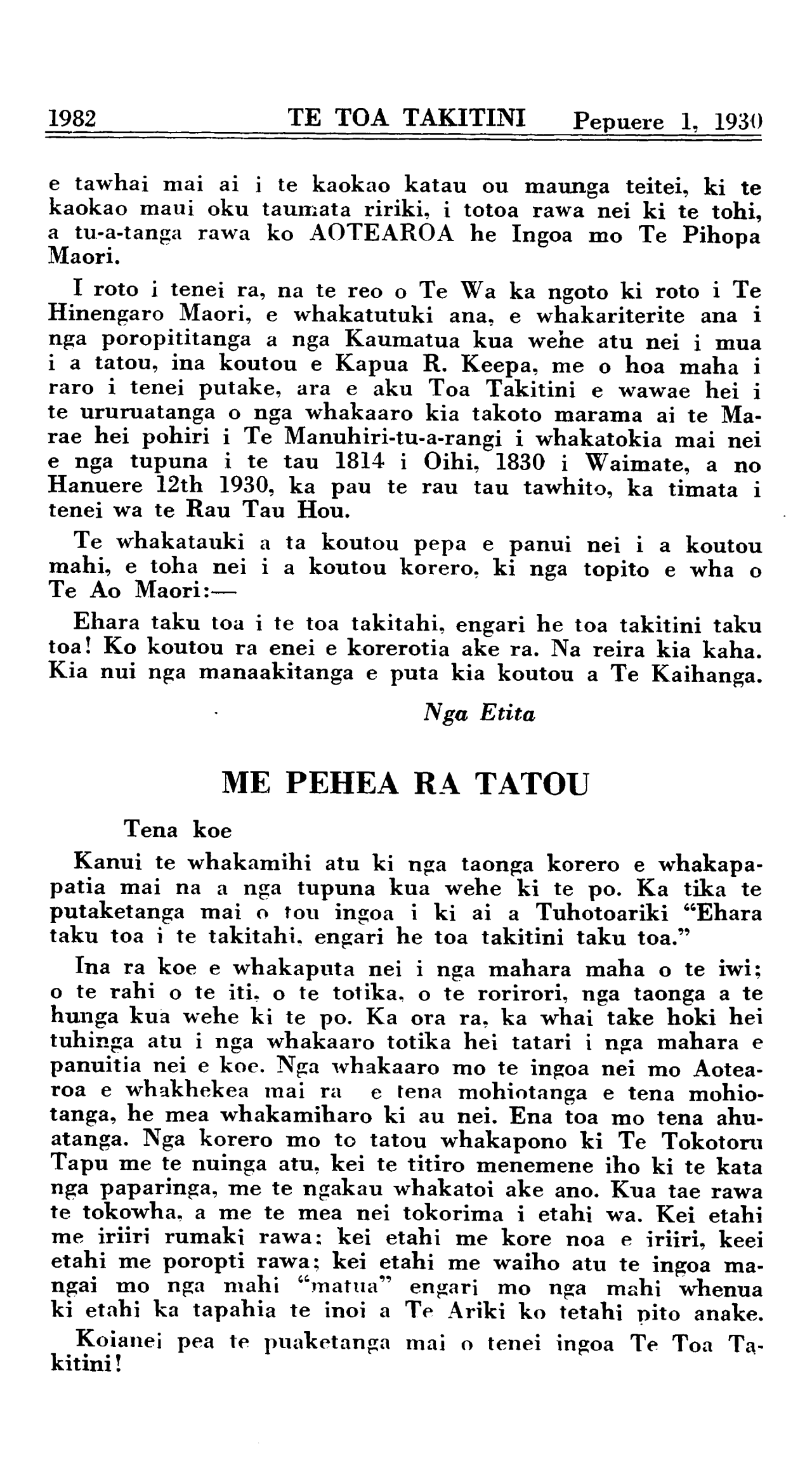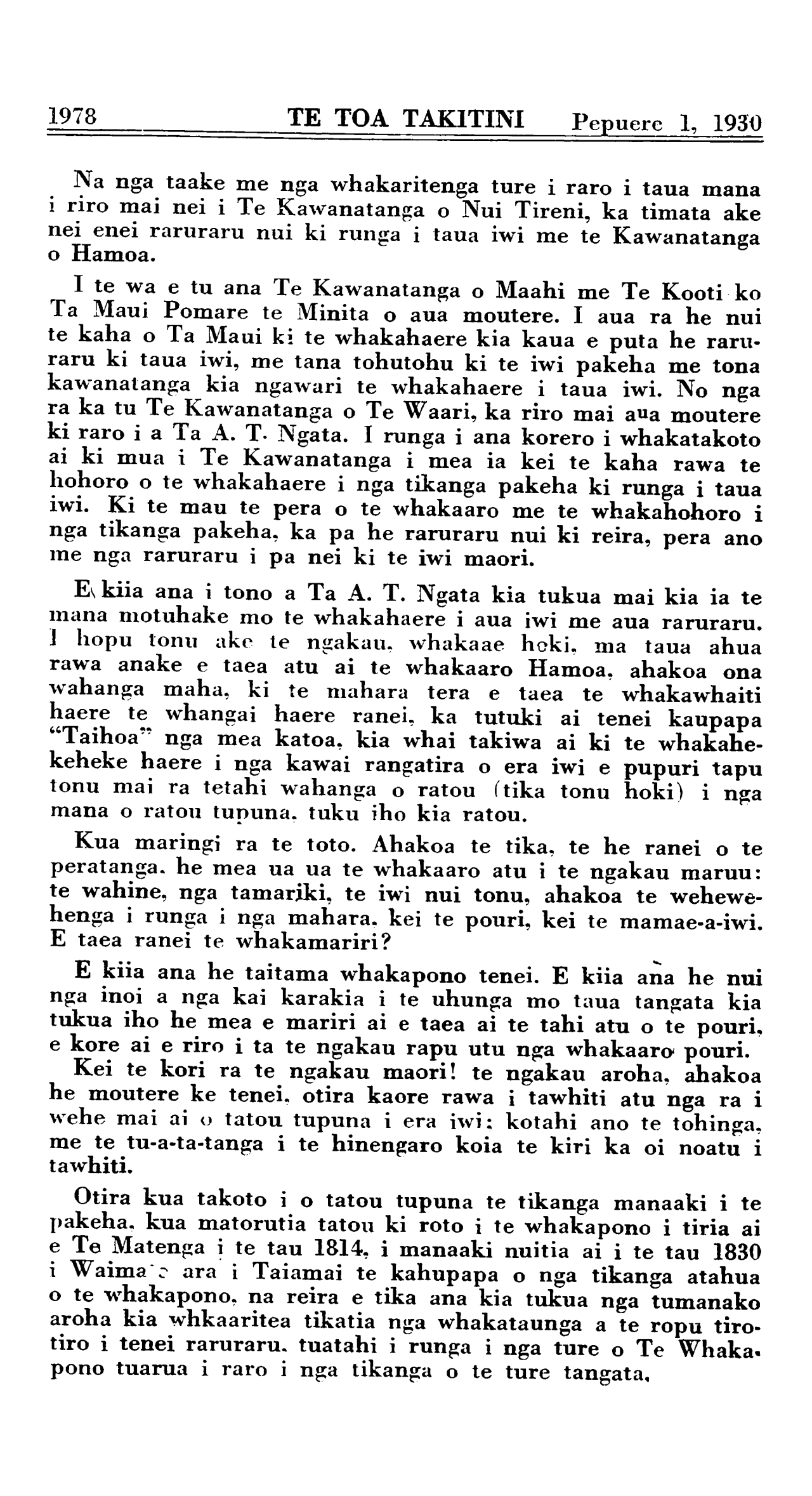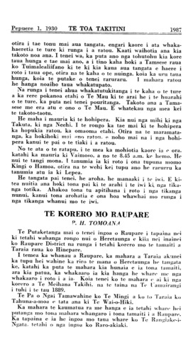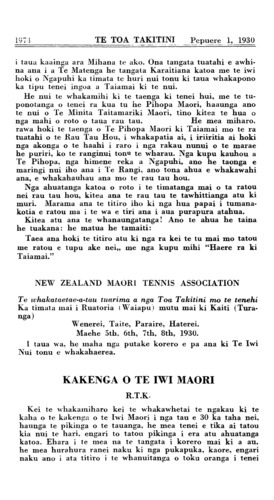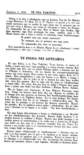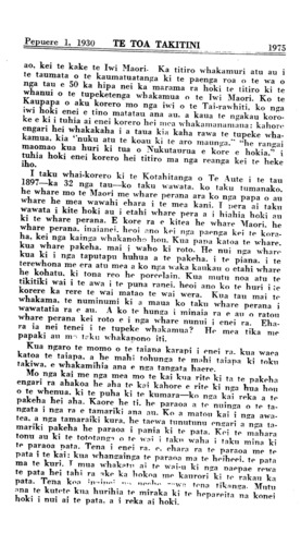 Pepuere 1, 1930 TE TOA TAKITINI \_\_ \_ 1987