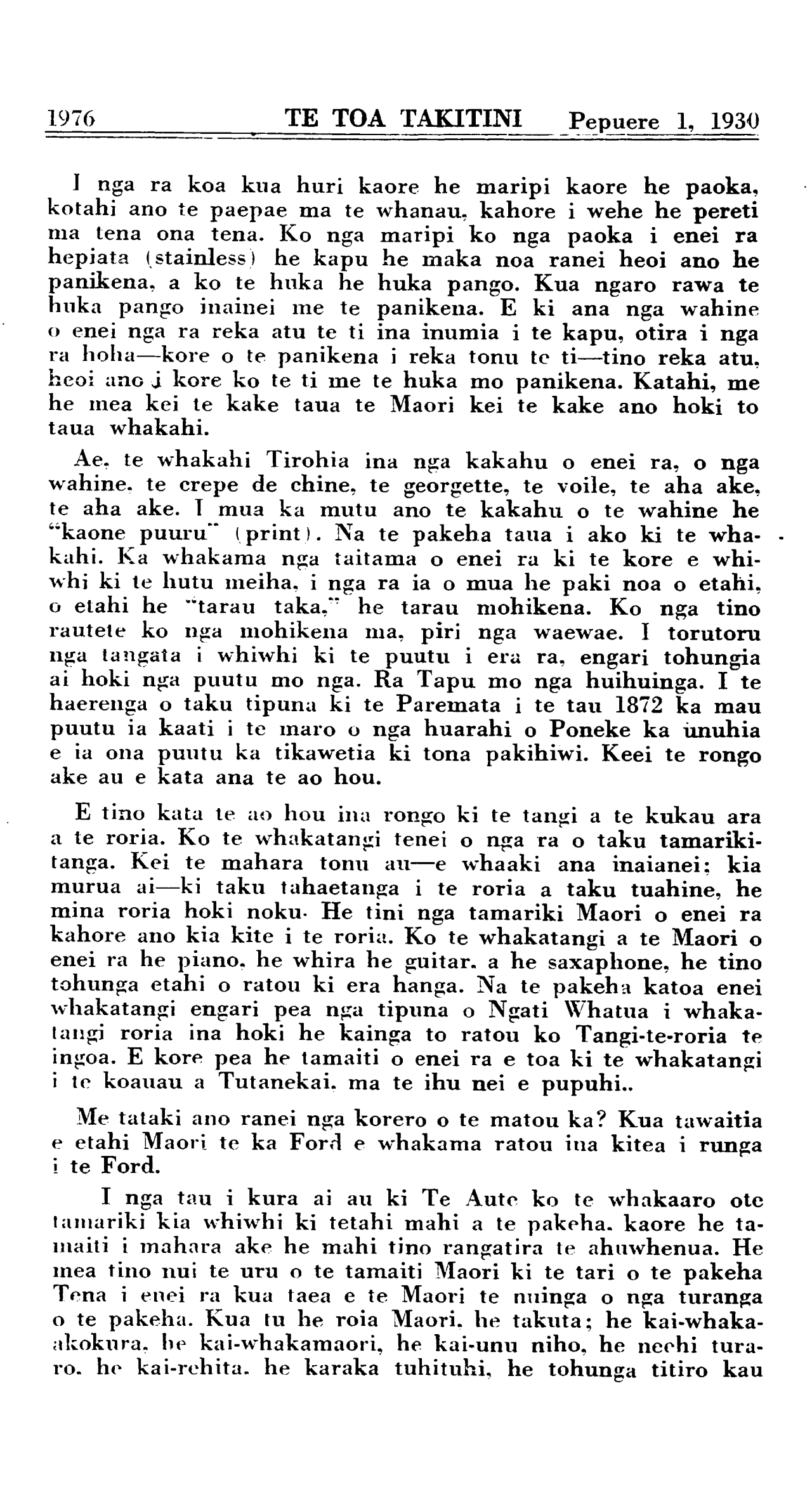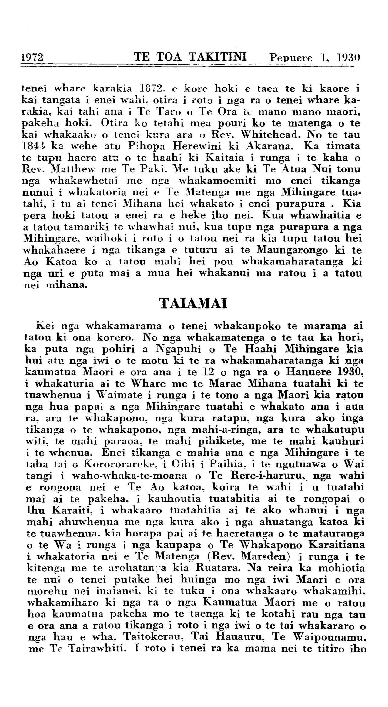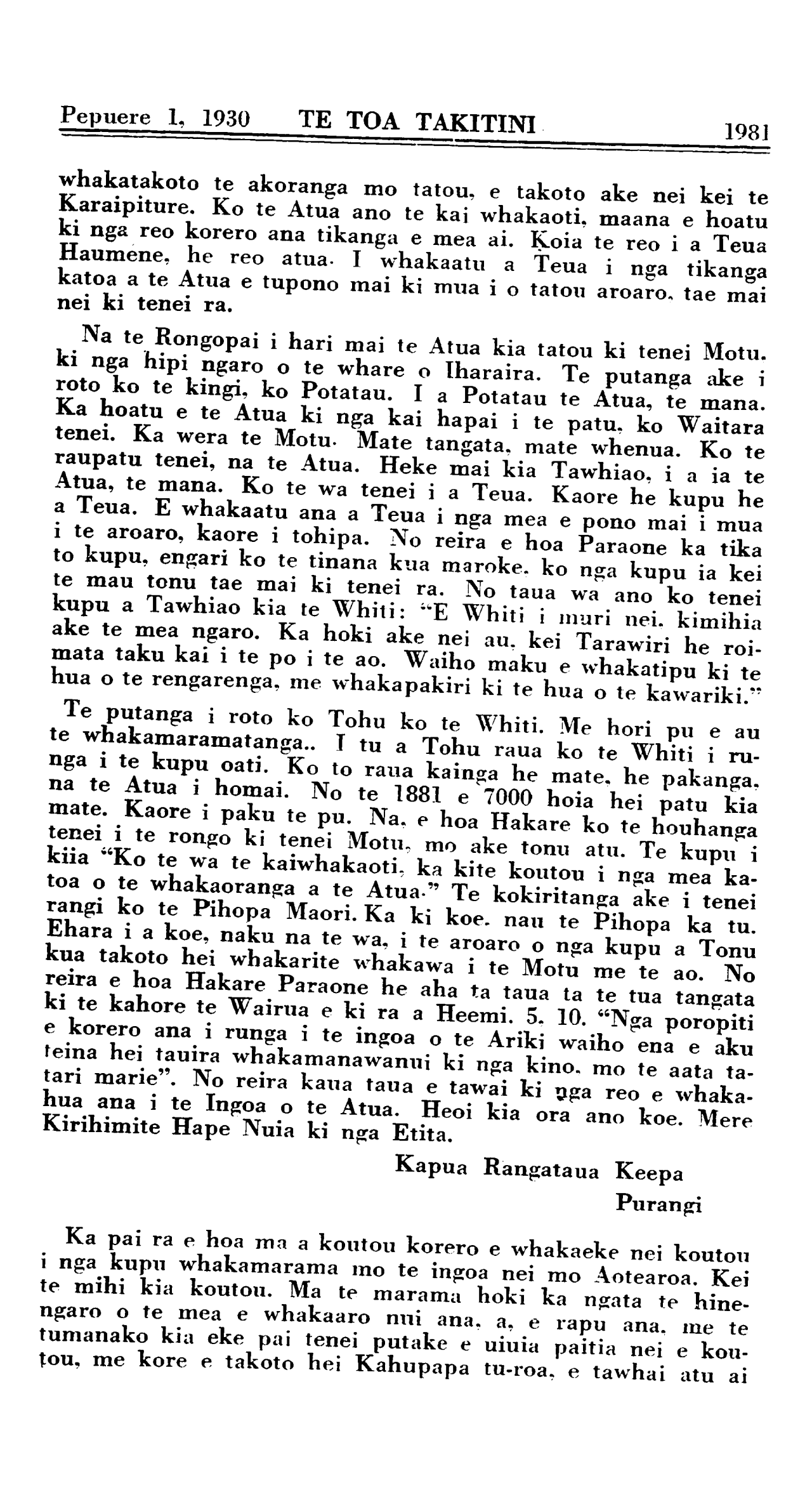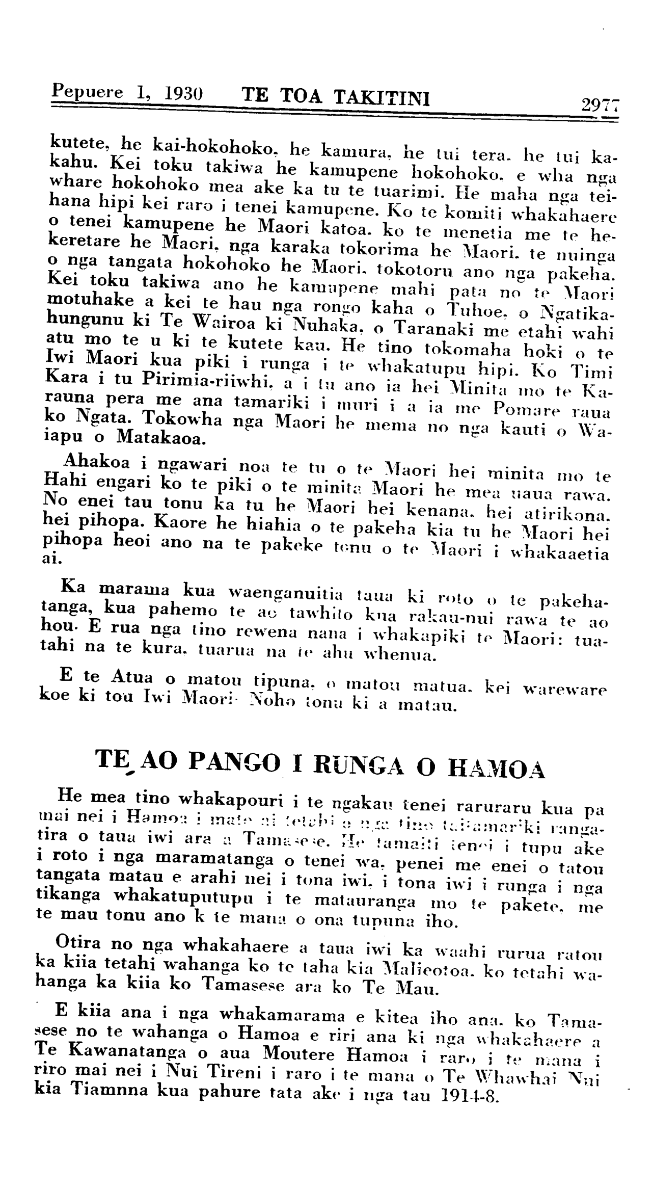 Pepuere 1, 1930 TE TOA TAKITINI \_\_ \_ 1987