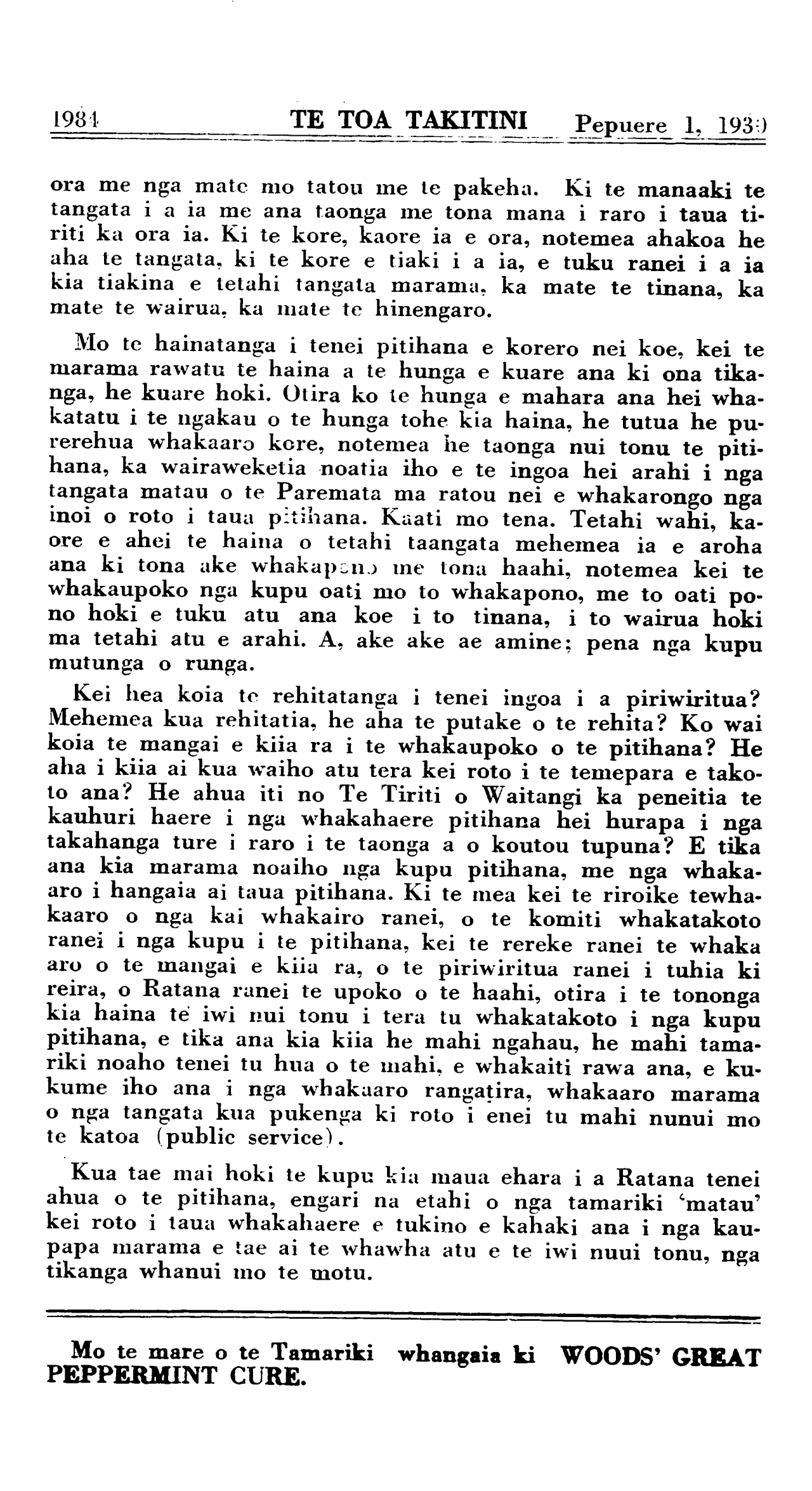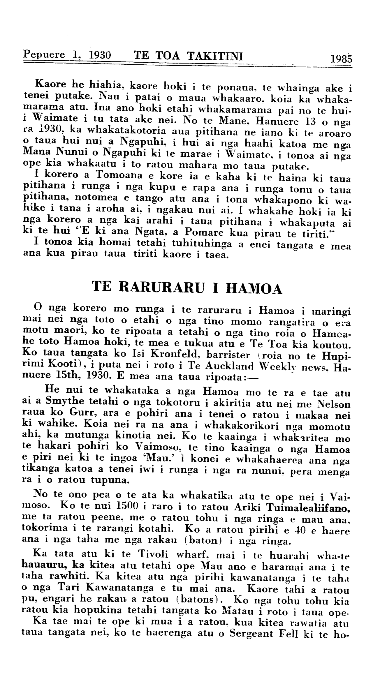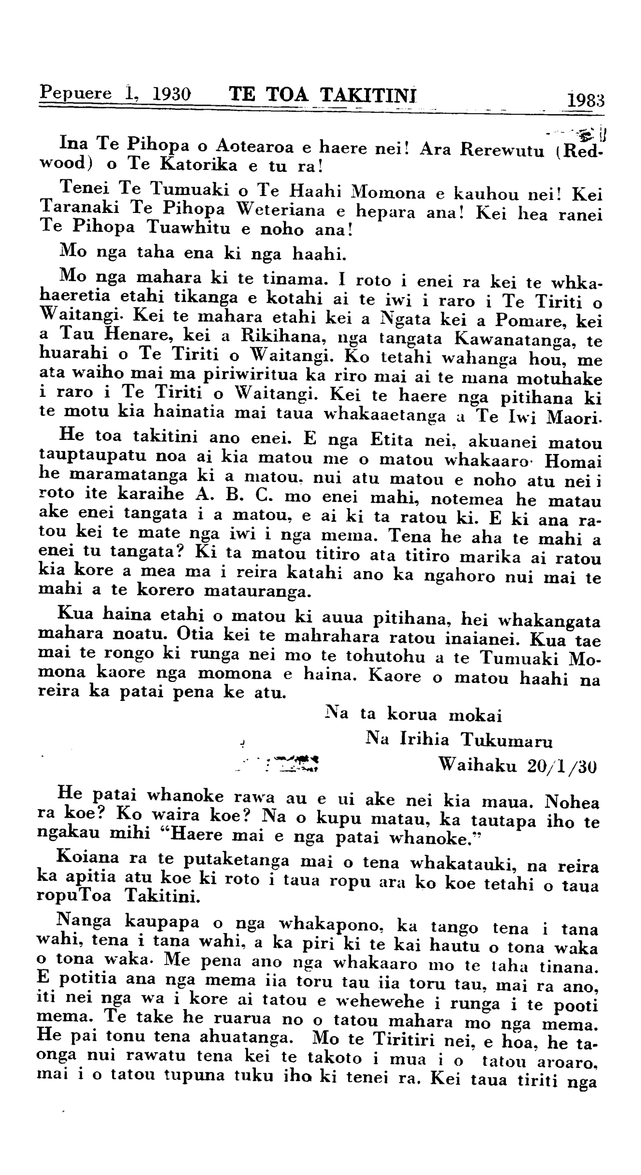 Pepuere 1, 1930 TE TOA TAKITINI \_\_ \_ 1987