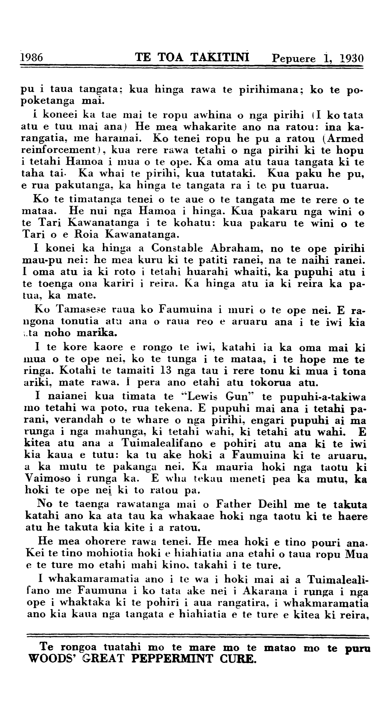 1988 TE TOA TAKITINI Pepuere 1, 1930