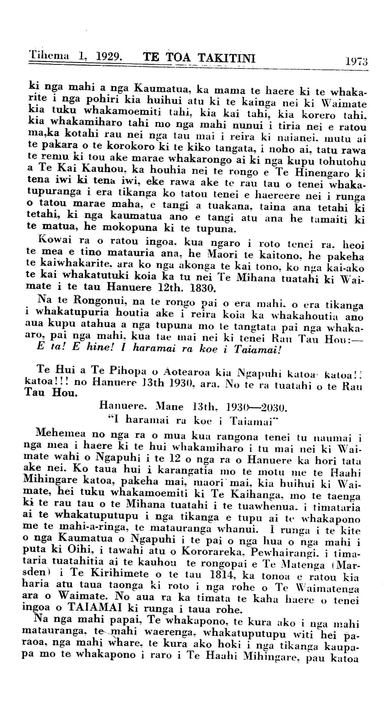 No te tau Hanuere 12th 1930 ka hui nga mangai katoa o