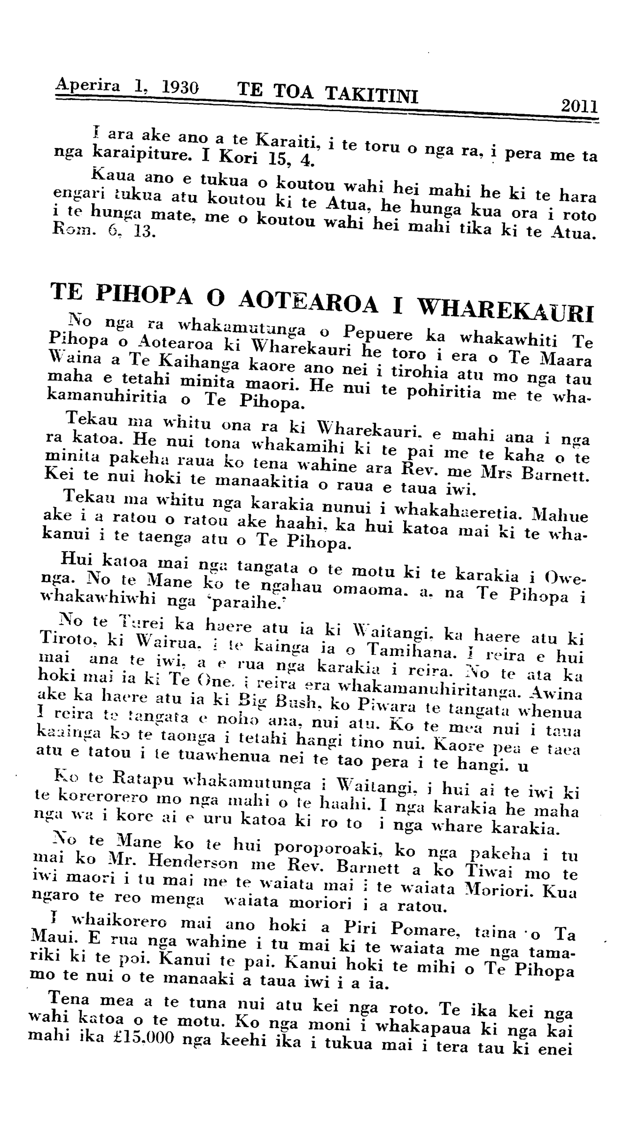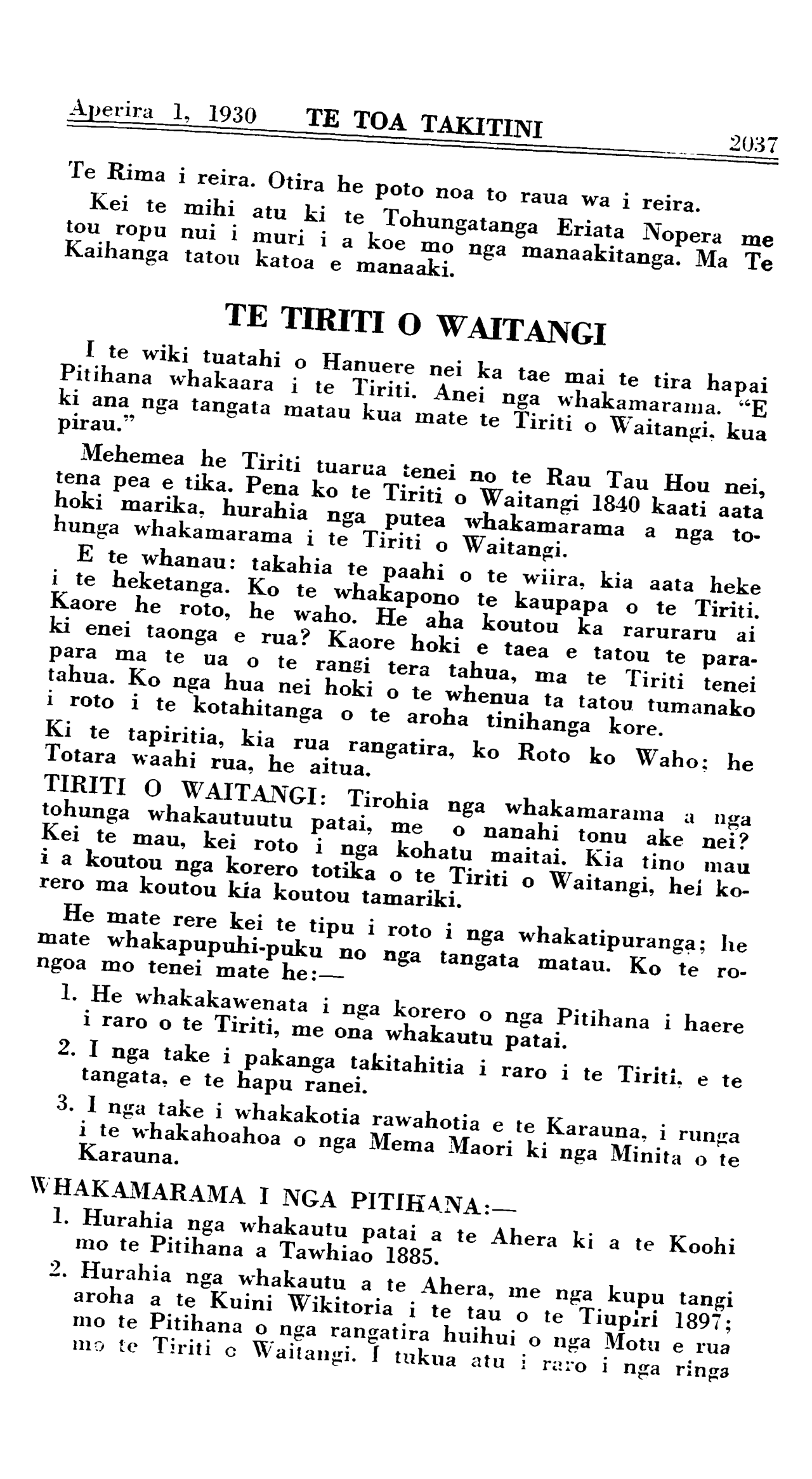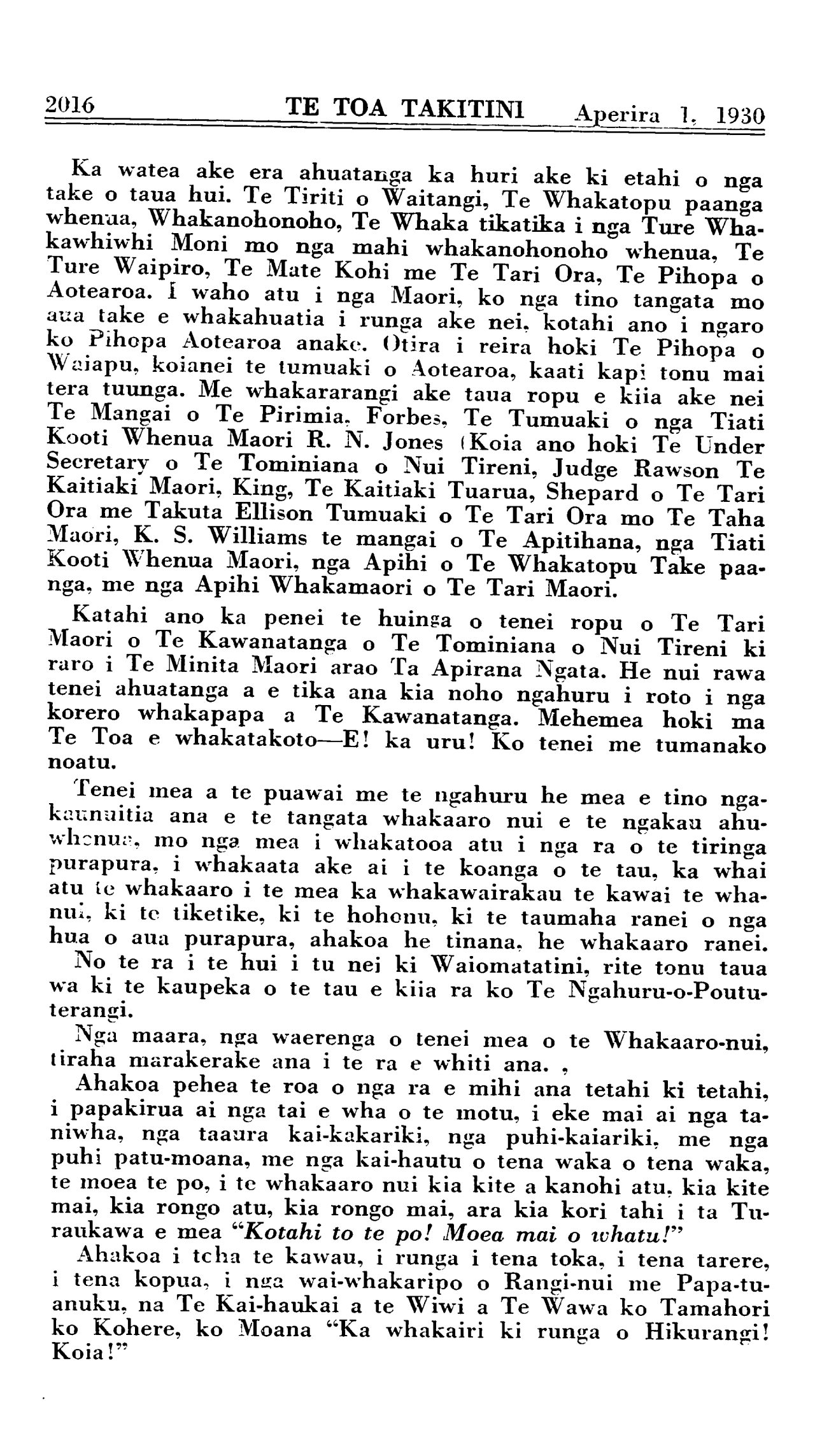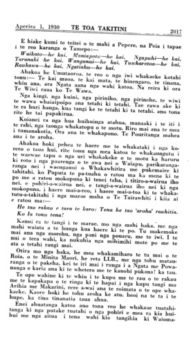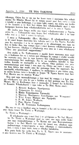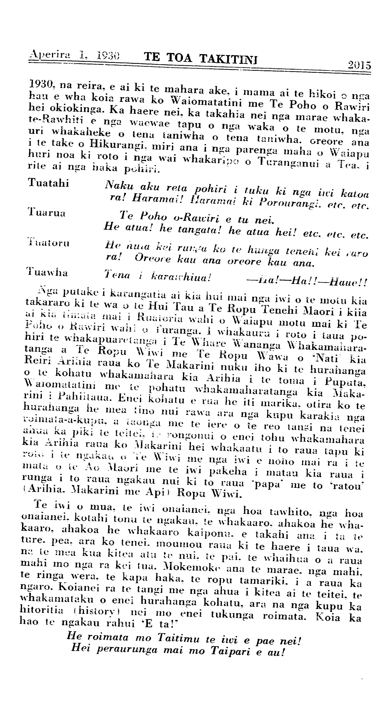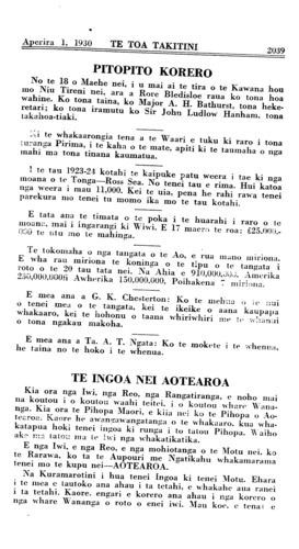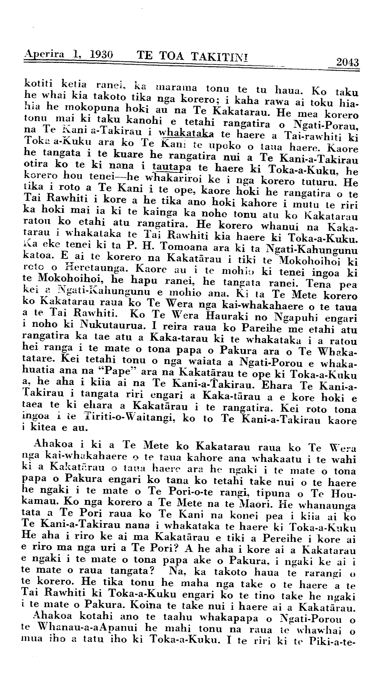 Aperira 1, 1930   TE  TOA  TAKITINI                2043