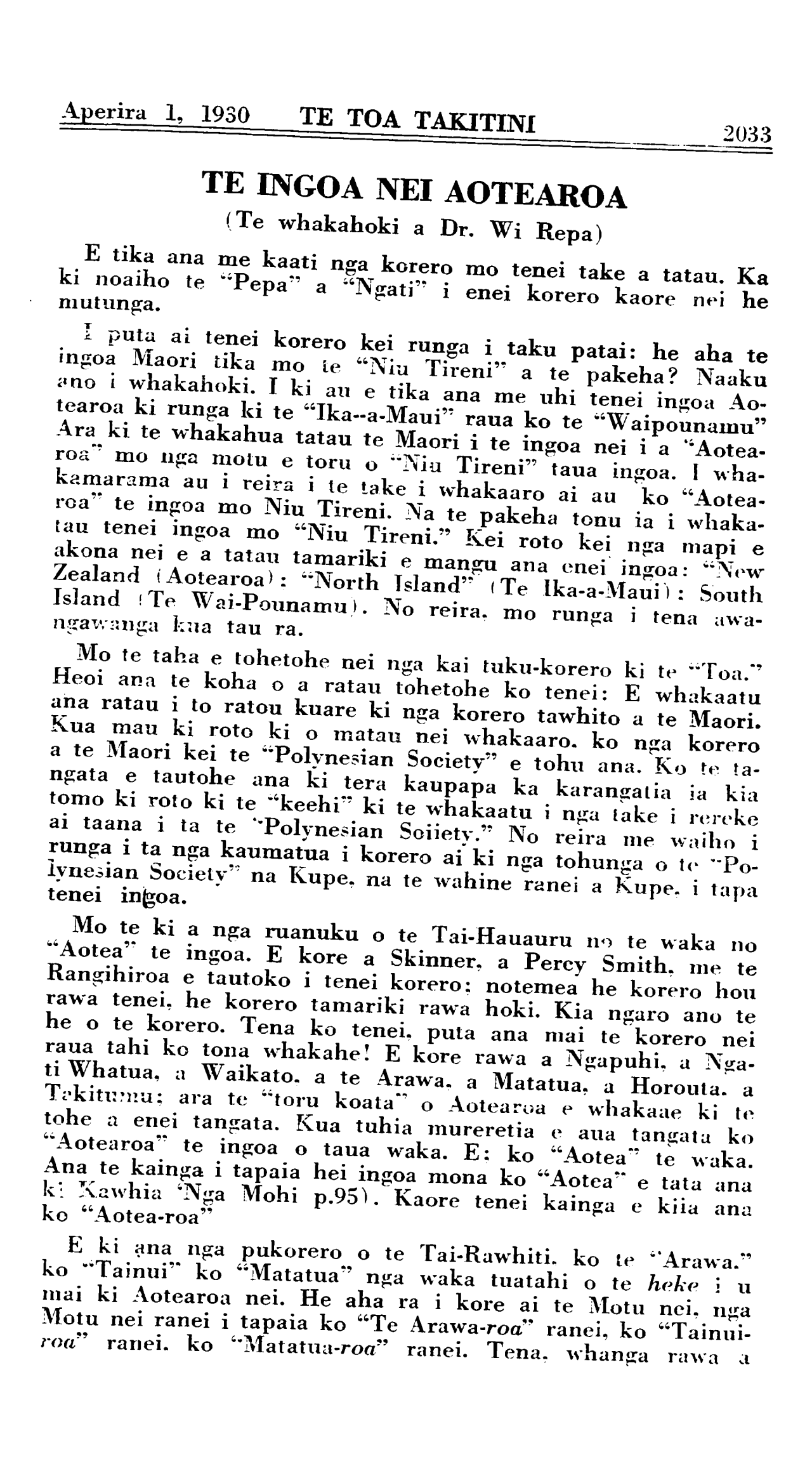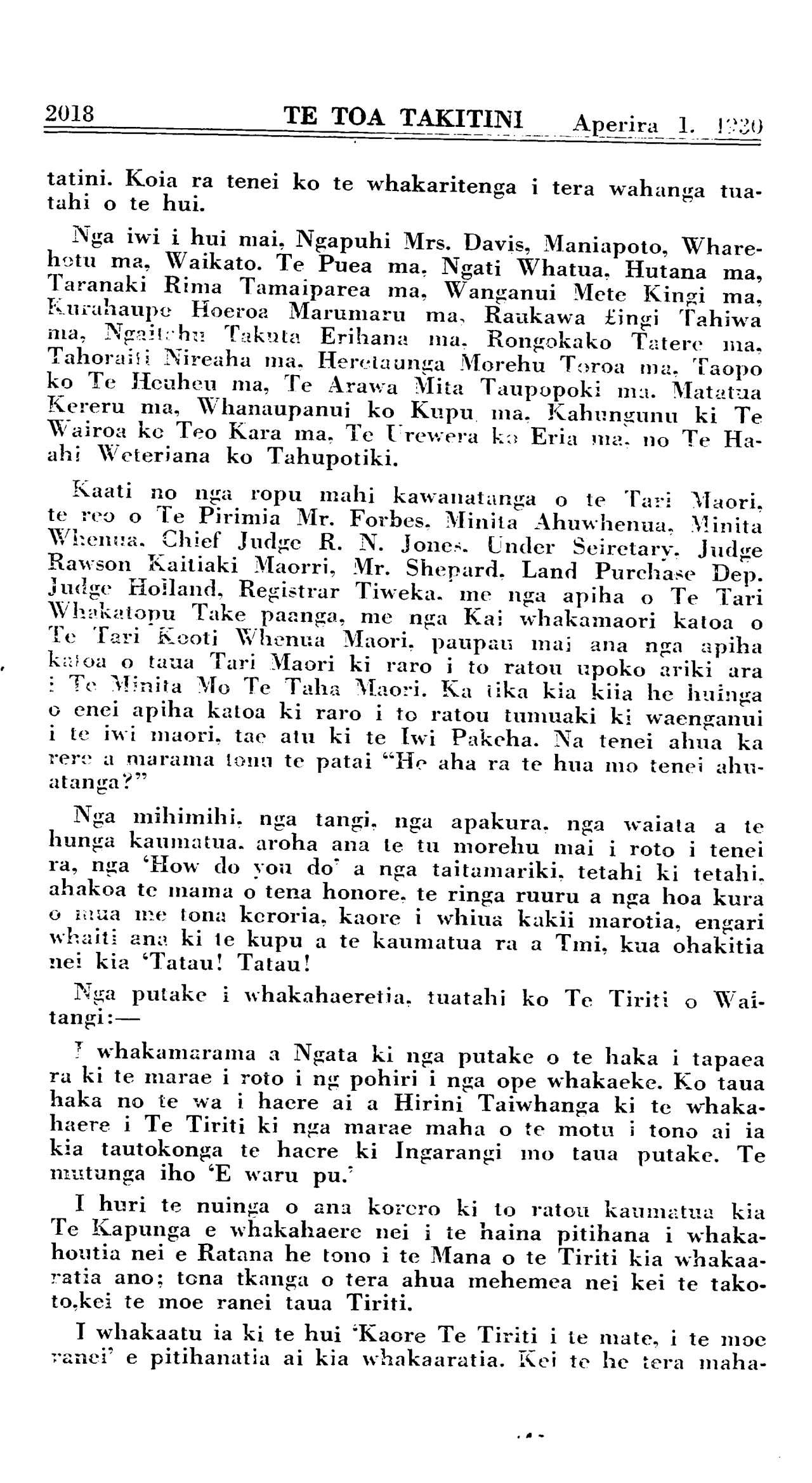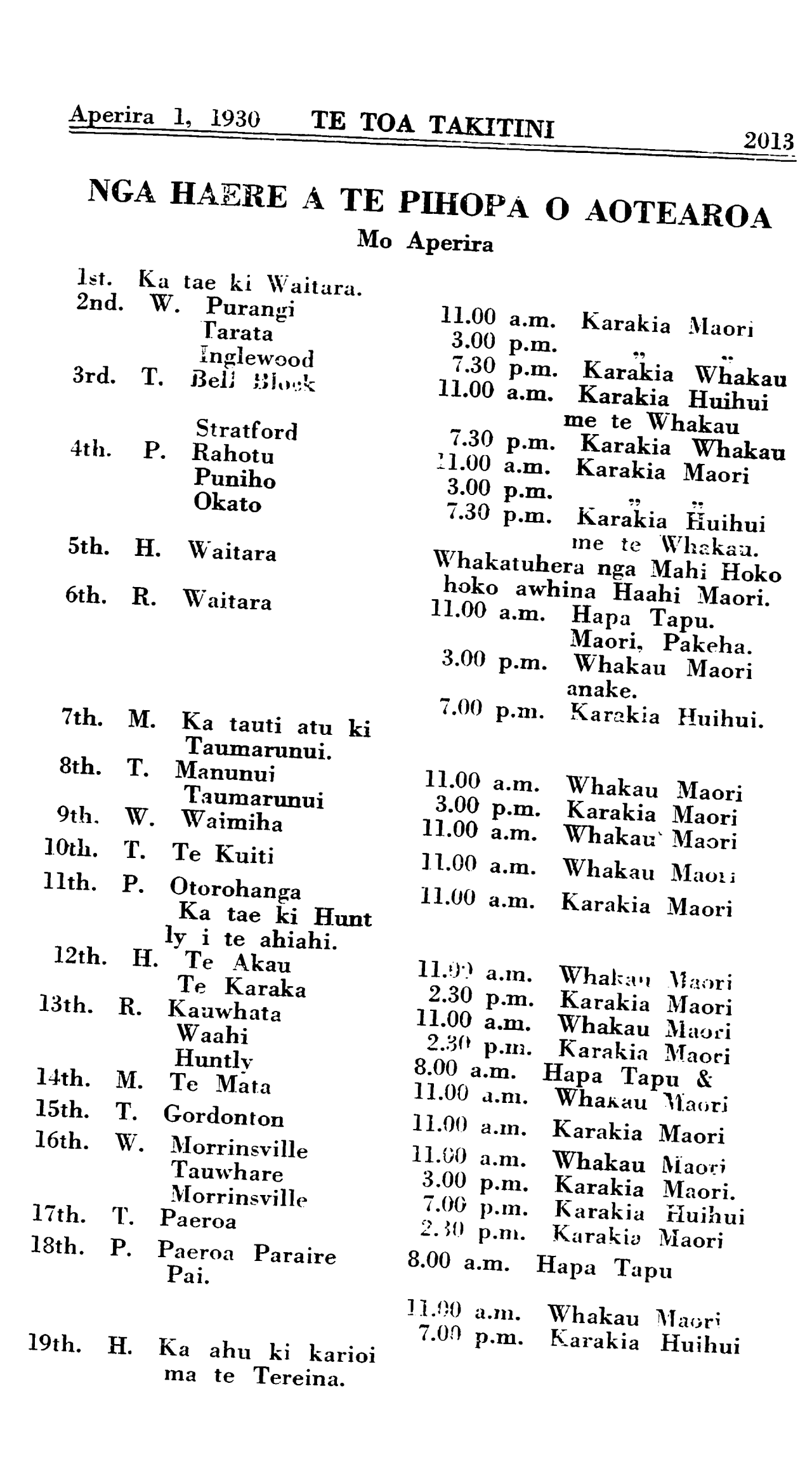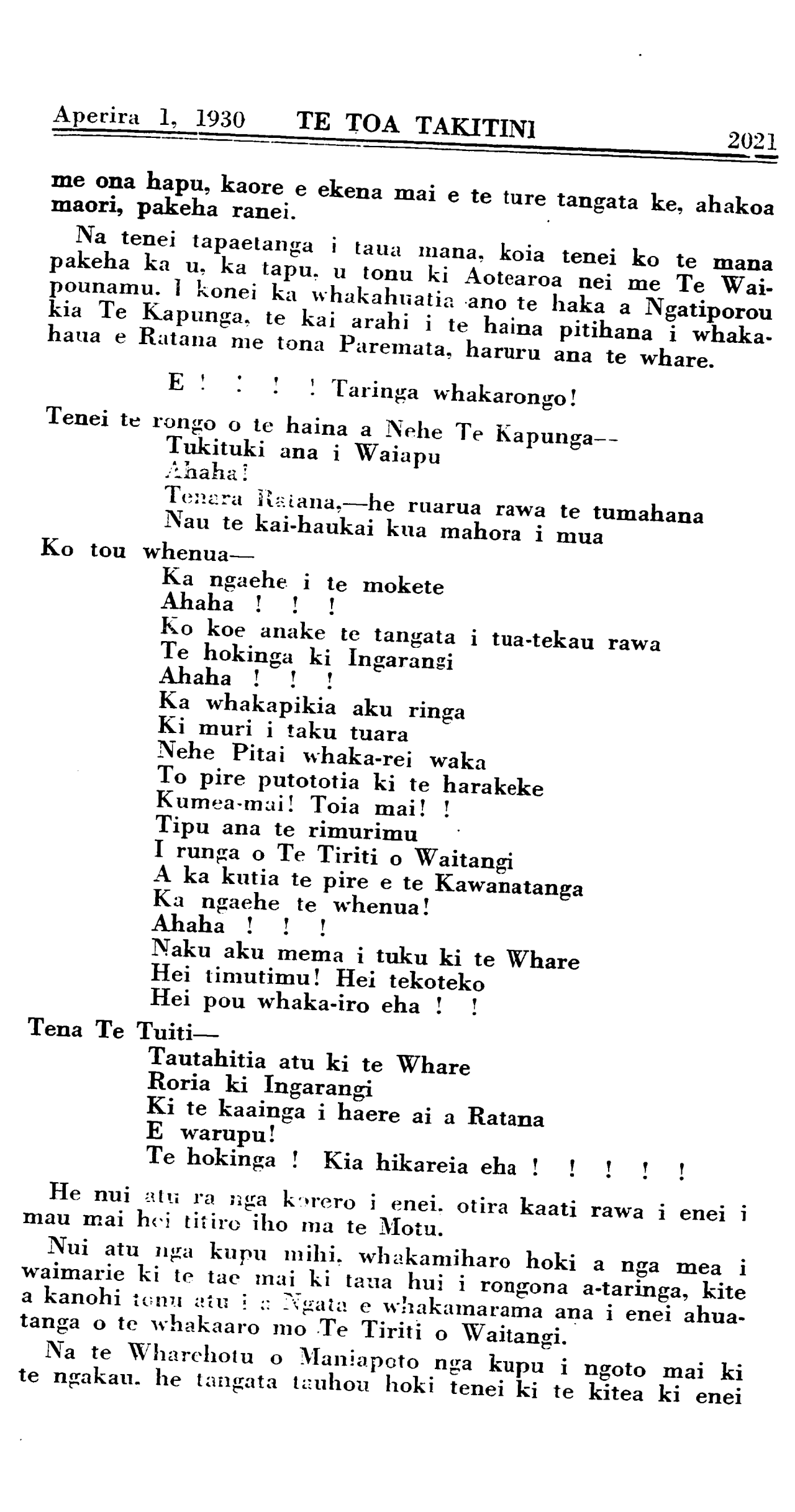 Aperira 1, 1930   TE  TOA  TAKITINI                2043