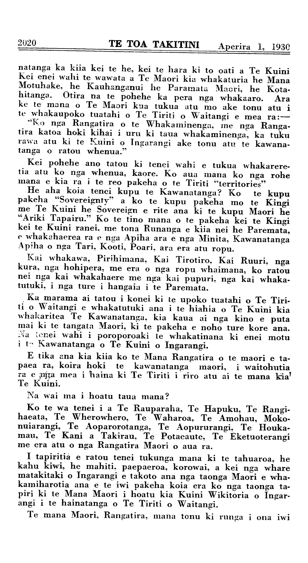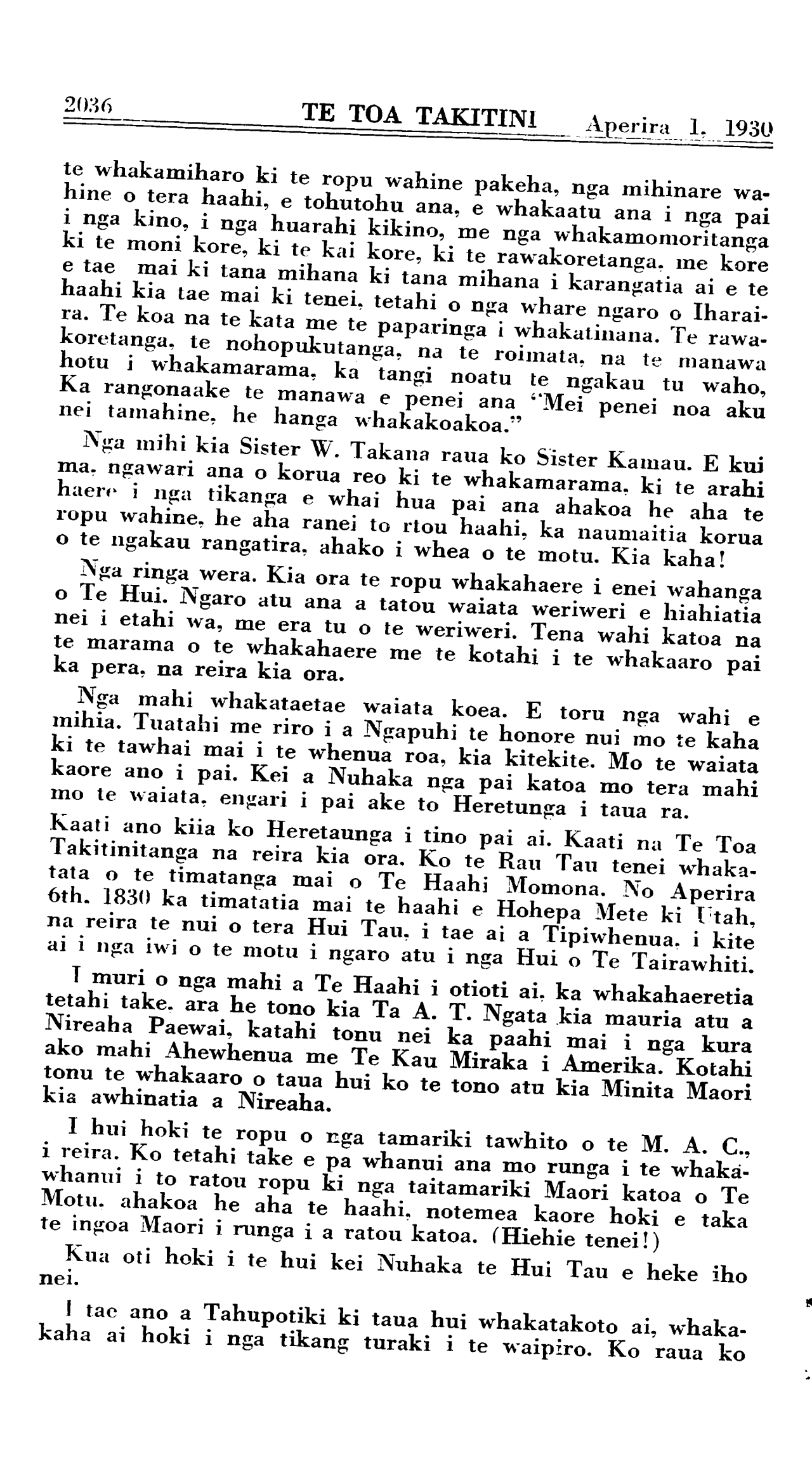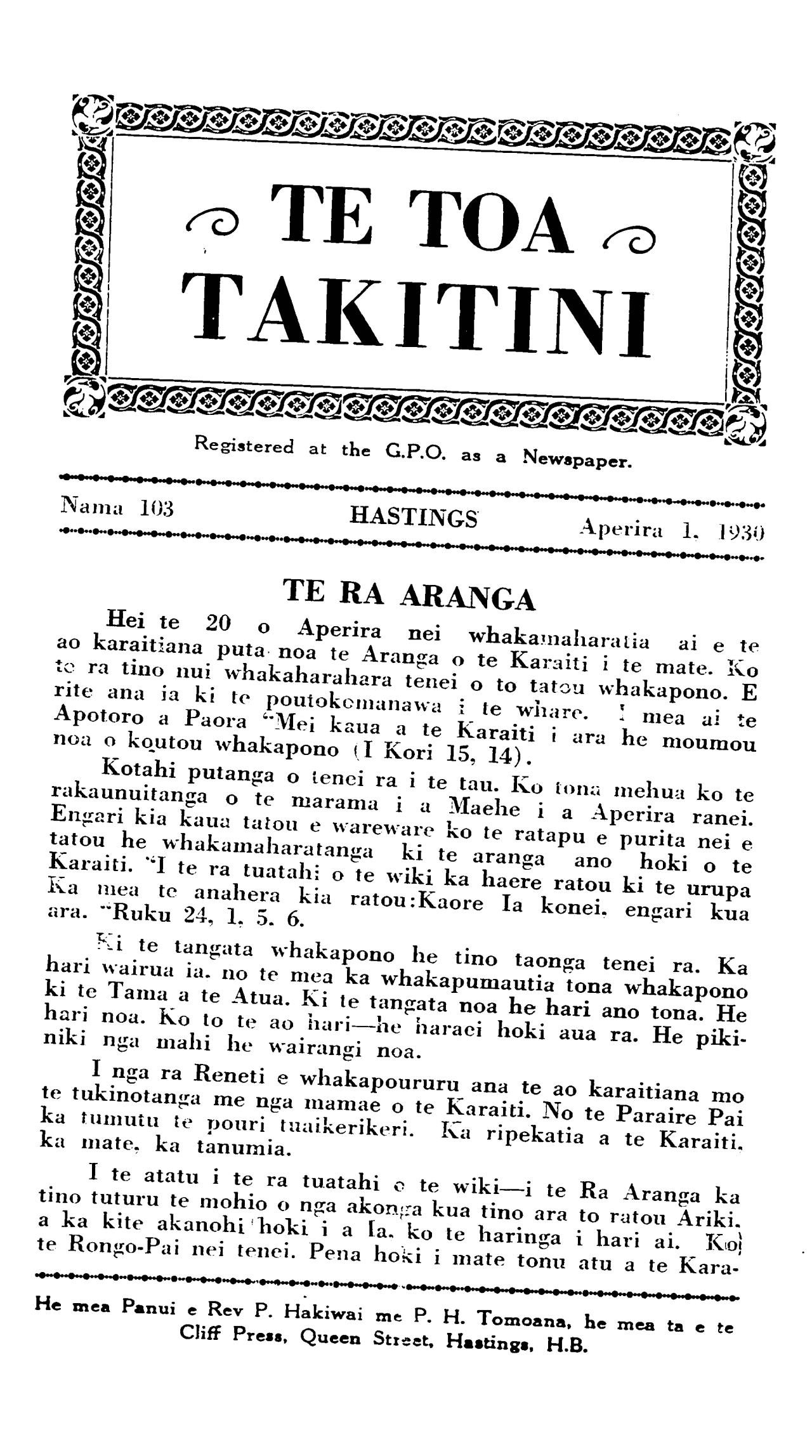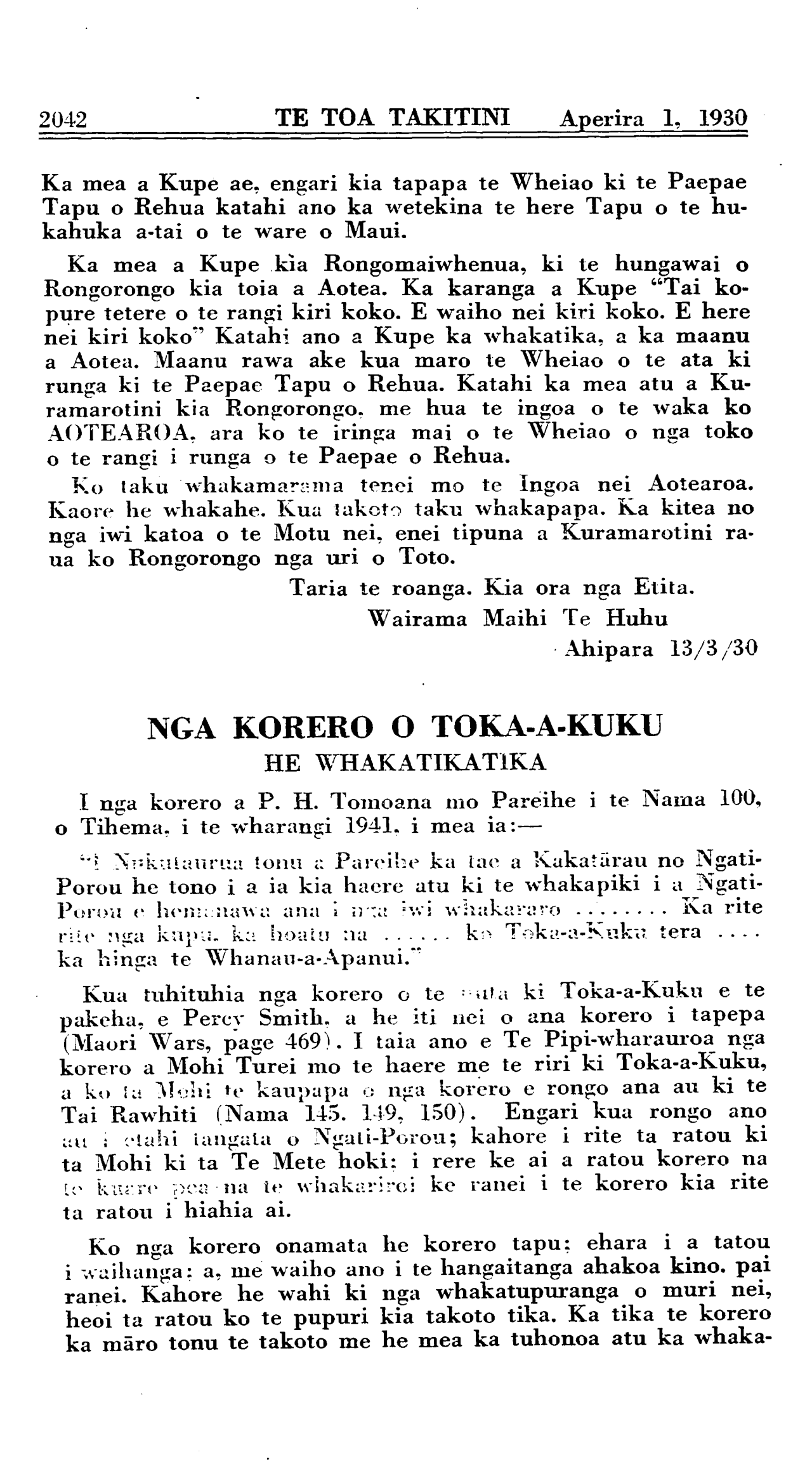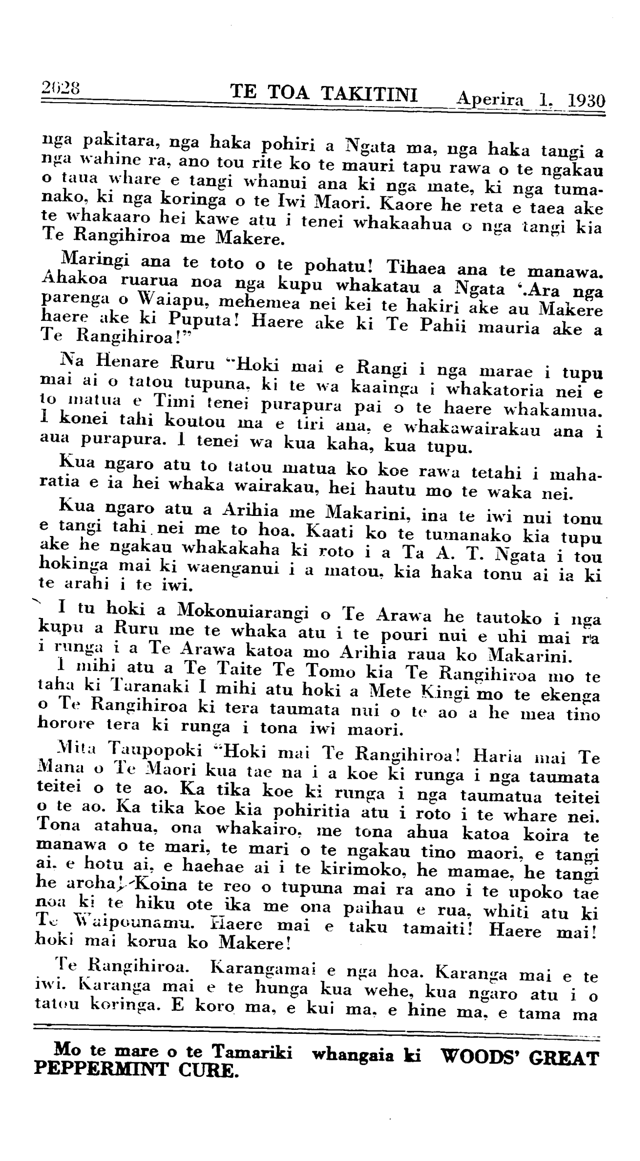 Aperira 1, 1930   TE  TOA  TAKITINI                2043