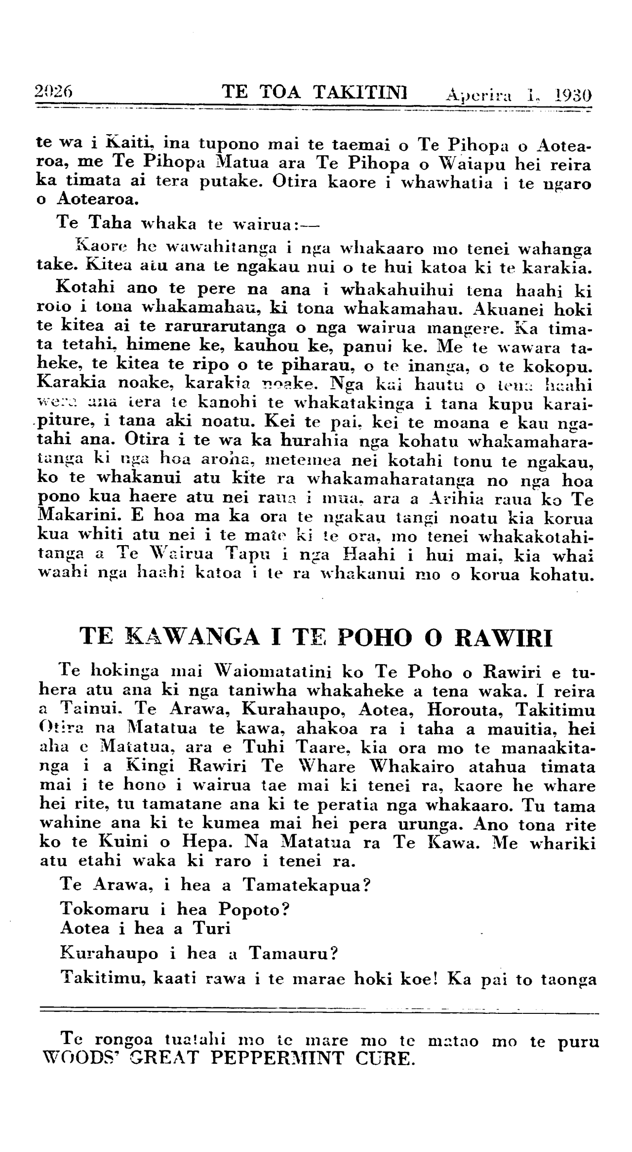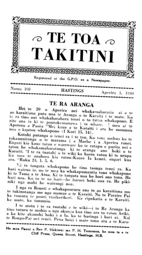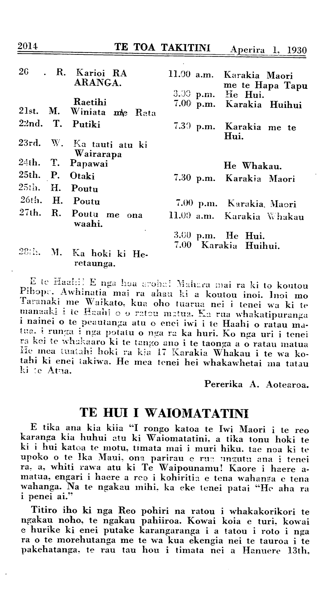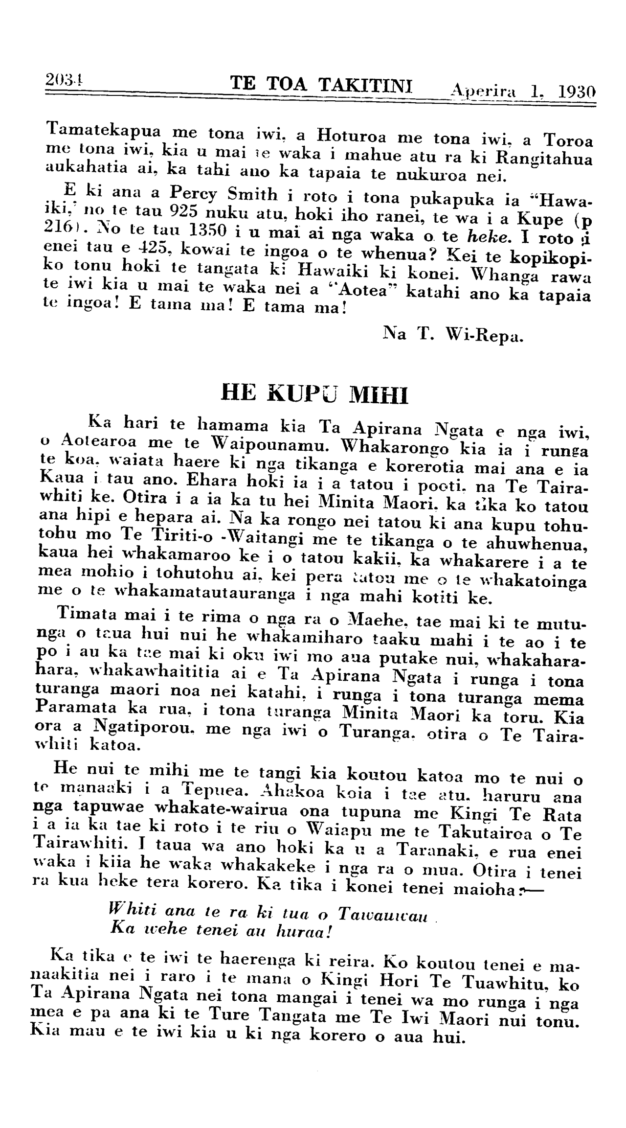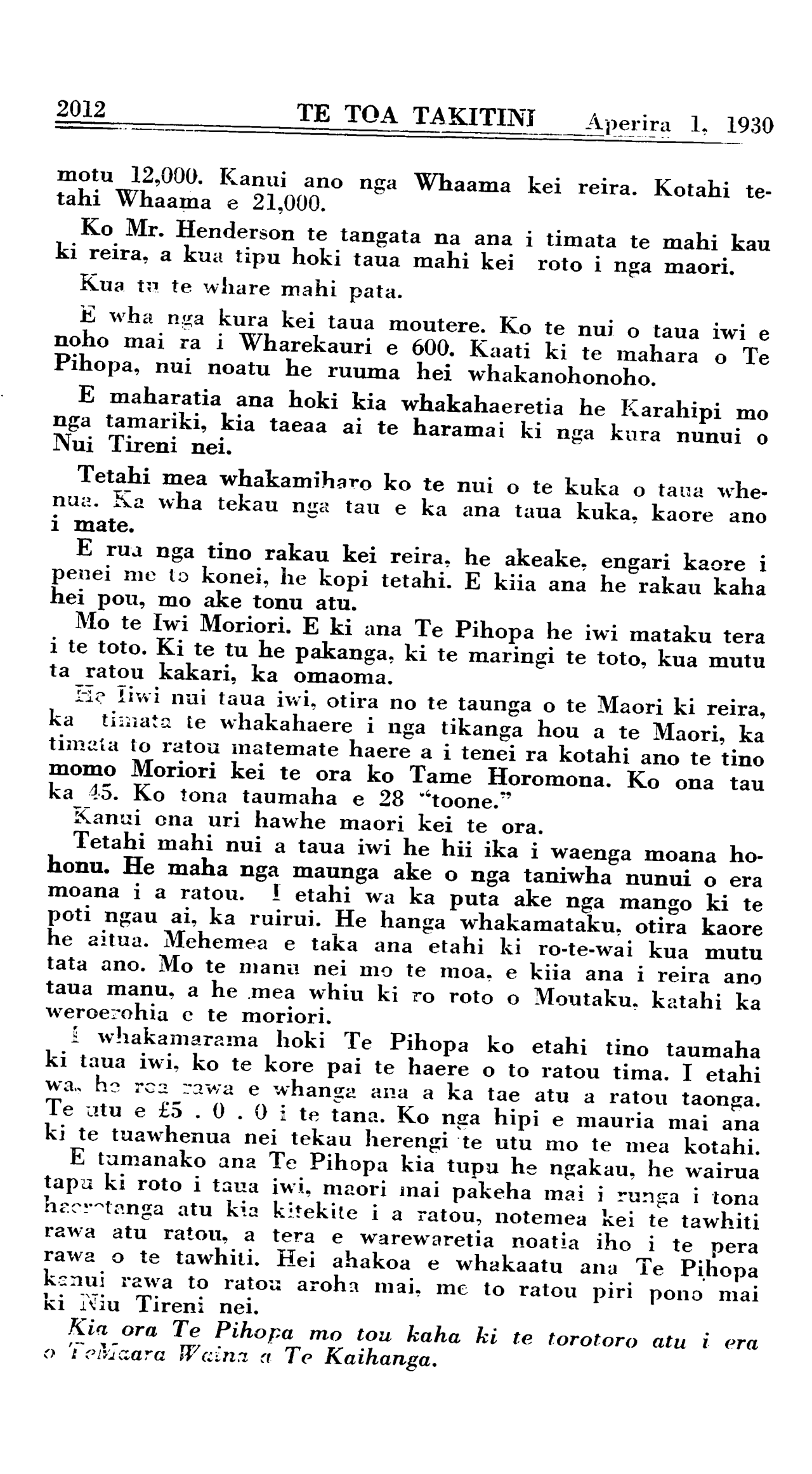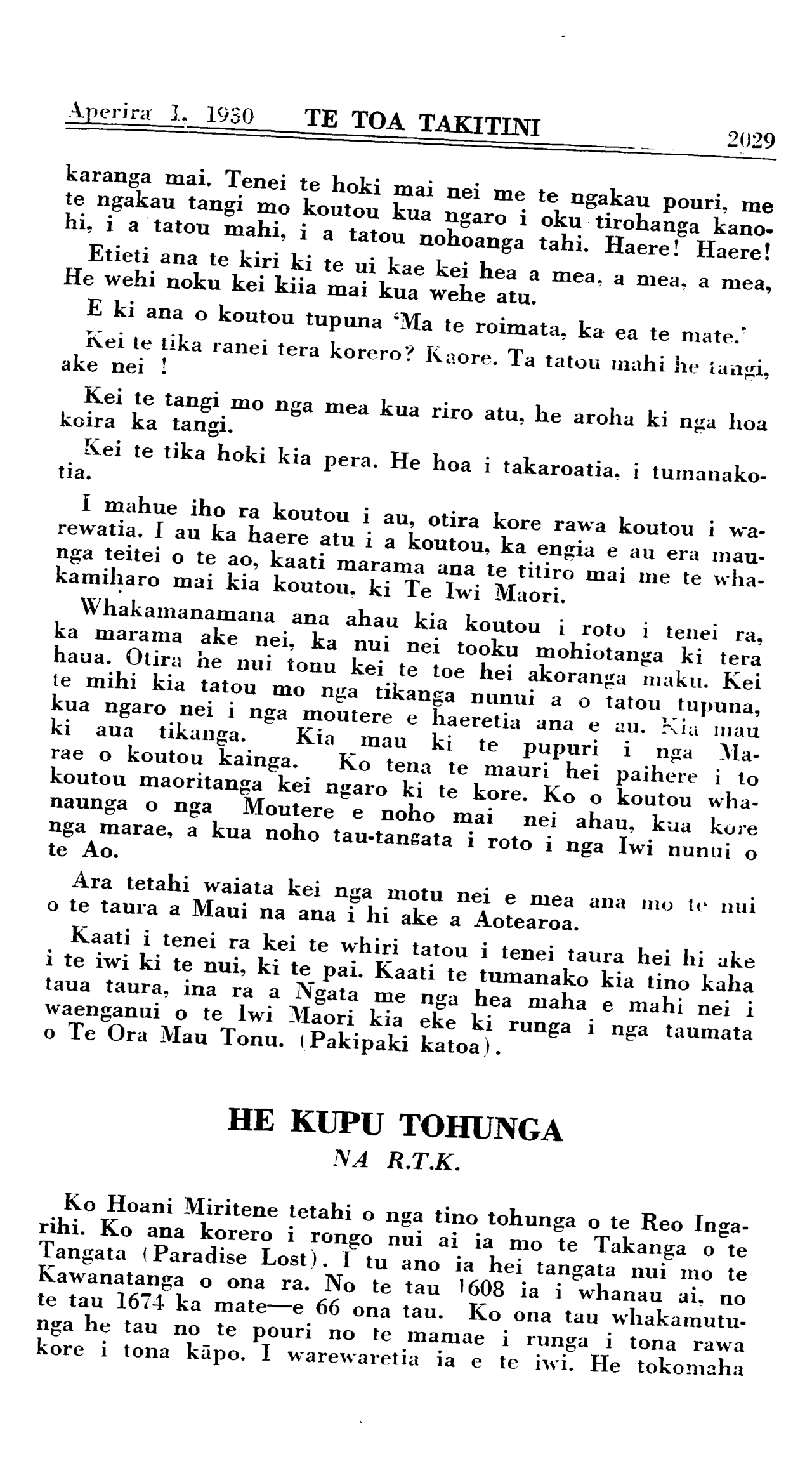 Aperira 1, 1930   TE  TOA  TAKITINI                2043