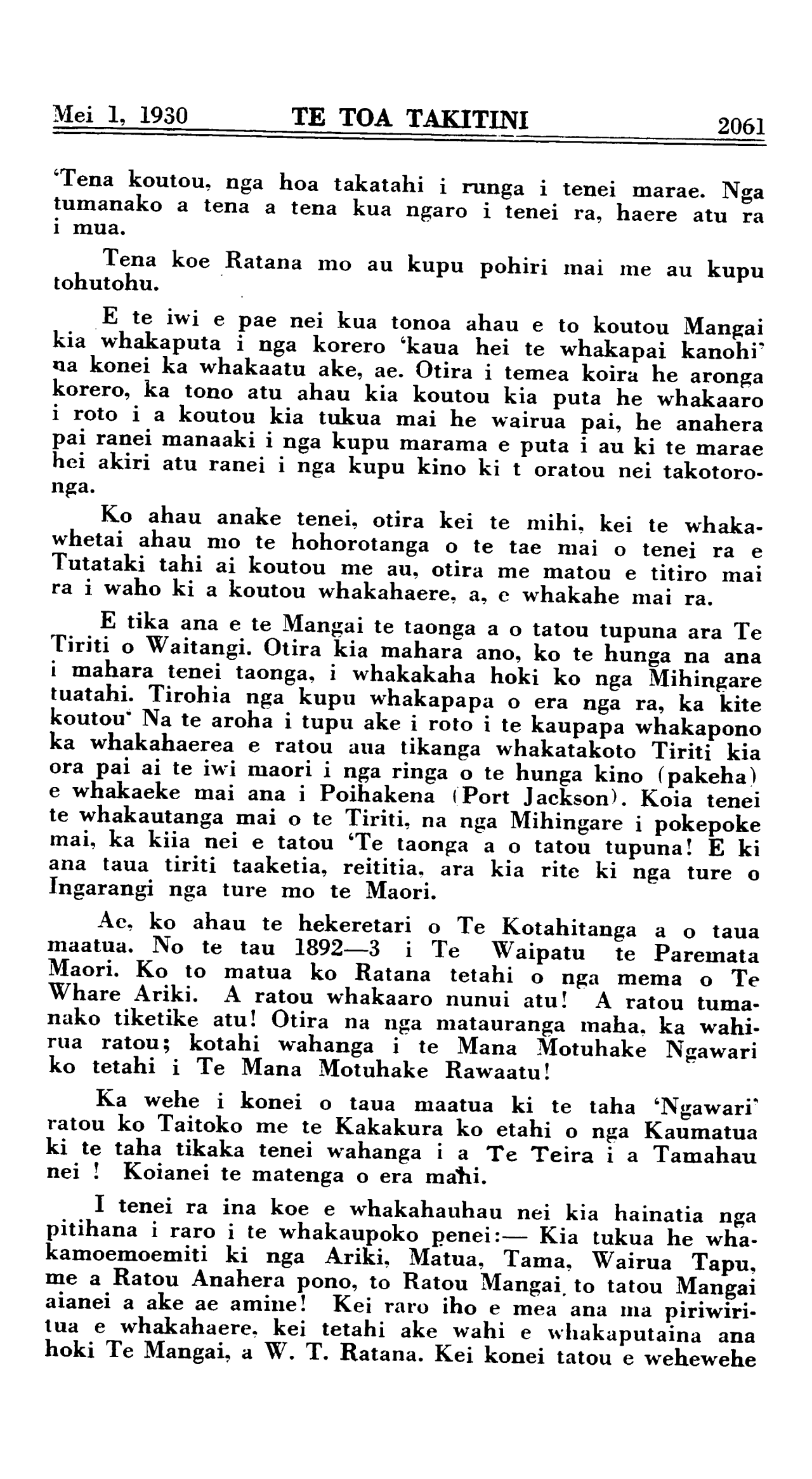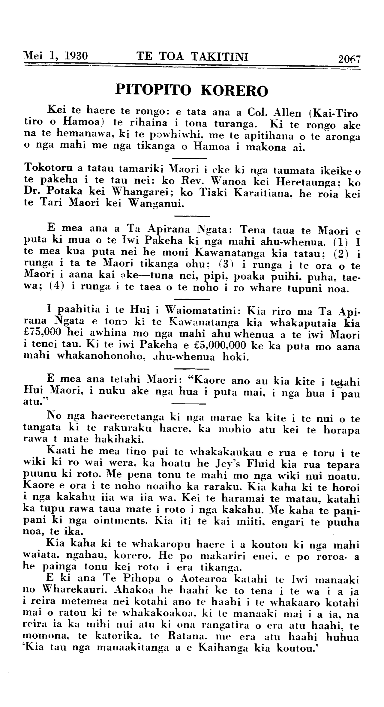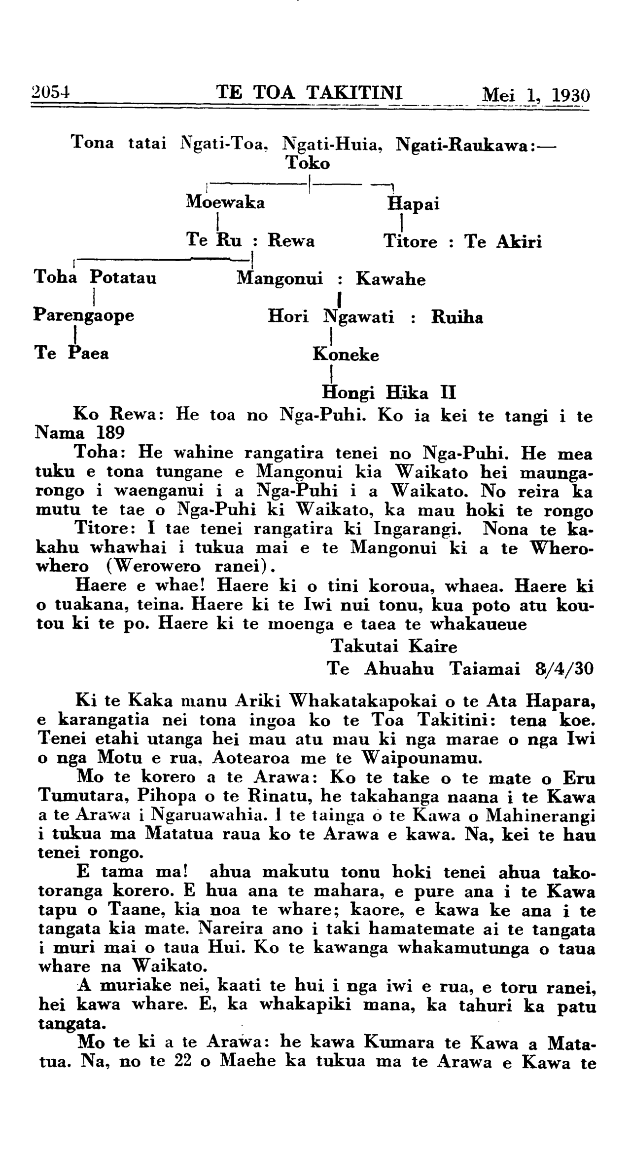 Mei 1, 1930 TE TOA TAKITINI 2067