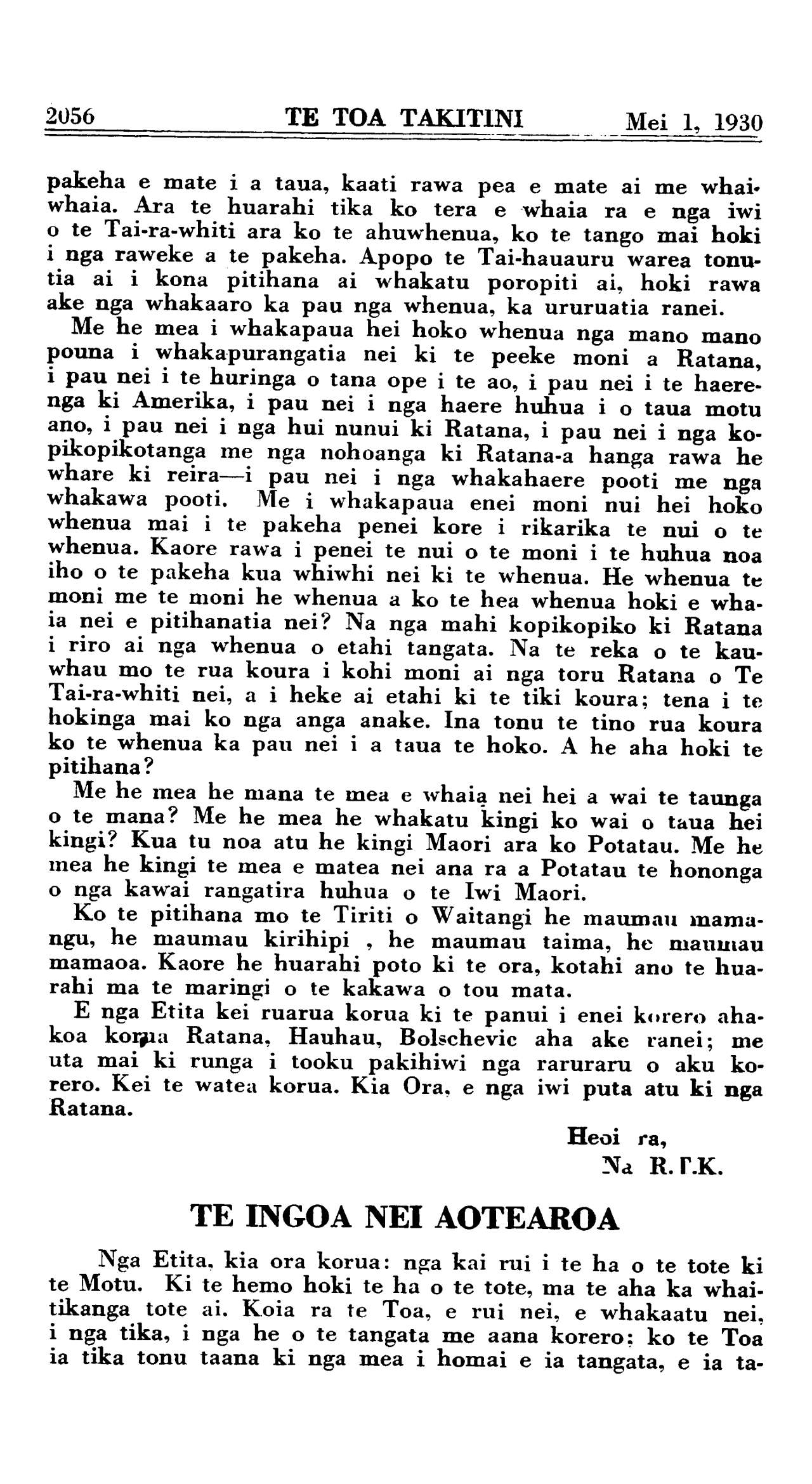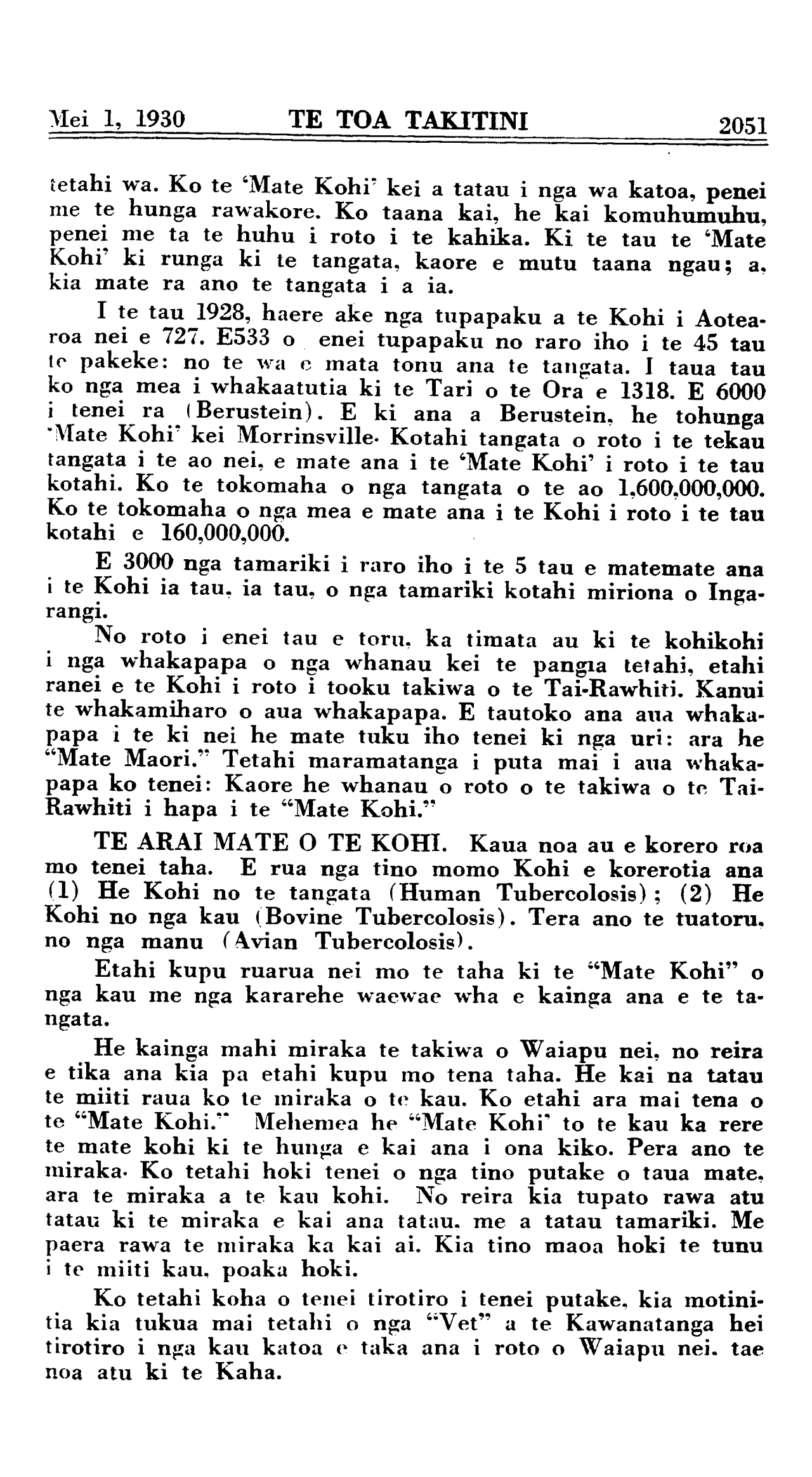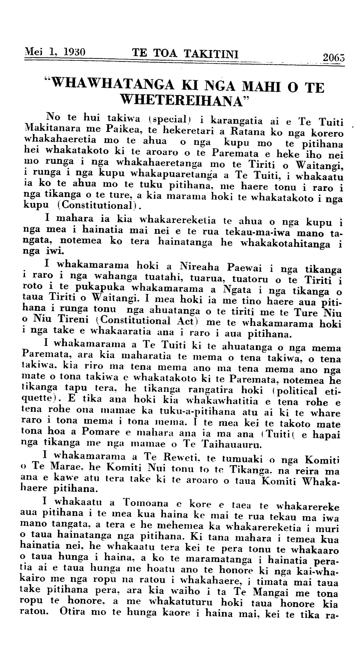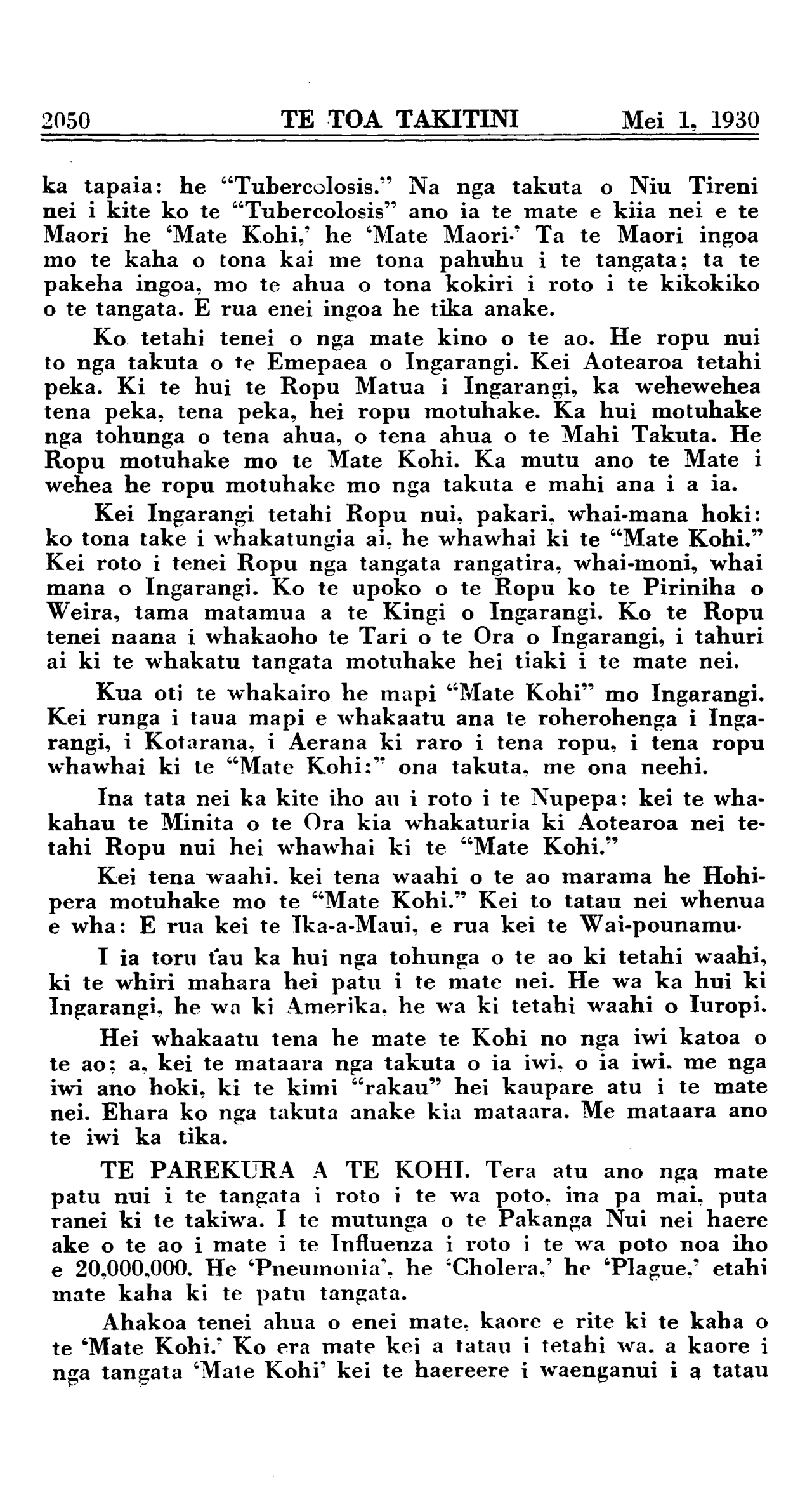 2046 TE TOA TAKITINI Mei 1, 1930