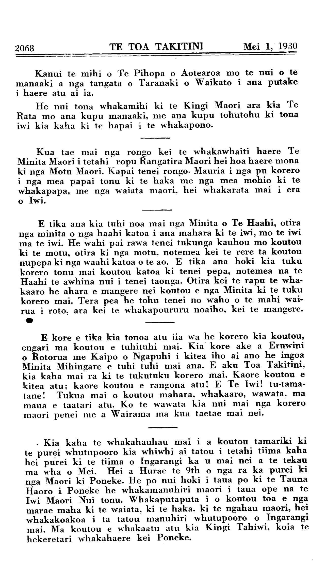 2068 TE TOA TAKITINI Mei 1, 1930