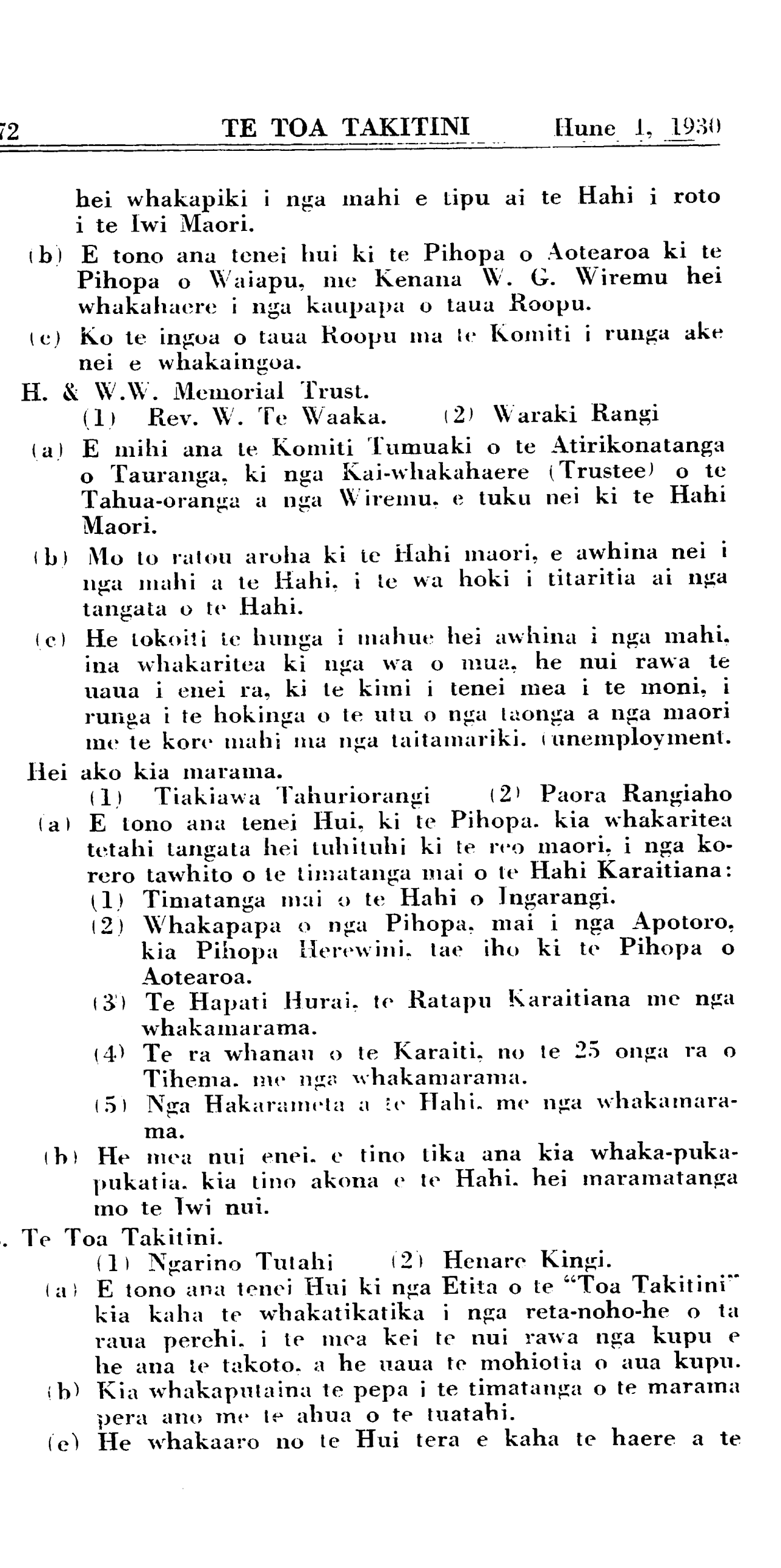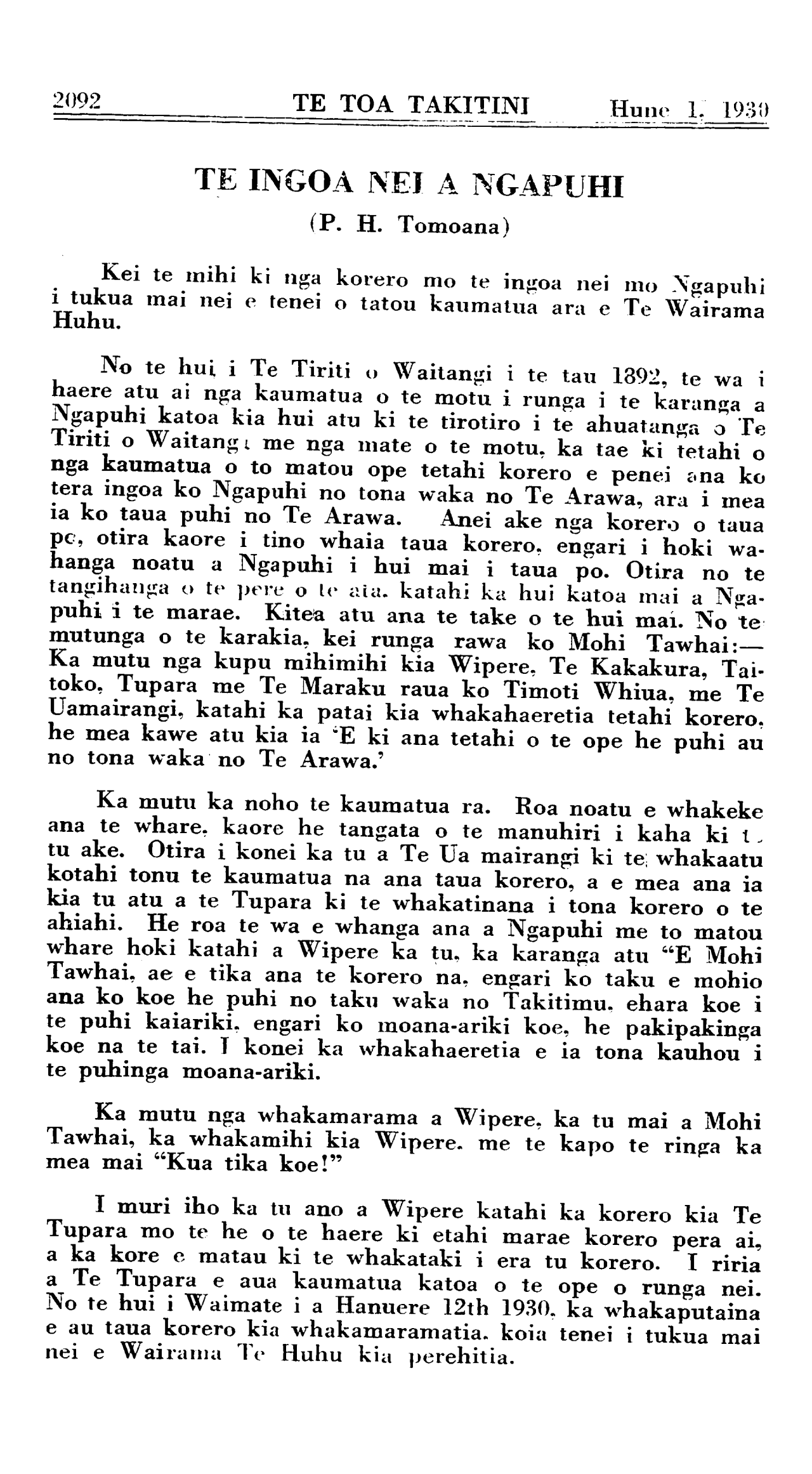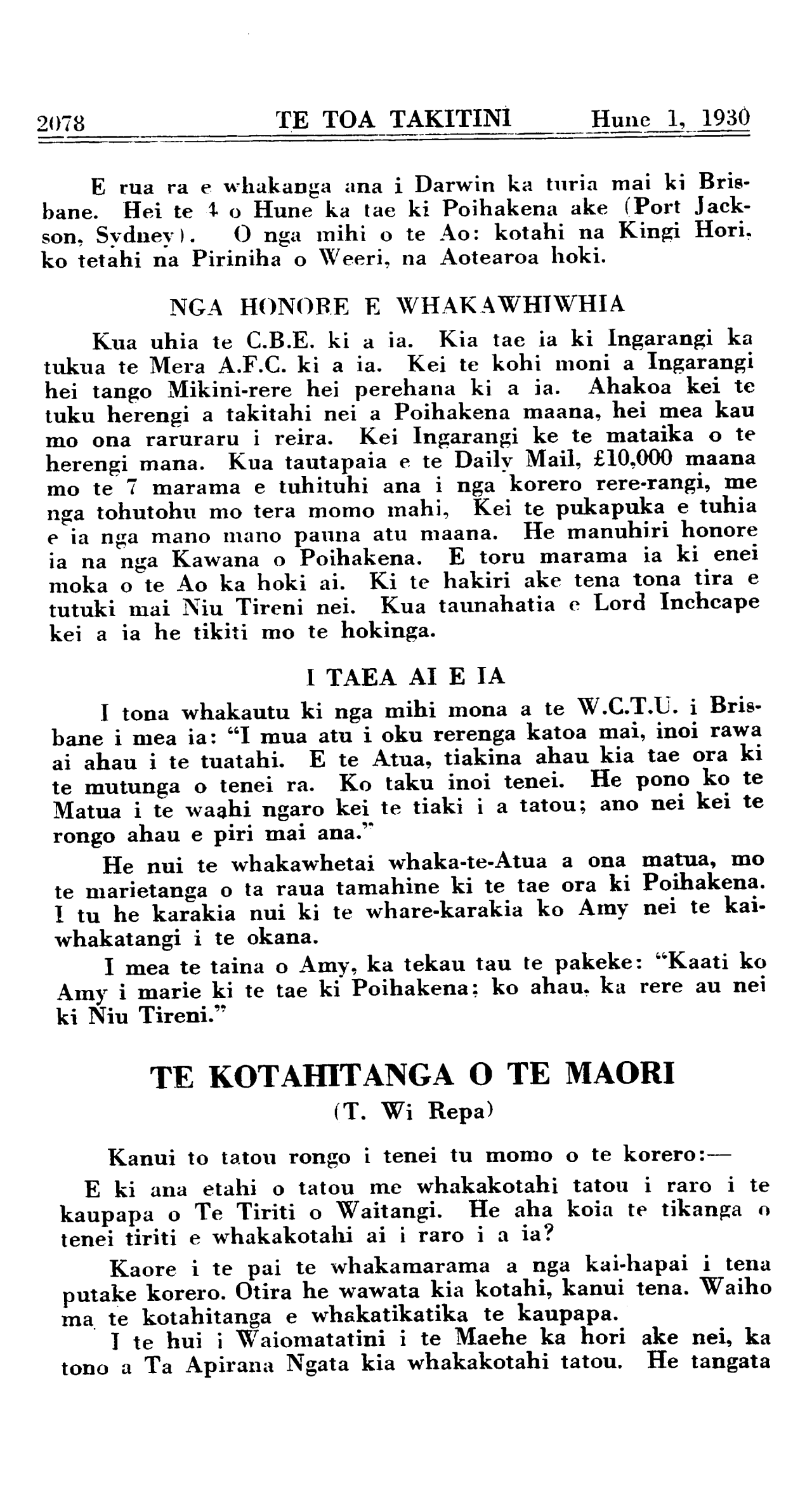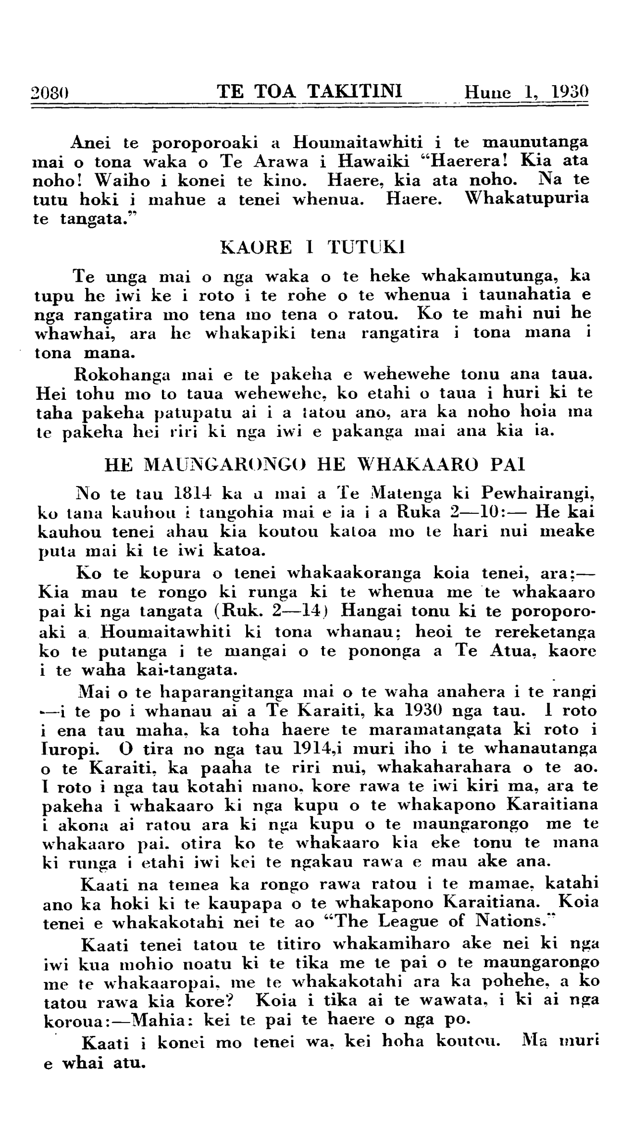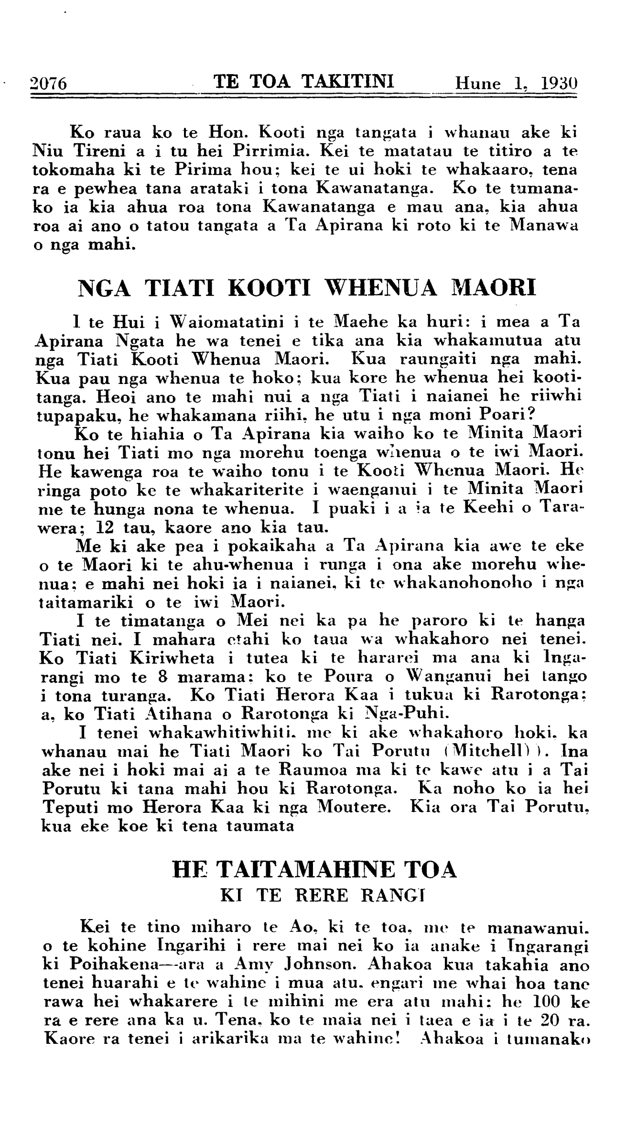 Hune 1, 1930 TE TOA TAKITINI\_\_\_\_\_\_\_\_\_\_ 2071