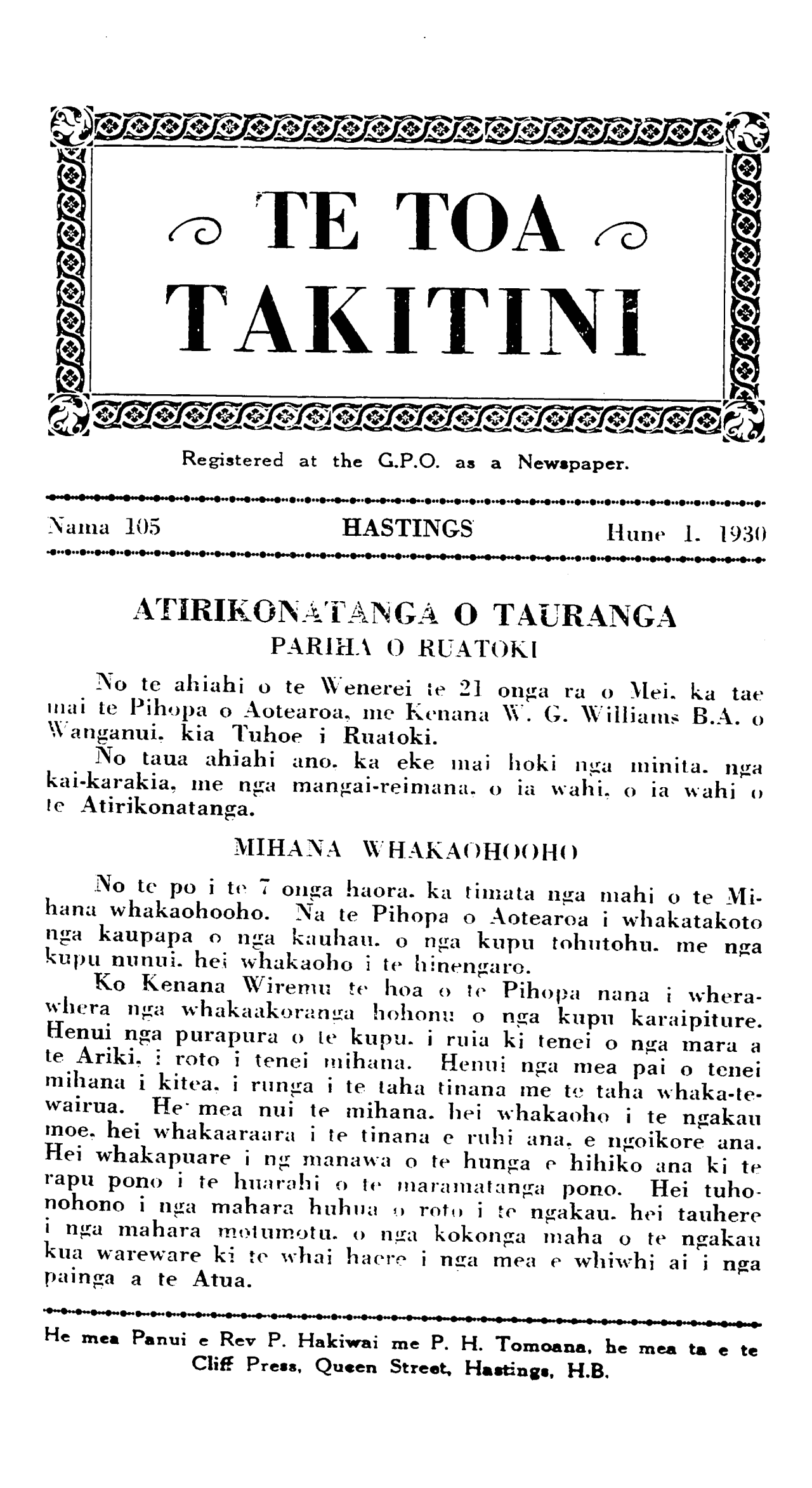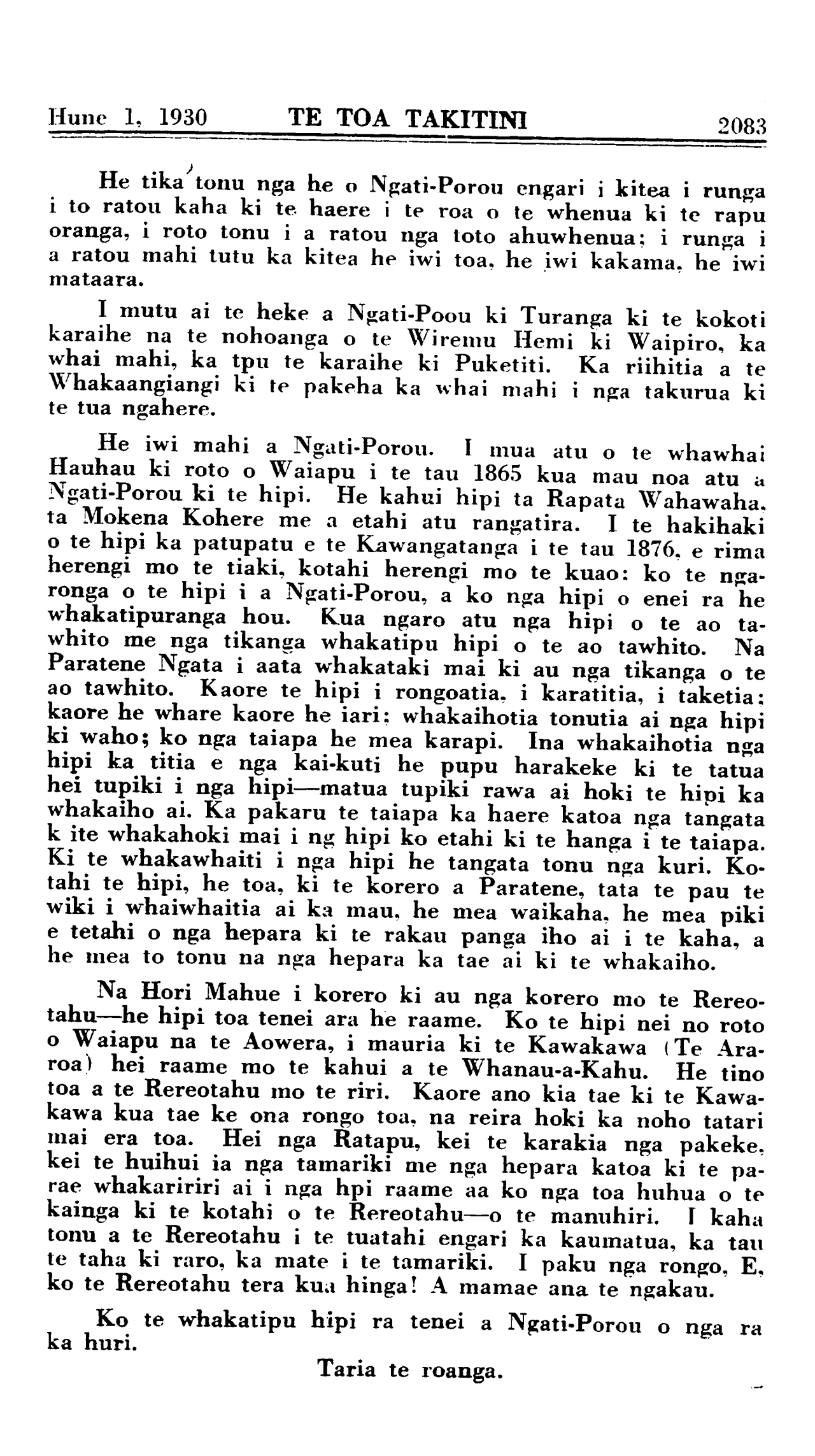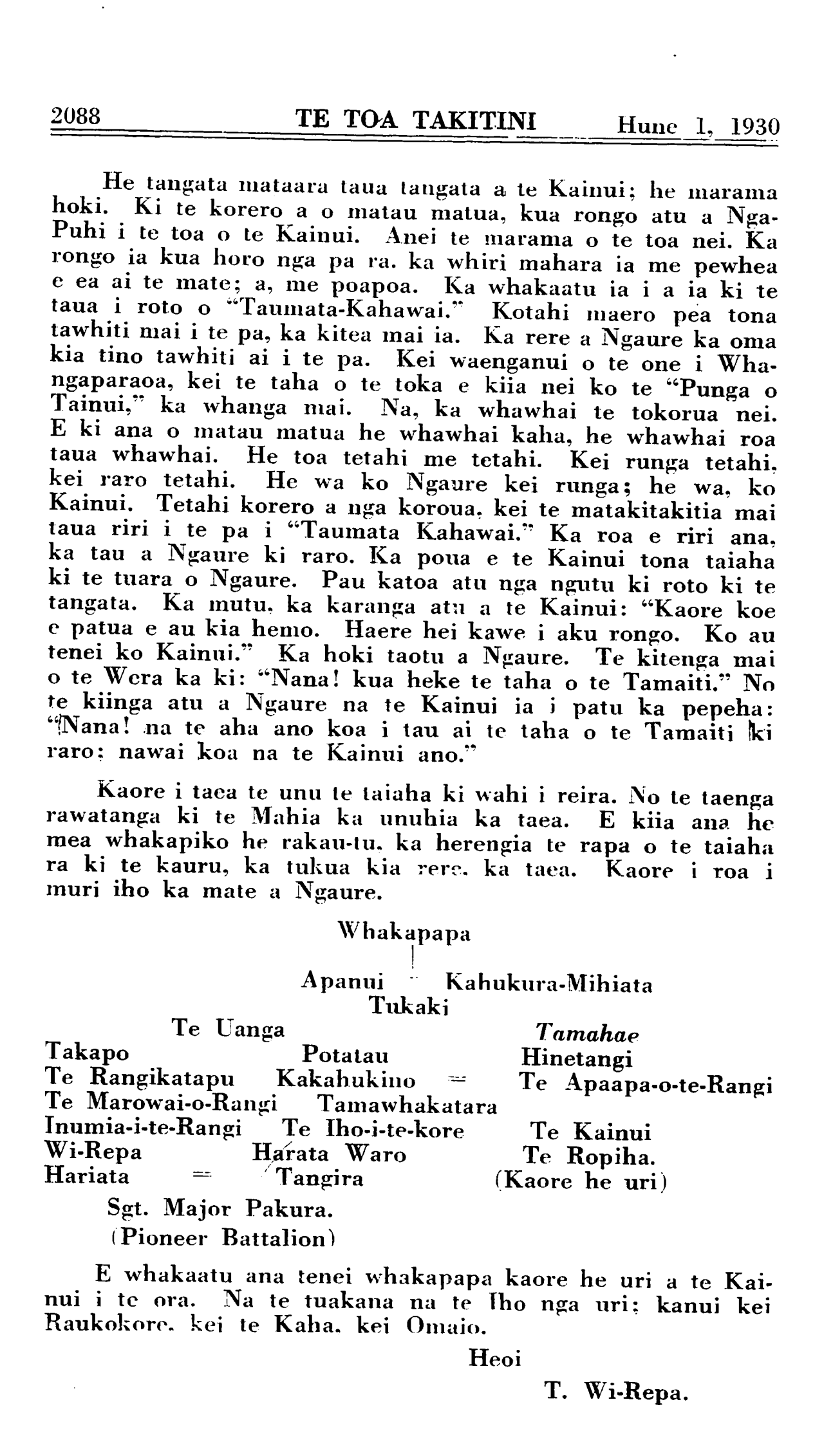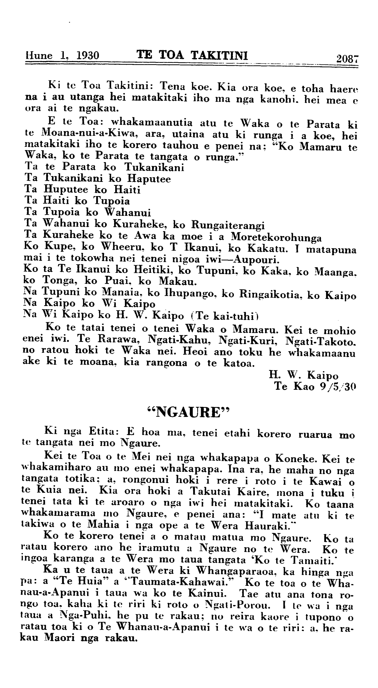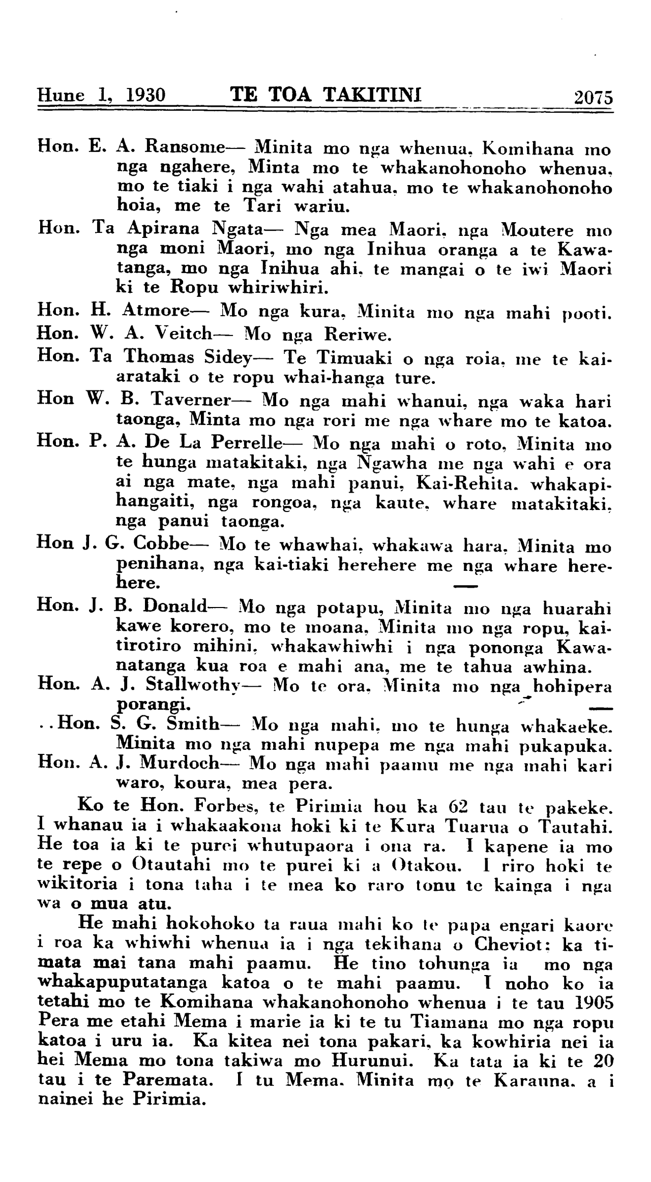 Hune 1, 1930 TE TOA TAKITINI\_\_\_\_\_\_\_\_\_\_ 2071
