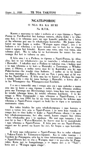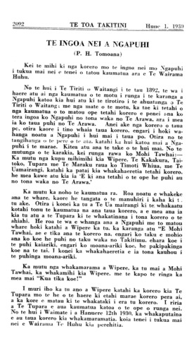 2092 \_ TE TOA TAKITINI Hune 1.. 1930
