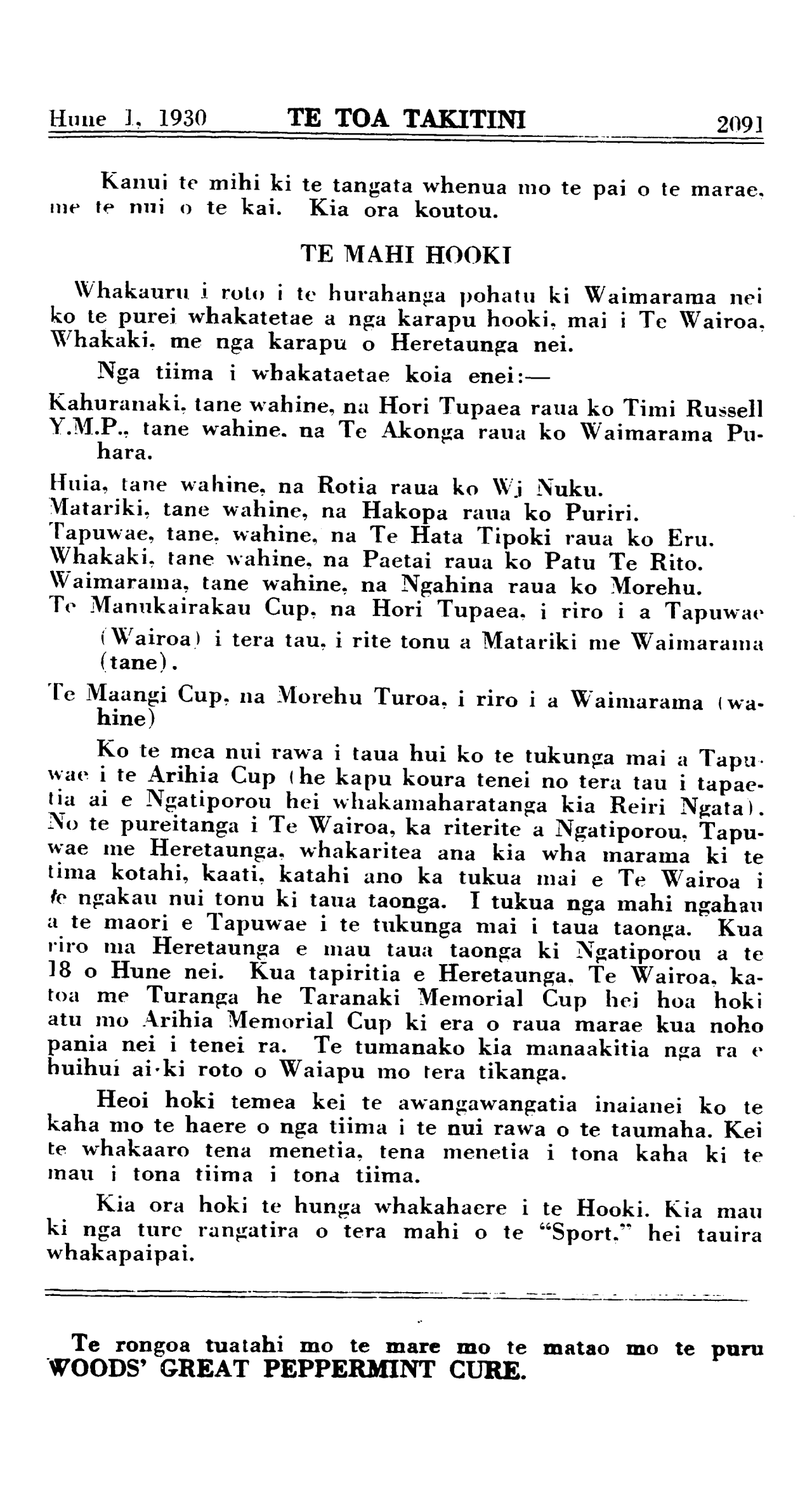 Hune 1, 1930 TE TOA TAKITINI \_ 2091