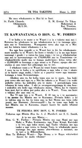No te hui i Waimate i a Hanuere 12th 1930. ka whakaputaina